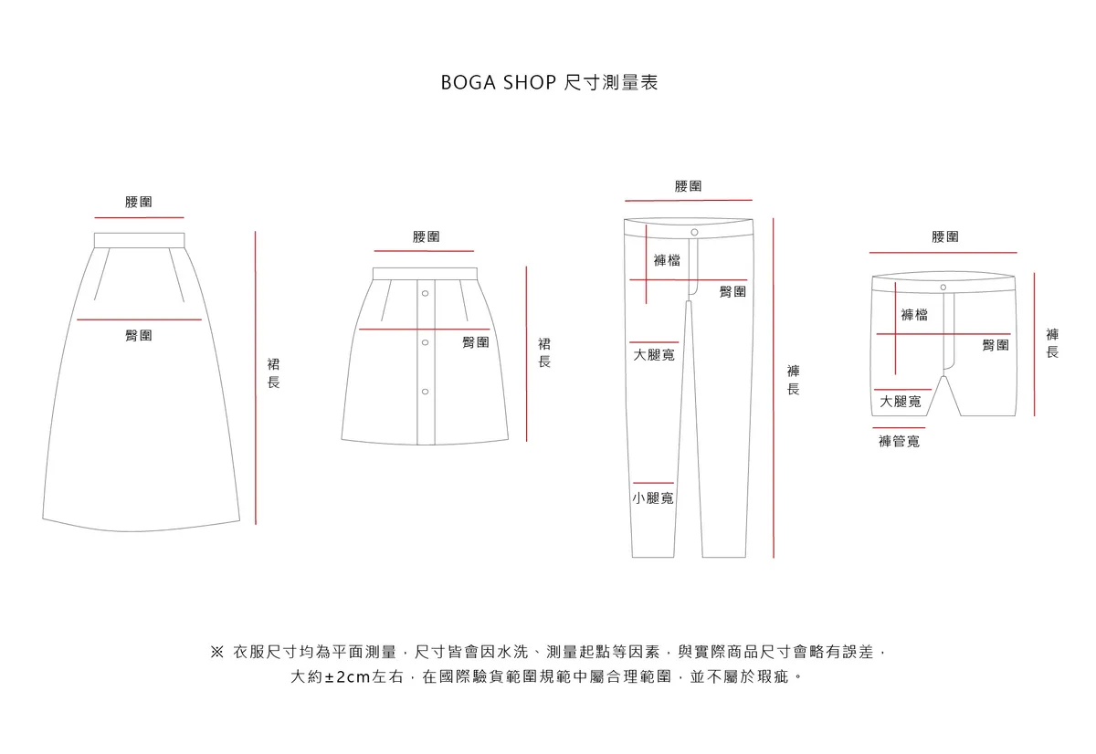 | 尺寸(cm) | 腰寬 | 臀寬 | 褲襠 | 大腿寬 | 小腿寬 | 全長 |