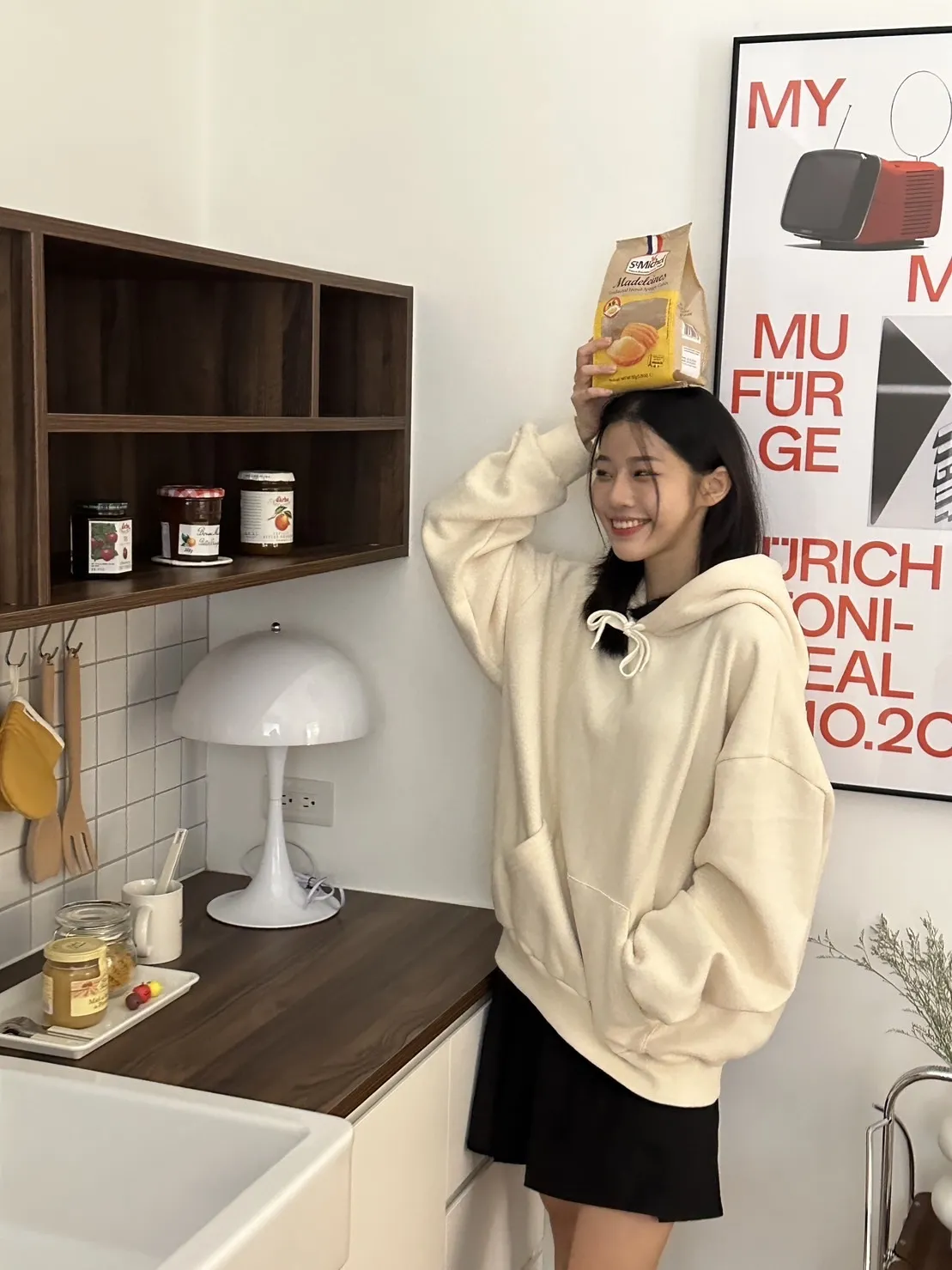Bogamade『韓國』連穿一個月不意外超舒服寬大帽T.米白