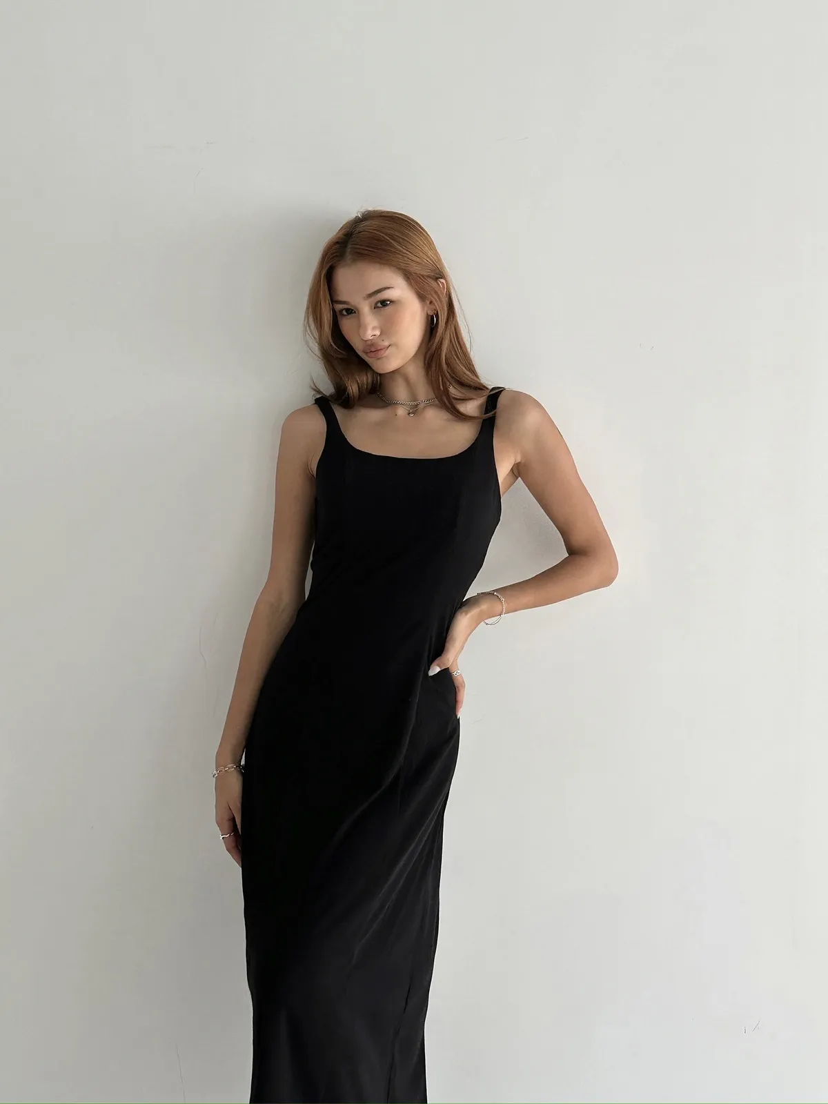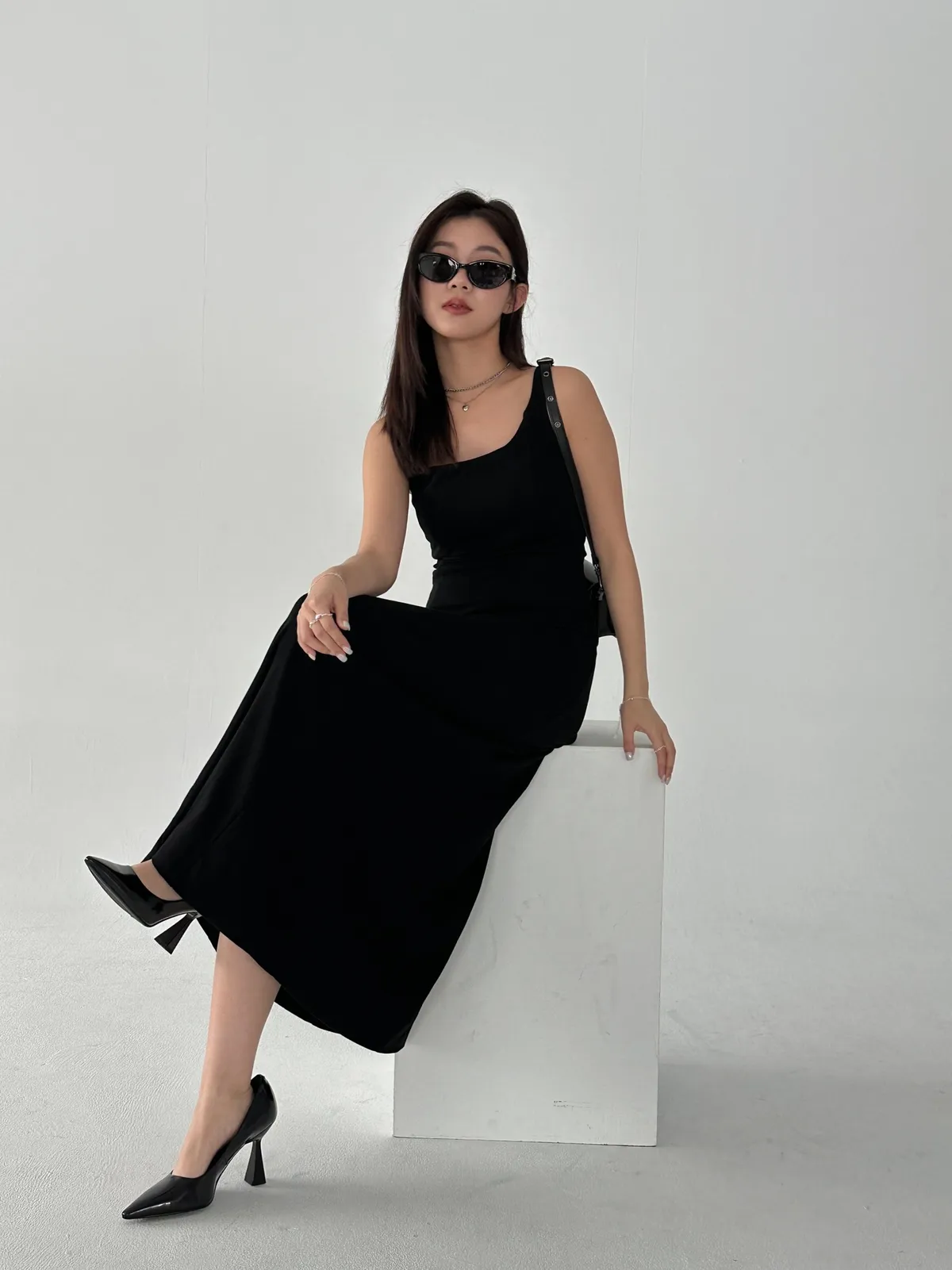 從市面上常見的洋裝裙長,我們加了七公分,可以更延長身形,讓穿起來效果加倍。