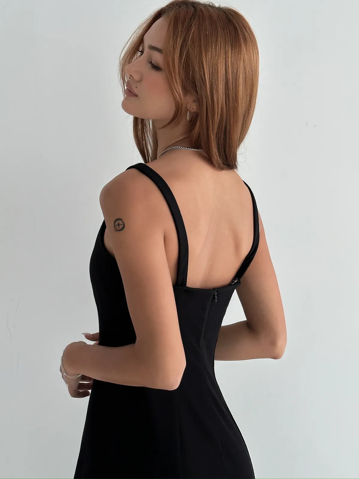 在製作洋裝時,我也想過要做袖子可以遮手臂更方便,但是整體考量下來,我認為無袖的洋裝可以的變化性更高,CP值也更高,可能很多女生不喜歡露手臂,但卻可以用襯衫,外套,西裝外套,一些外在單品來做搭配,可以穿搭出來的樣子也很多元。