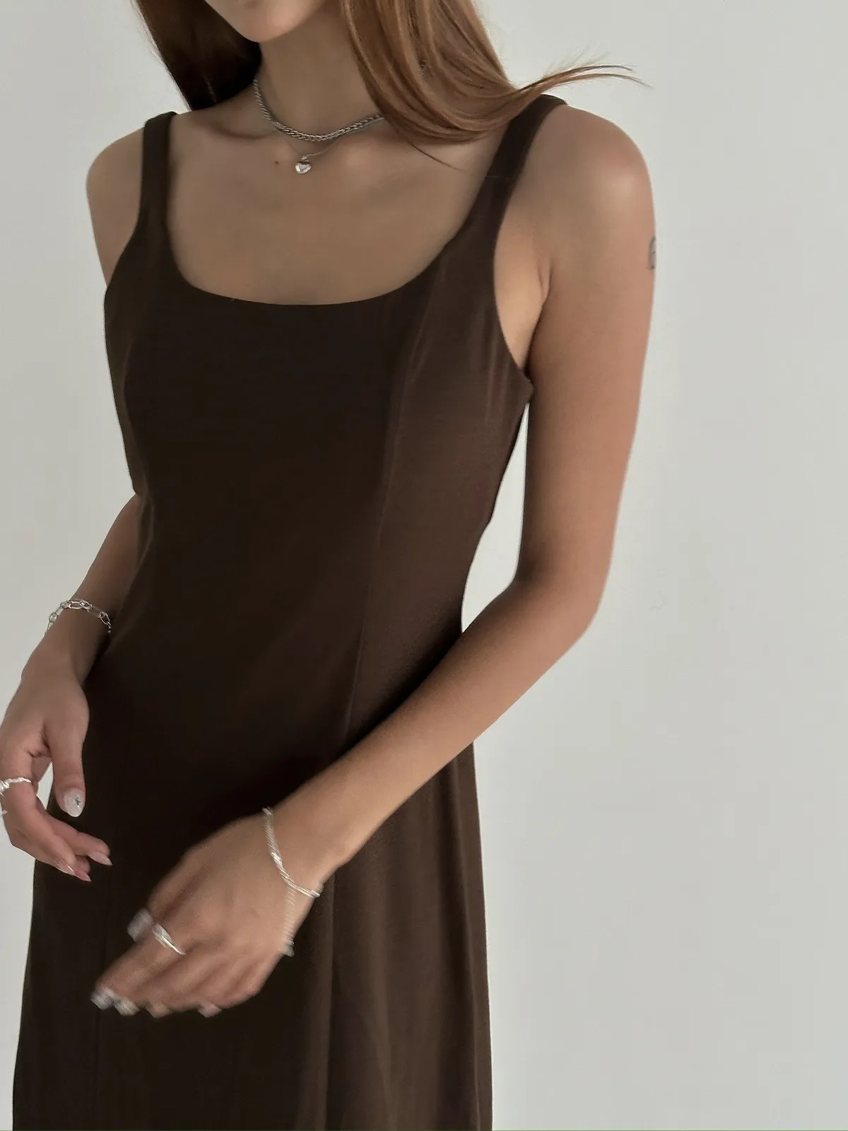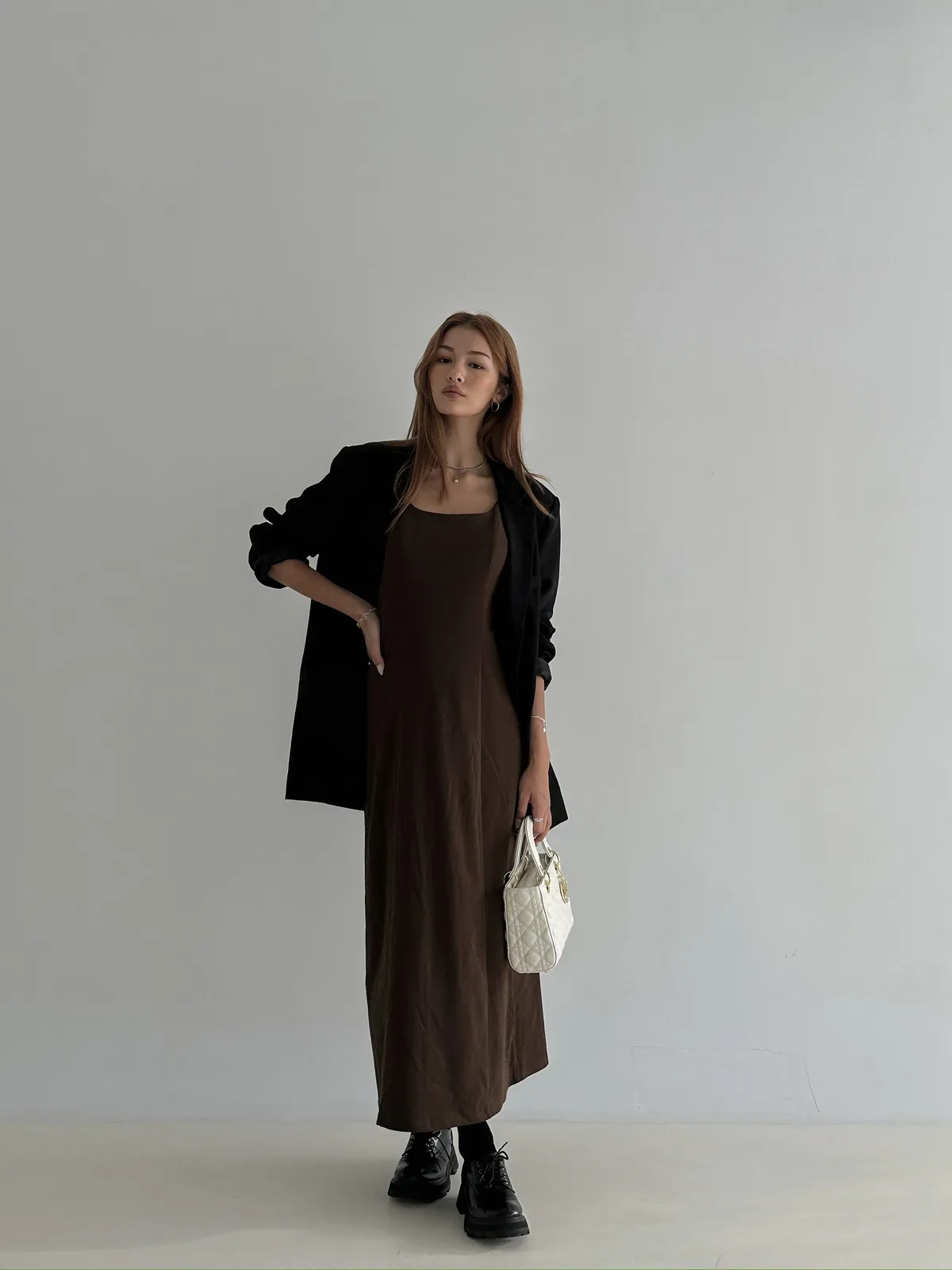 從市面上常見的洋裝裙長,我們加了七公分,可以更延長身形,讓穿起來效果加倍。