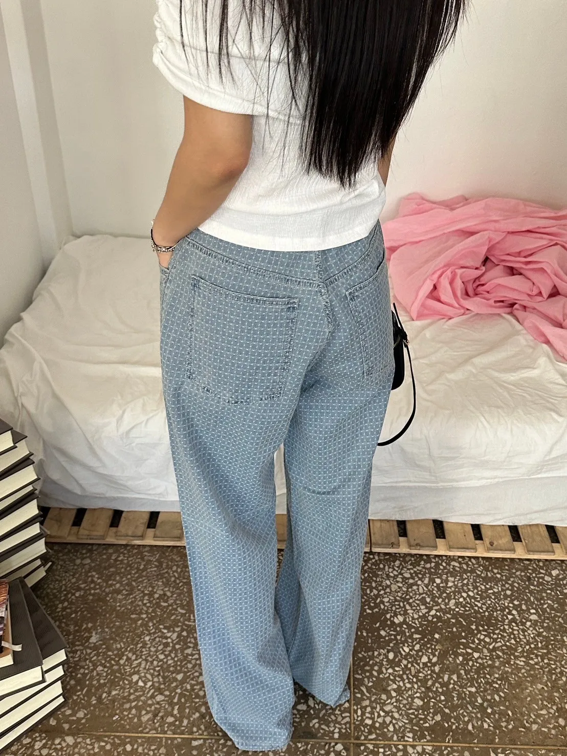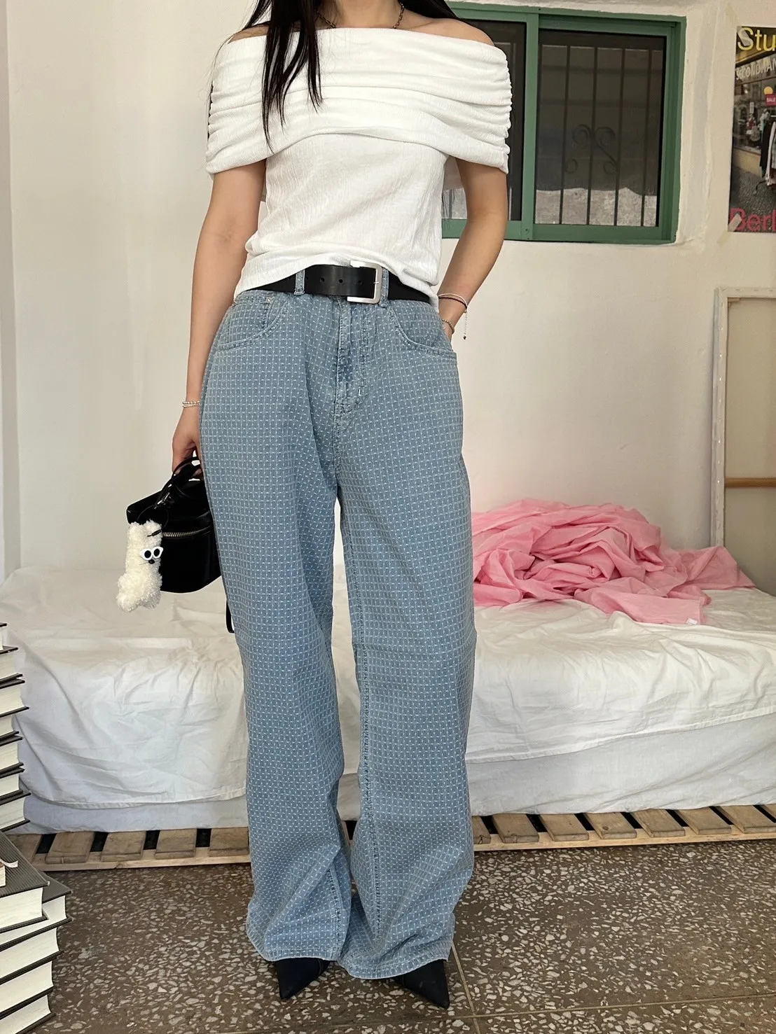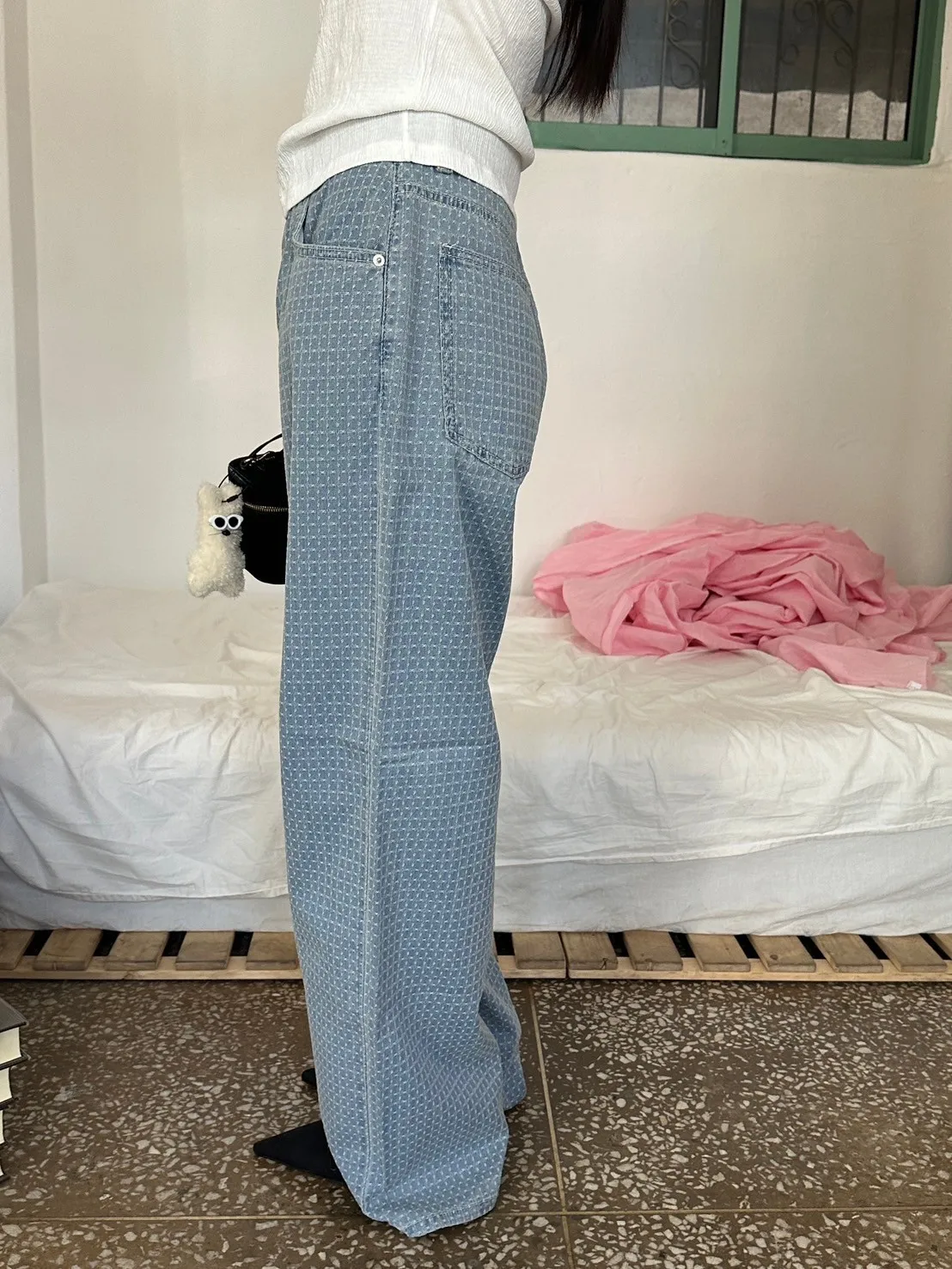 現貨!(夏天穿的住)Love in Paris 細節織感直筒牛仔褲
