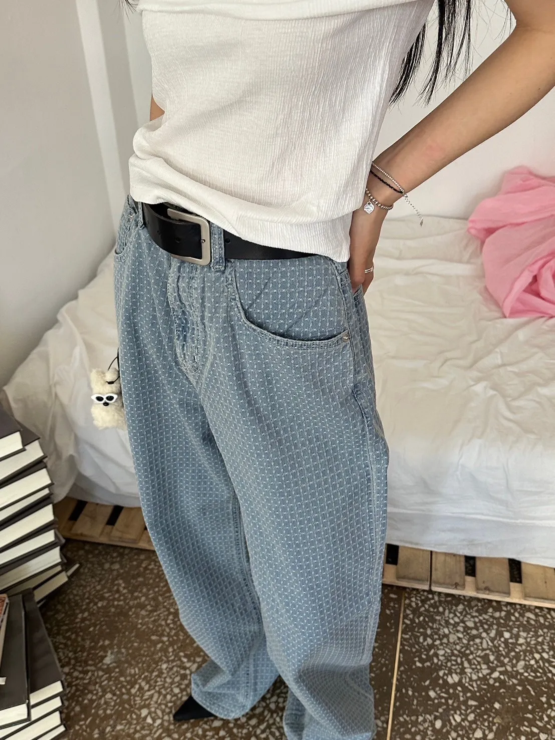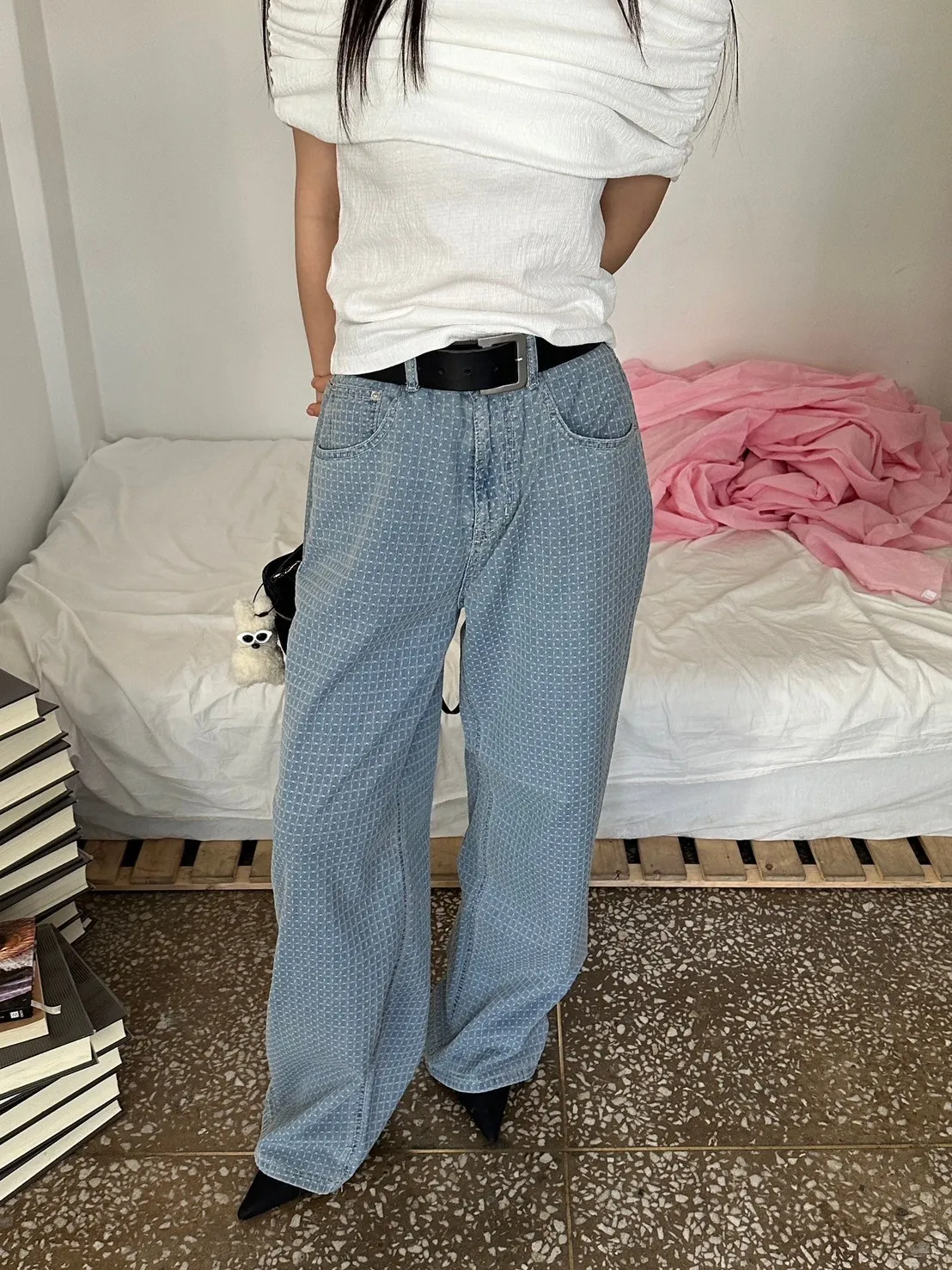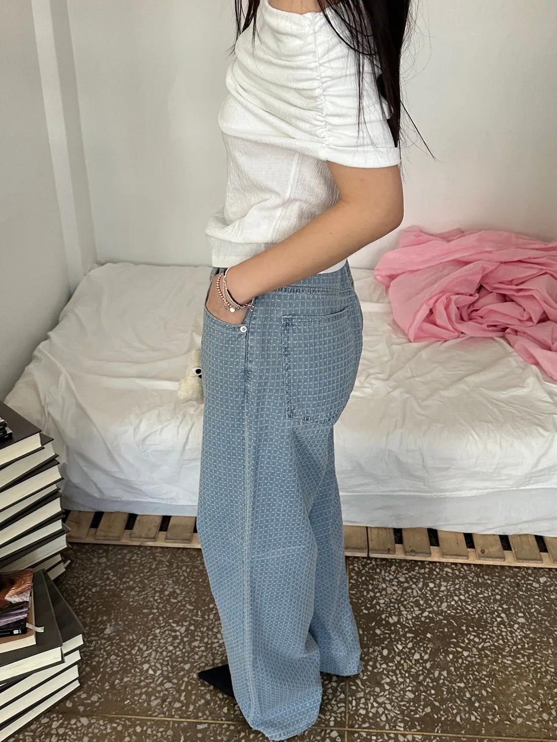 現貨!(夏天穿的住)Love in Paris 細節織感直筒牛仔褲