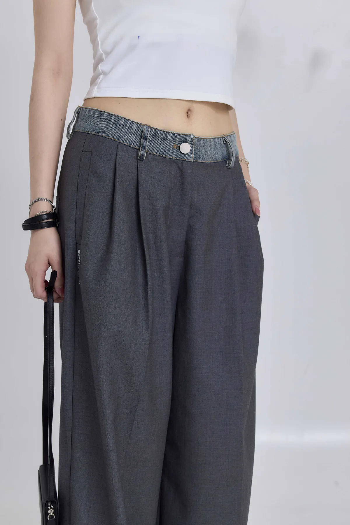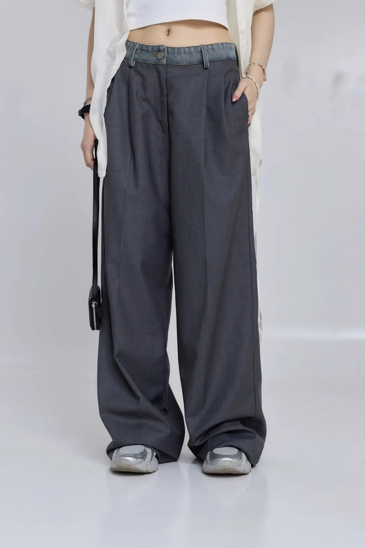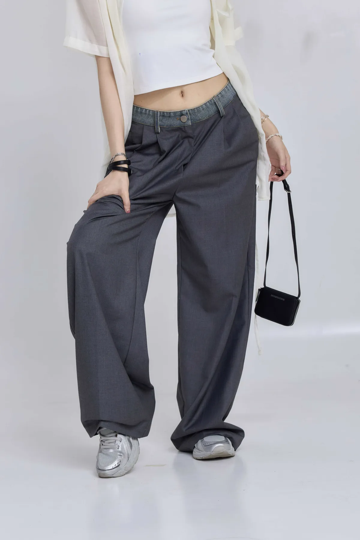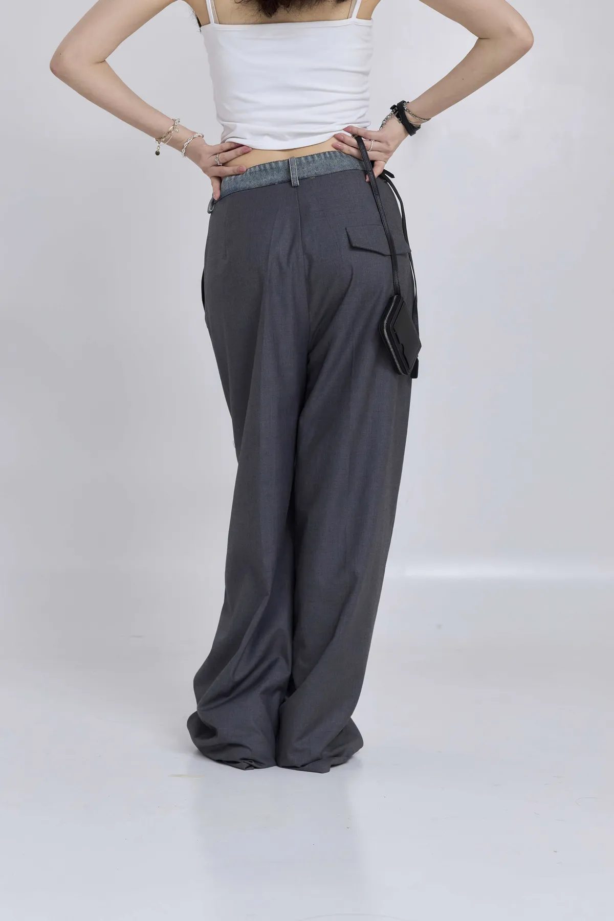 「BOGAMADE」牛仔拼接褲頭西裝褲.灰