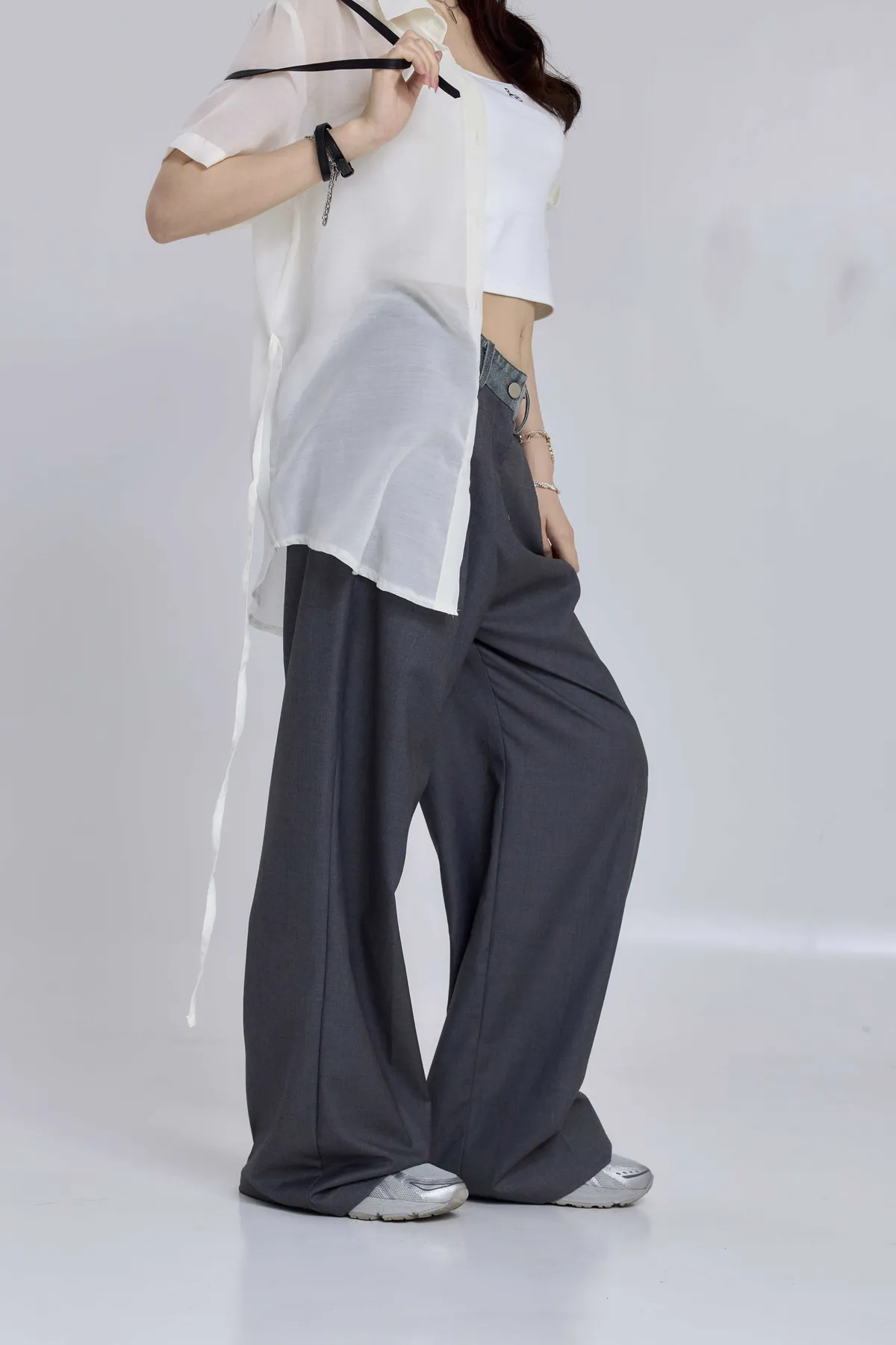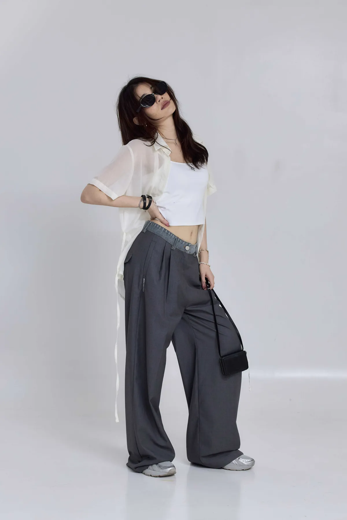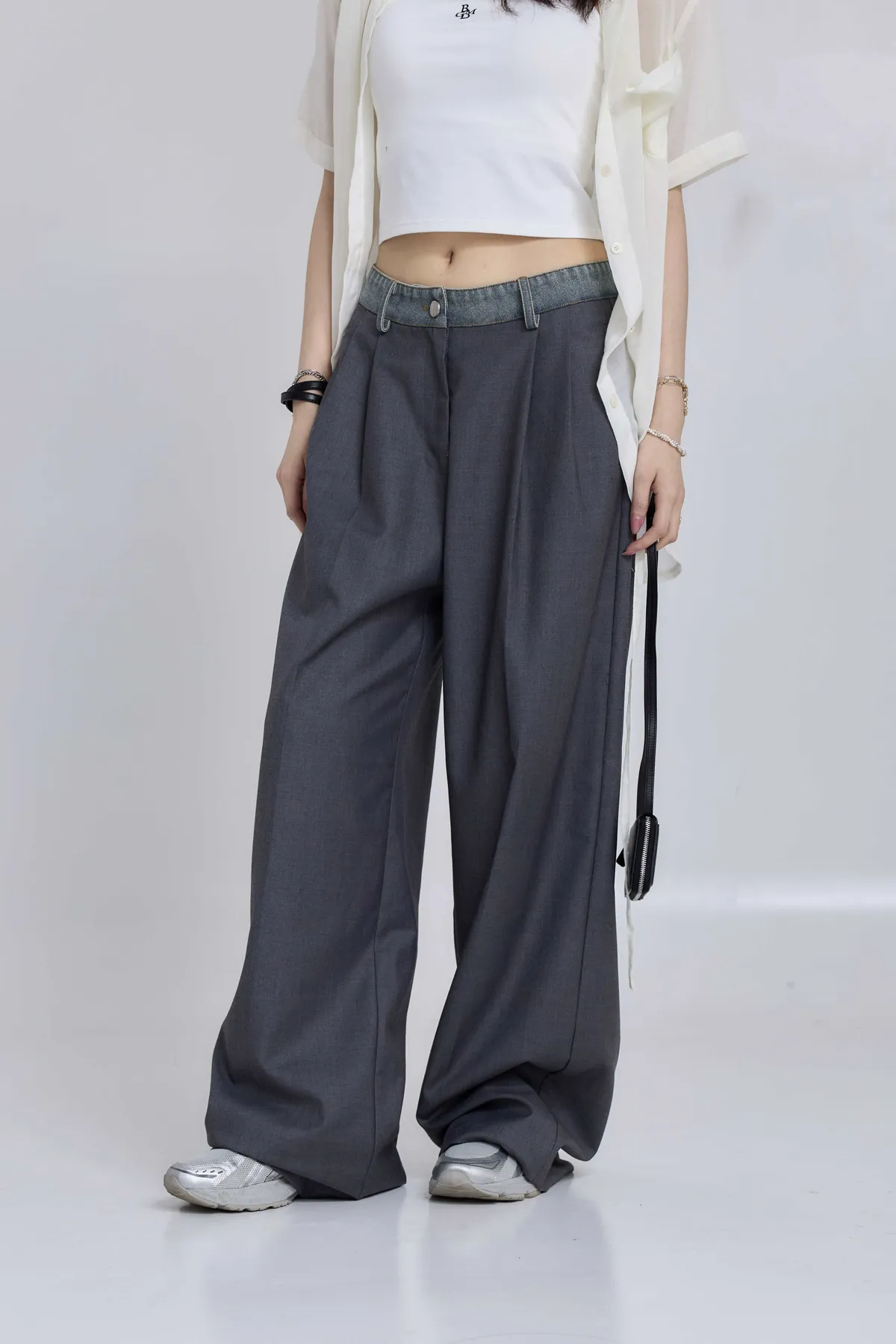 「BOGAMADE」牛仔拼接褲頭西裝褲.灰