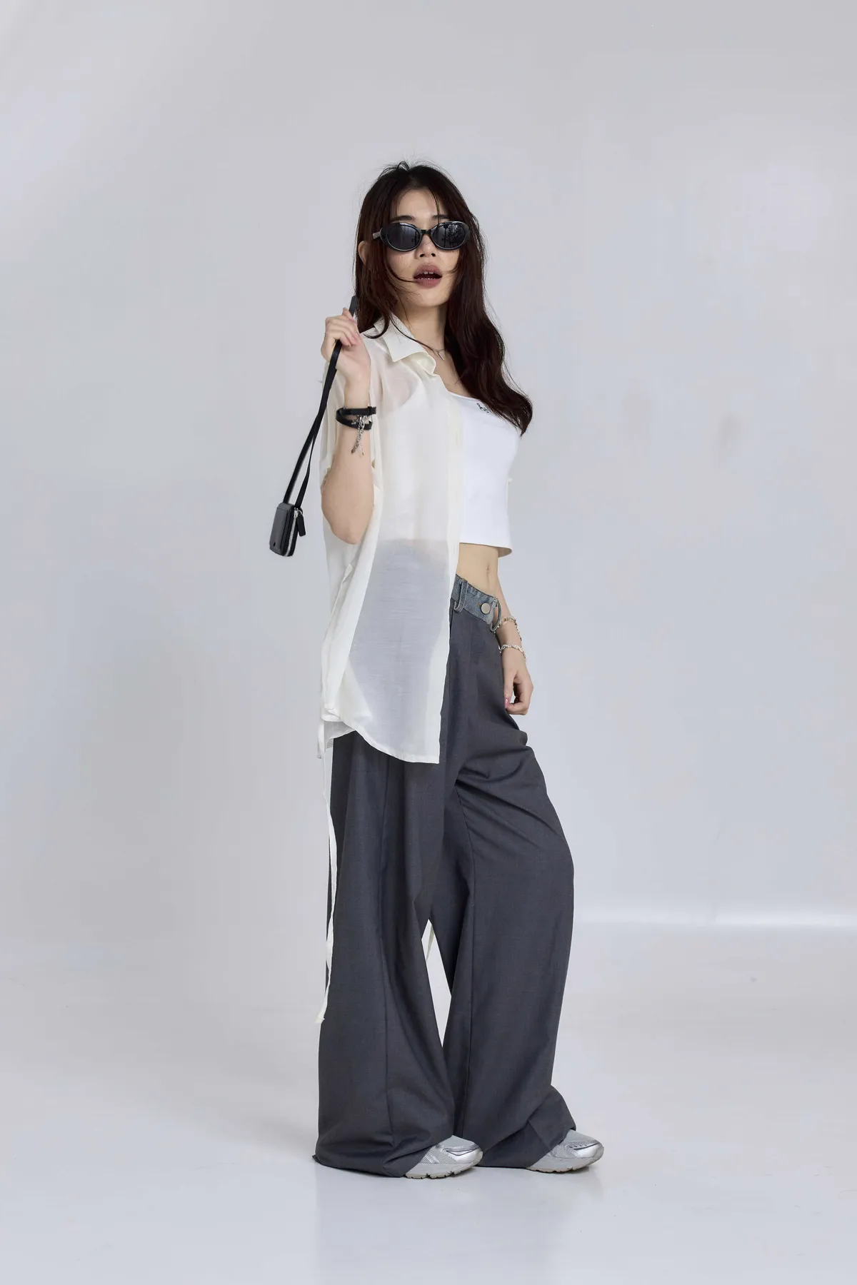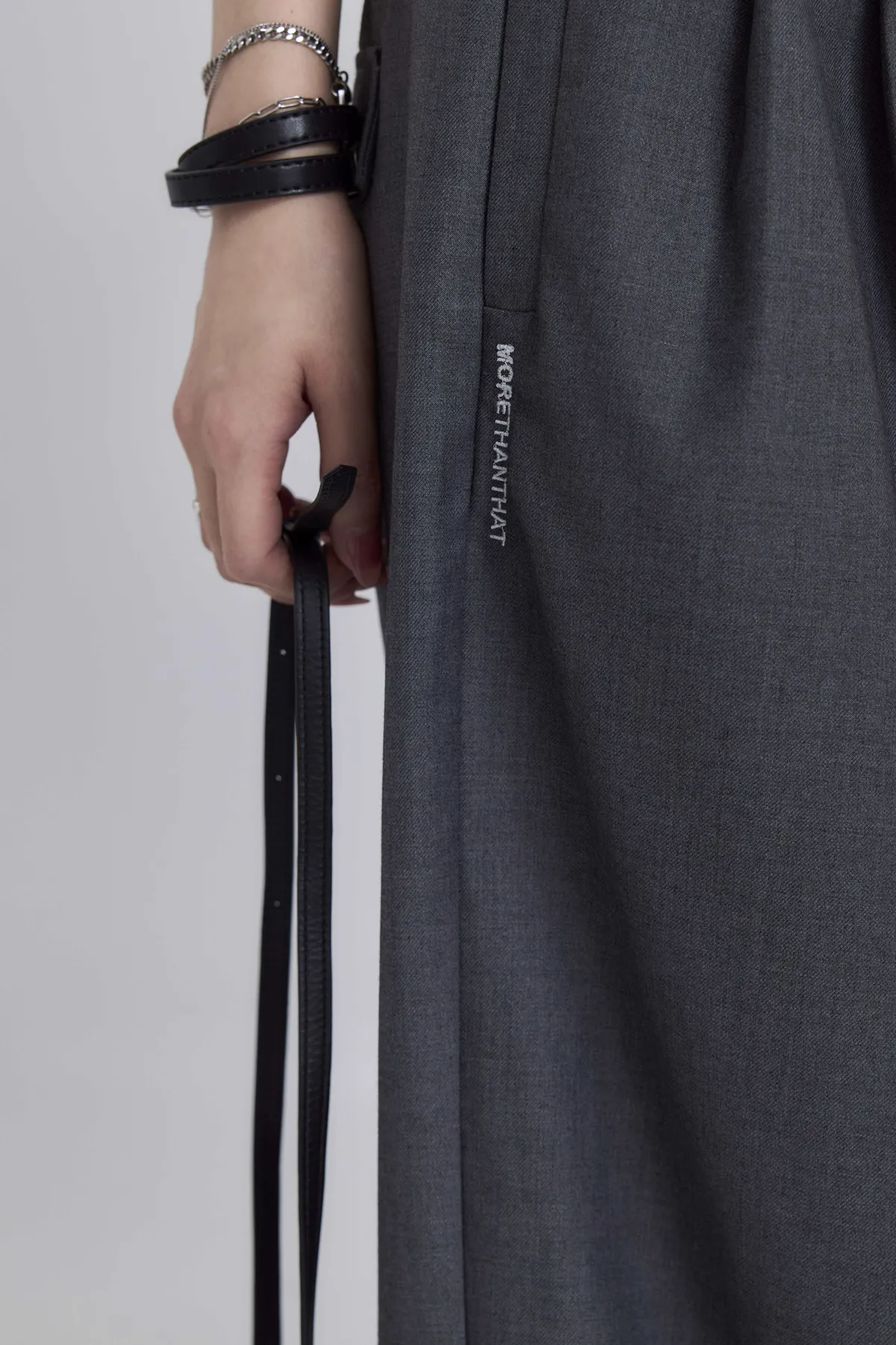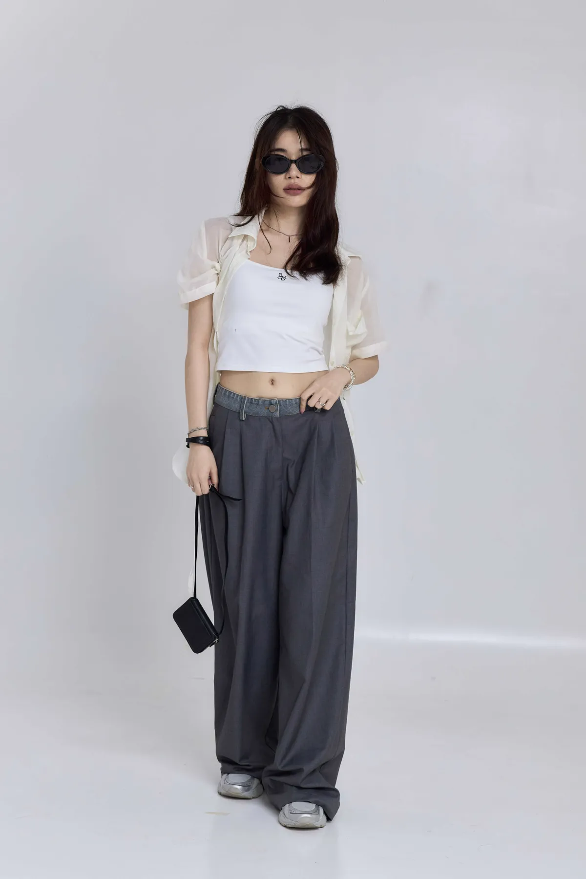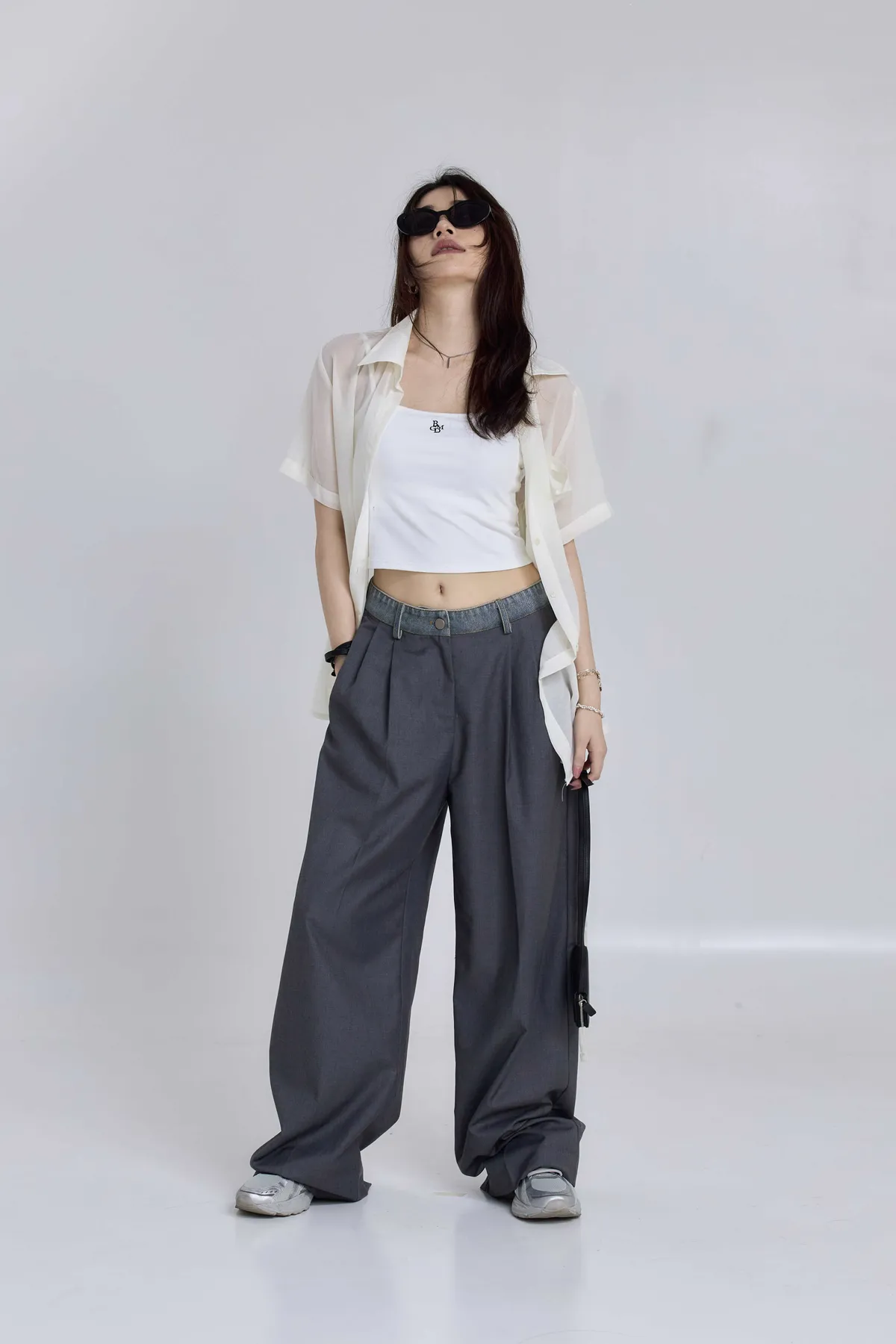 「BOGAMADE」牛仔拼接褲頭西裝褲.灰