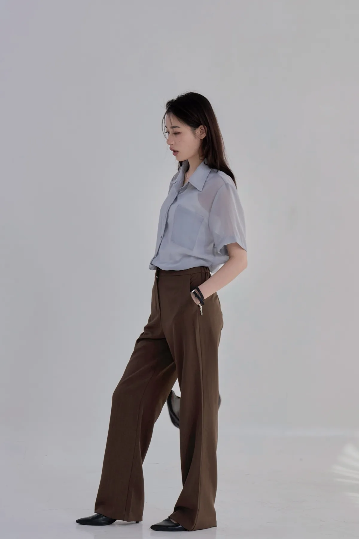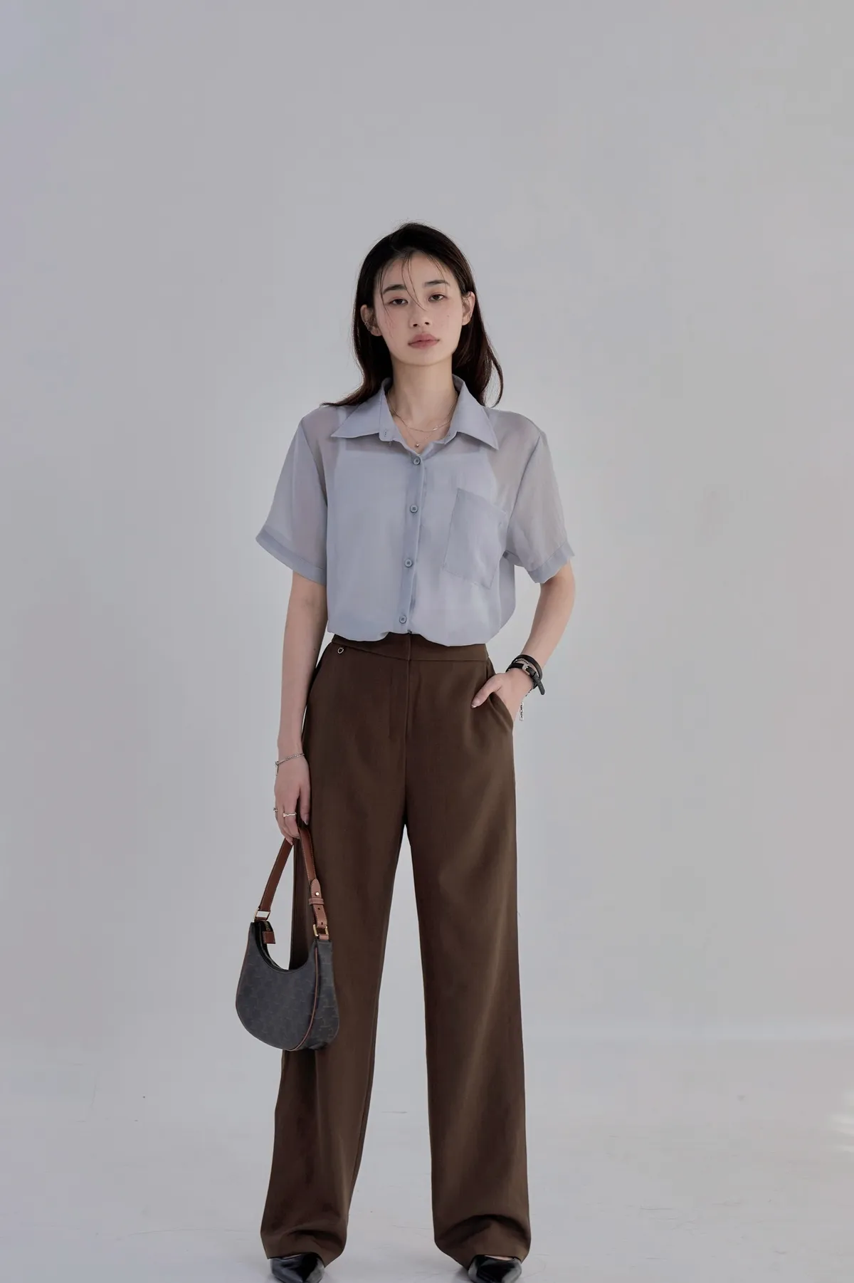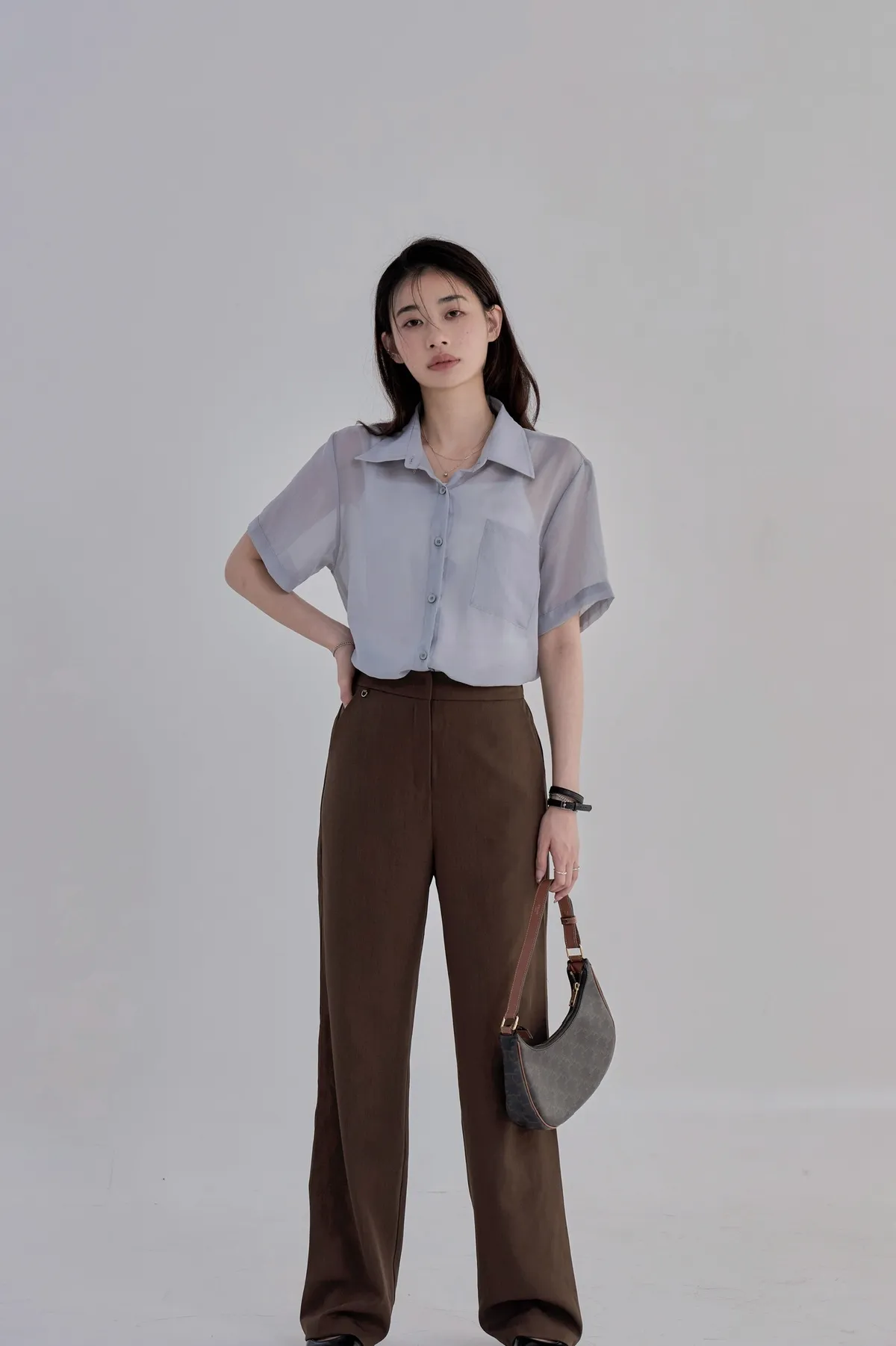 「BOGAMADE」無重力透膚綁帶襯衫.灰藍