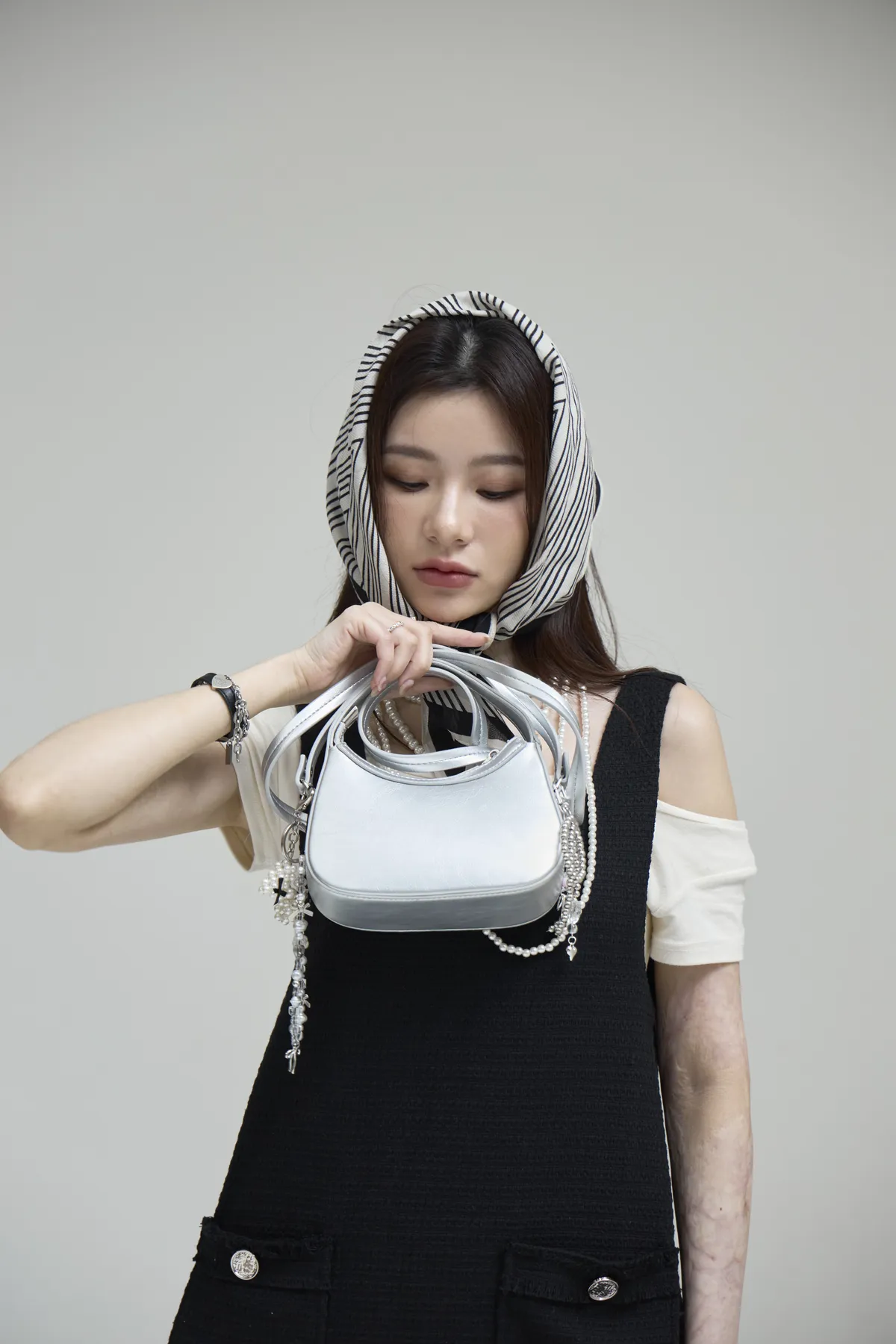 現貨!「BOGAMADE」迷你月亮手提肩背包.銀色