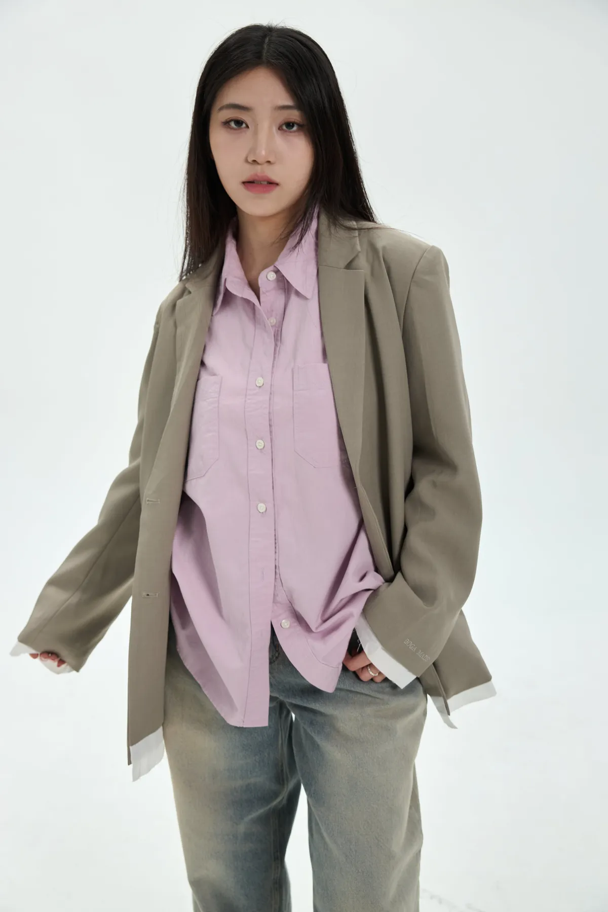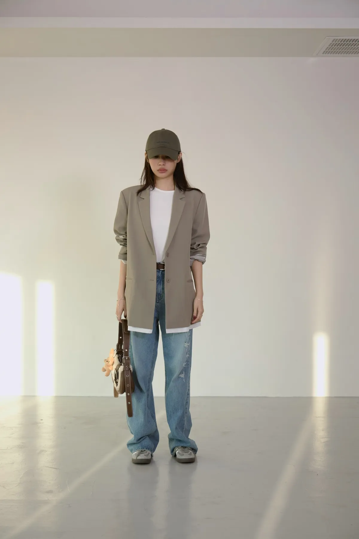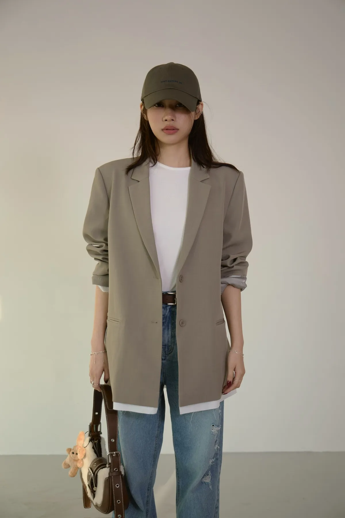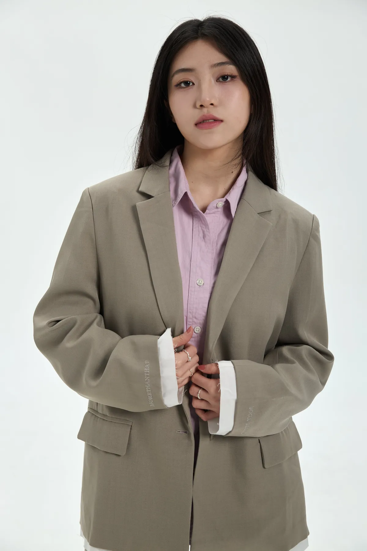 現貨!「BOGAMADE」拼接感西裝外套.霧灰綠