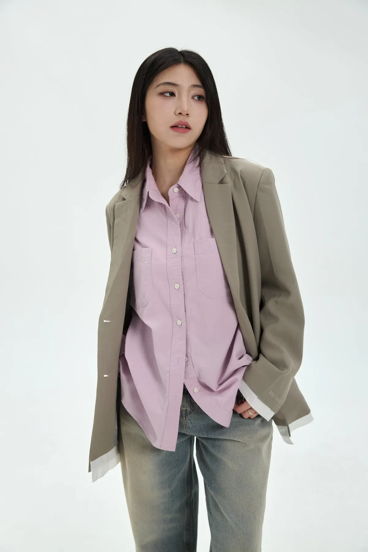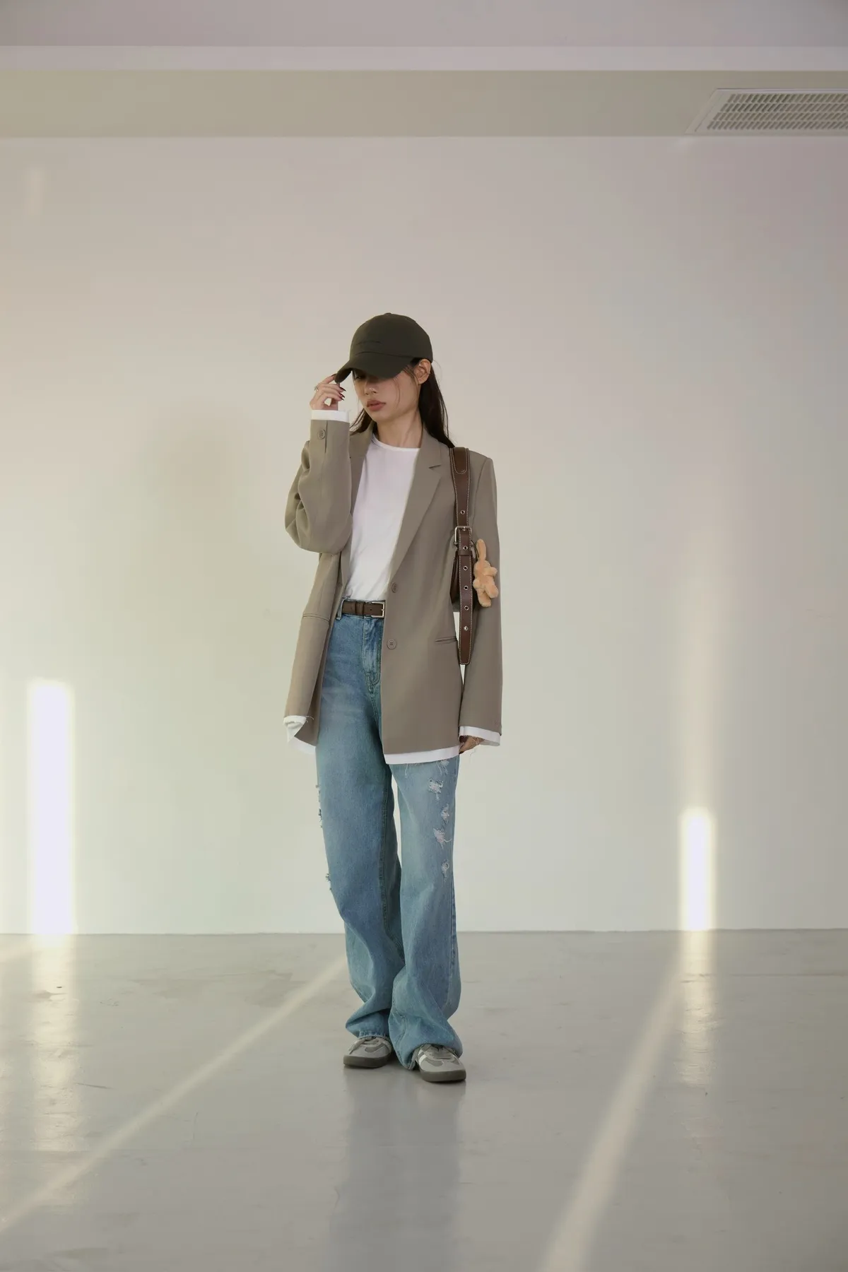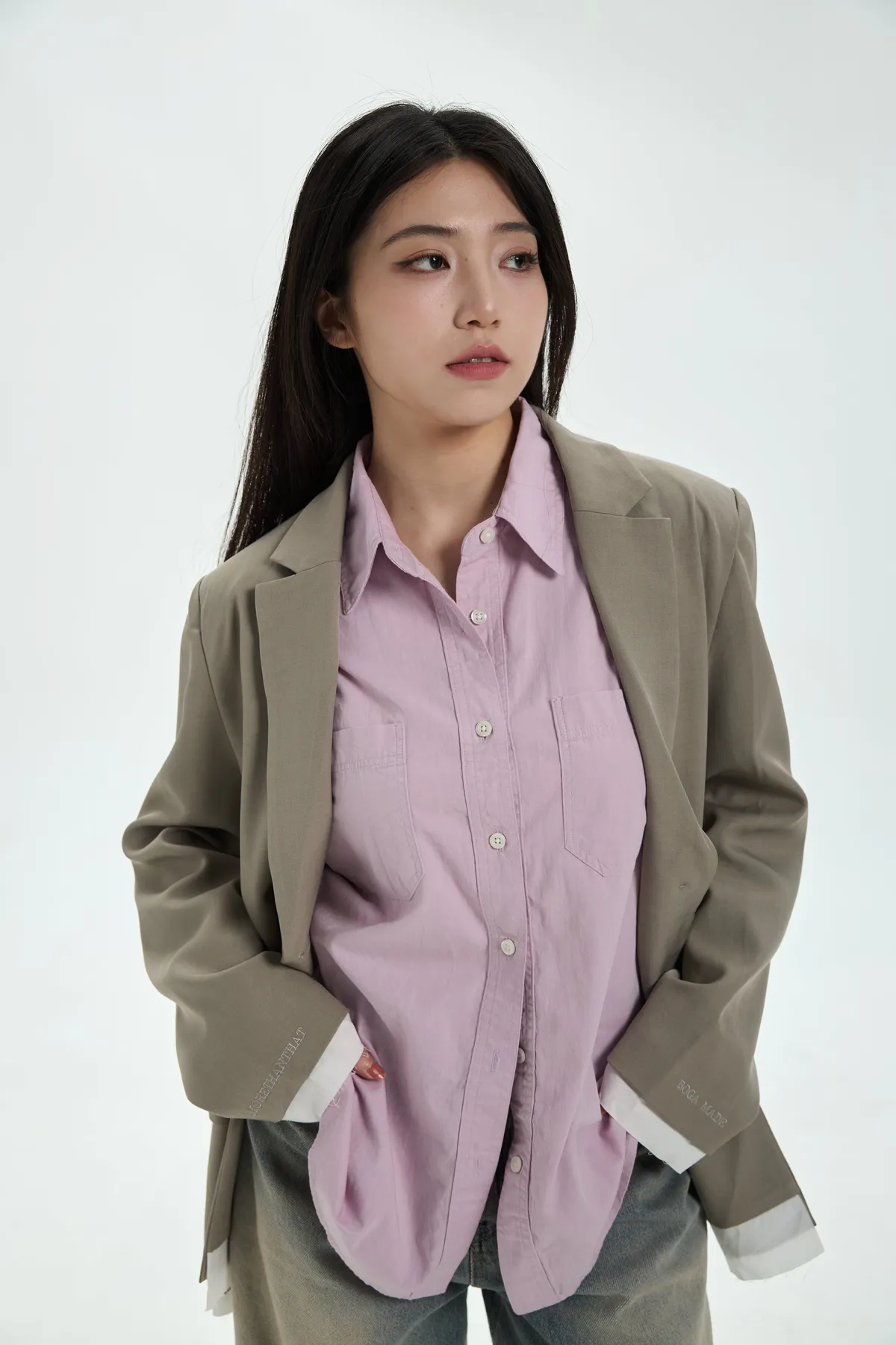 現貨!「BOGAMADE」拼接感西裝外套.霧灰綠
