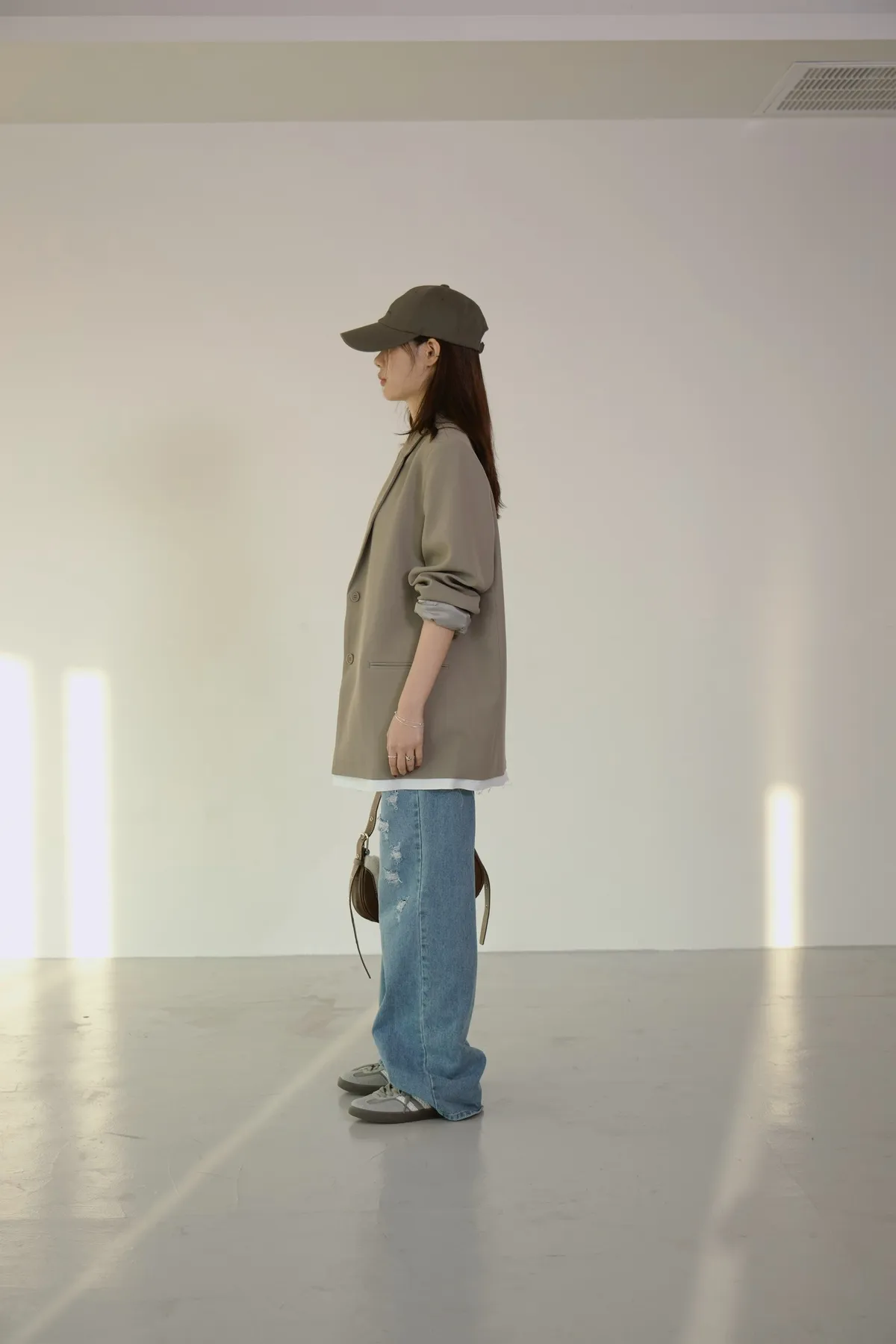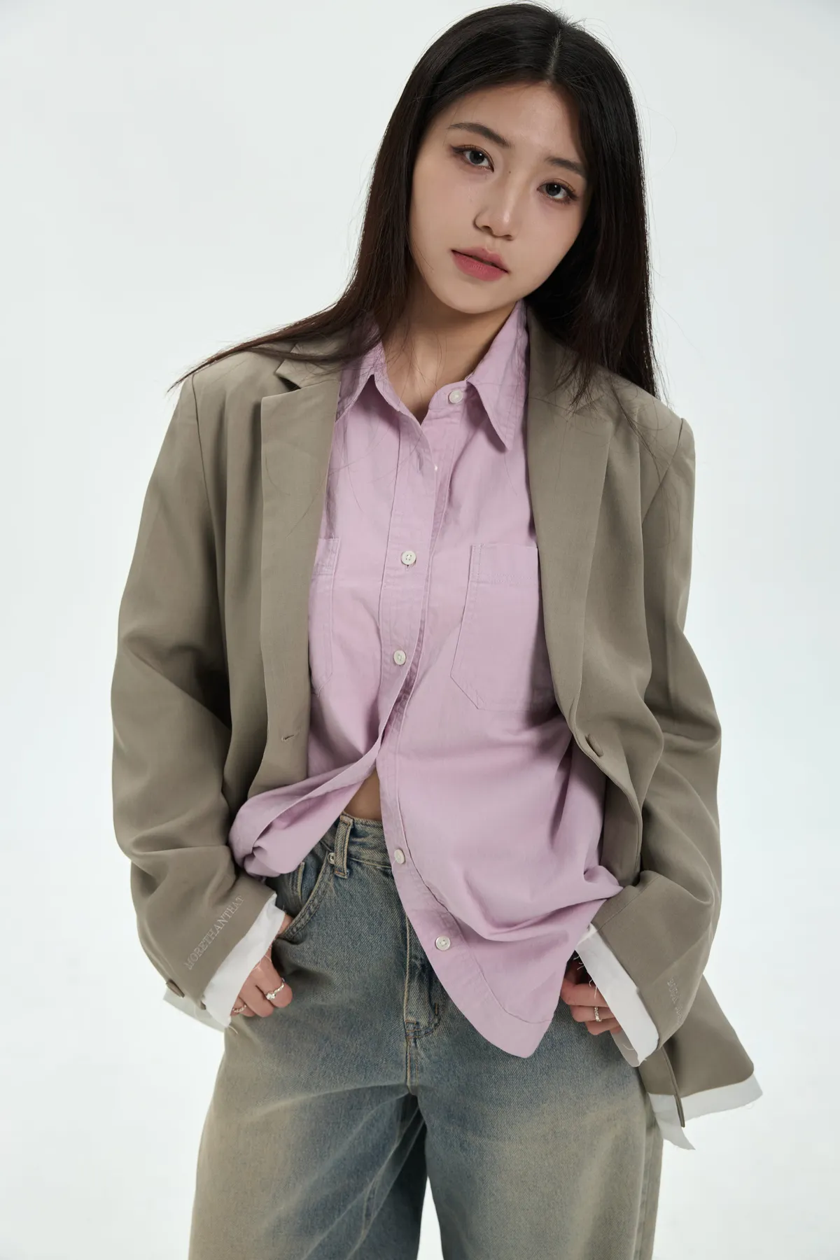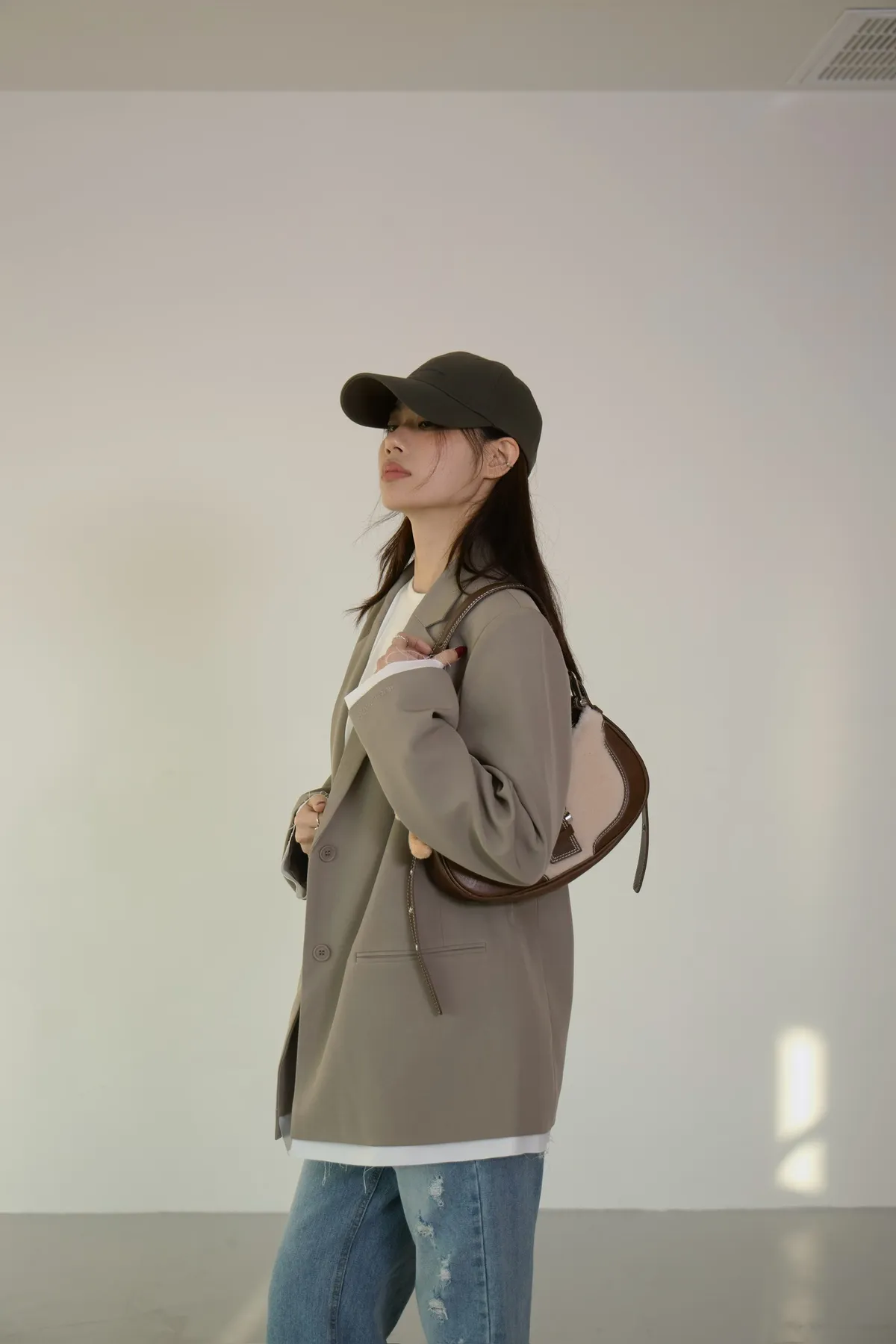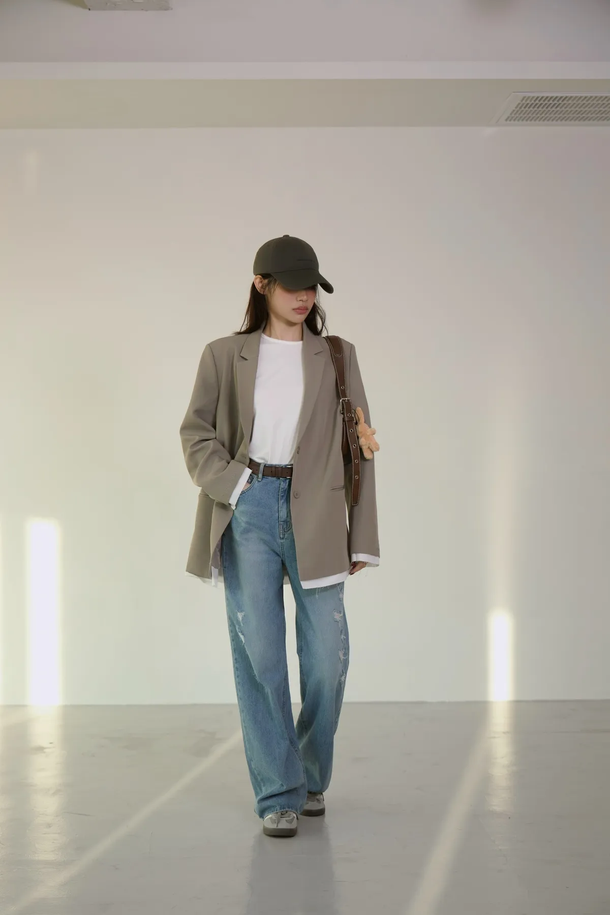 現貨!「BOGAMADE」拼接感西裝外套.霧灰綠