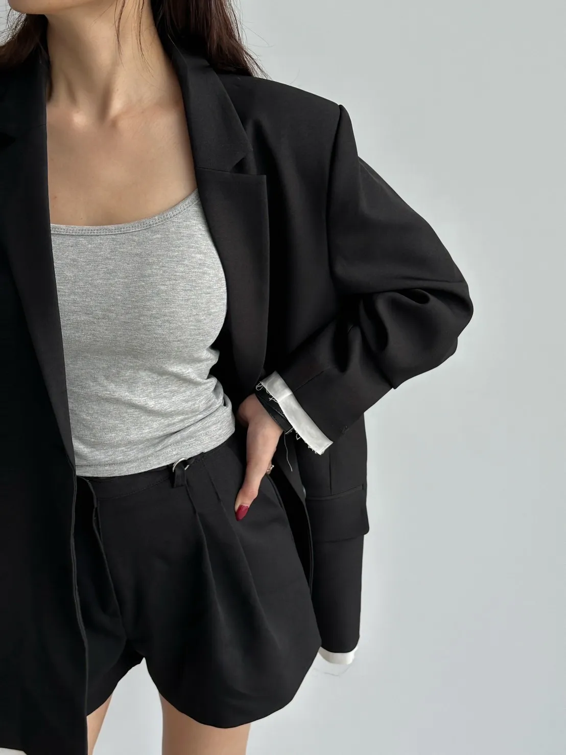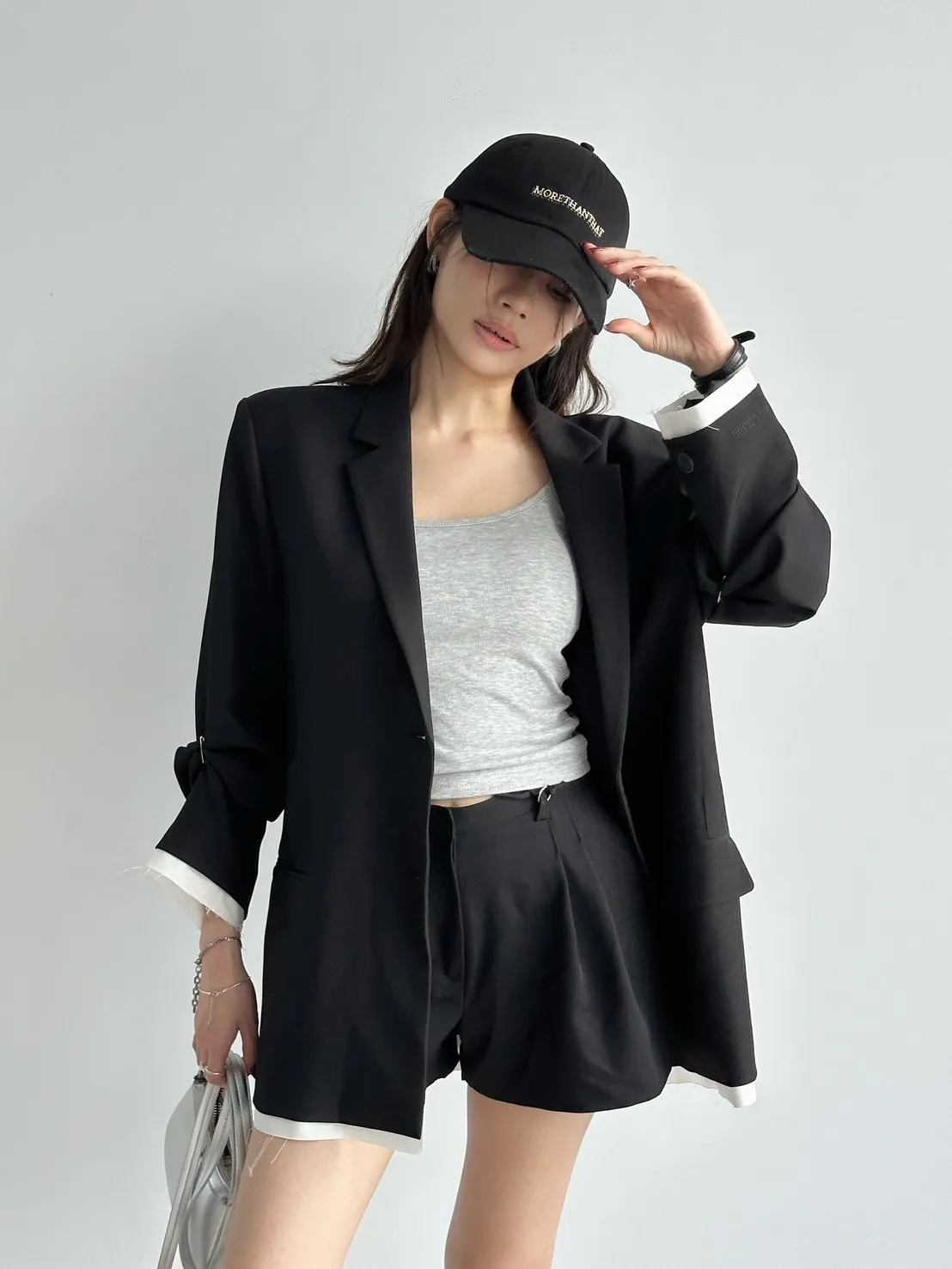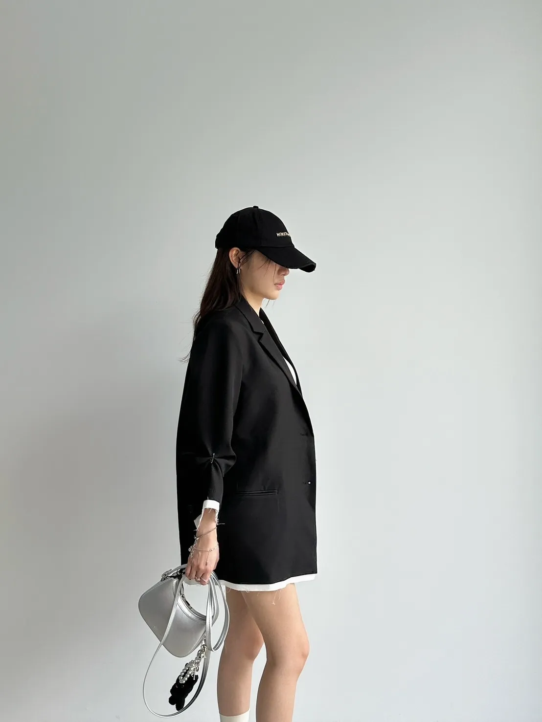現貨!「BOGAMADE」拼接感西裝外套.黑