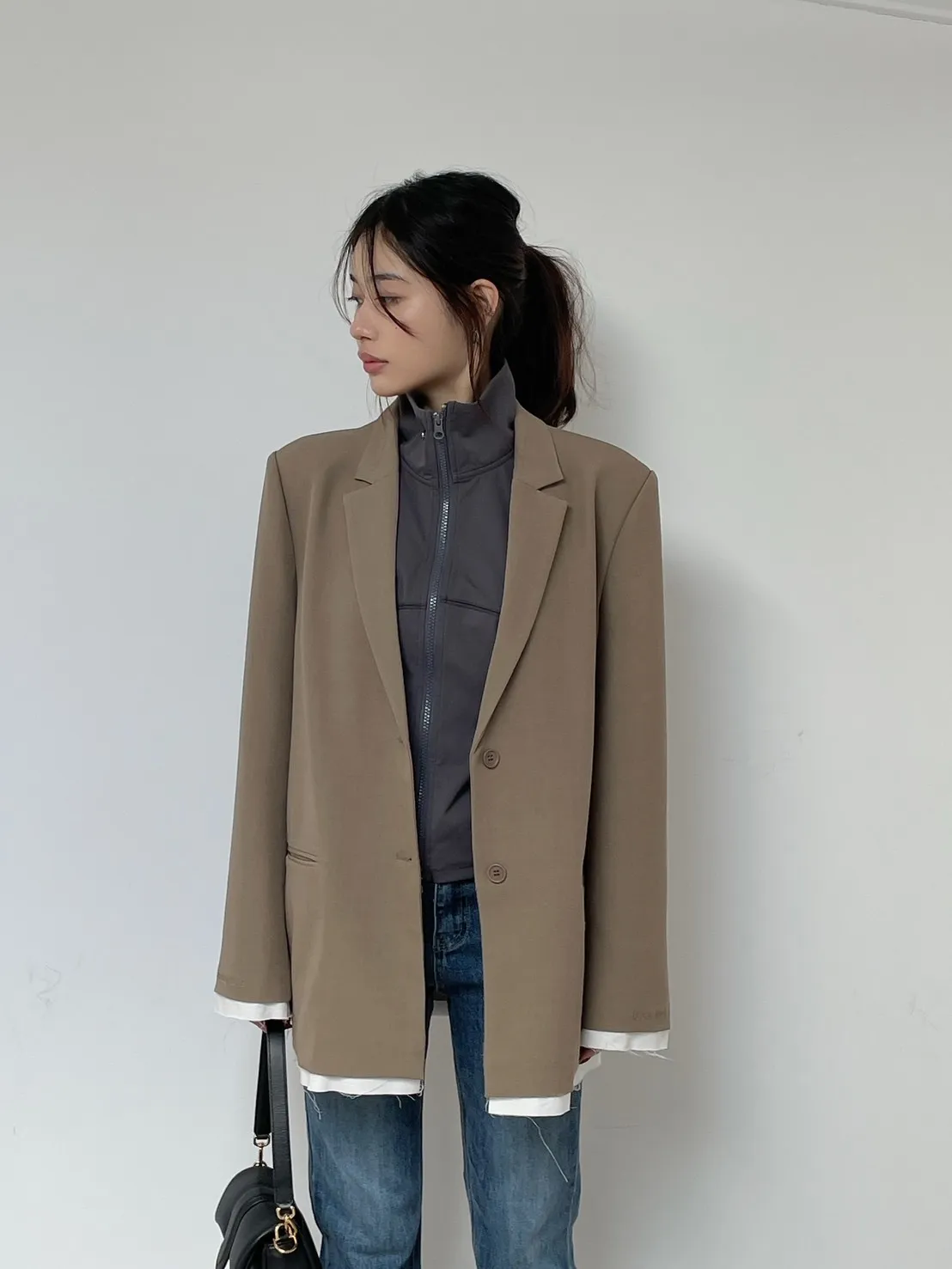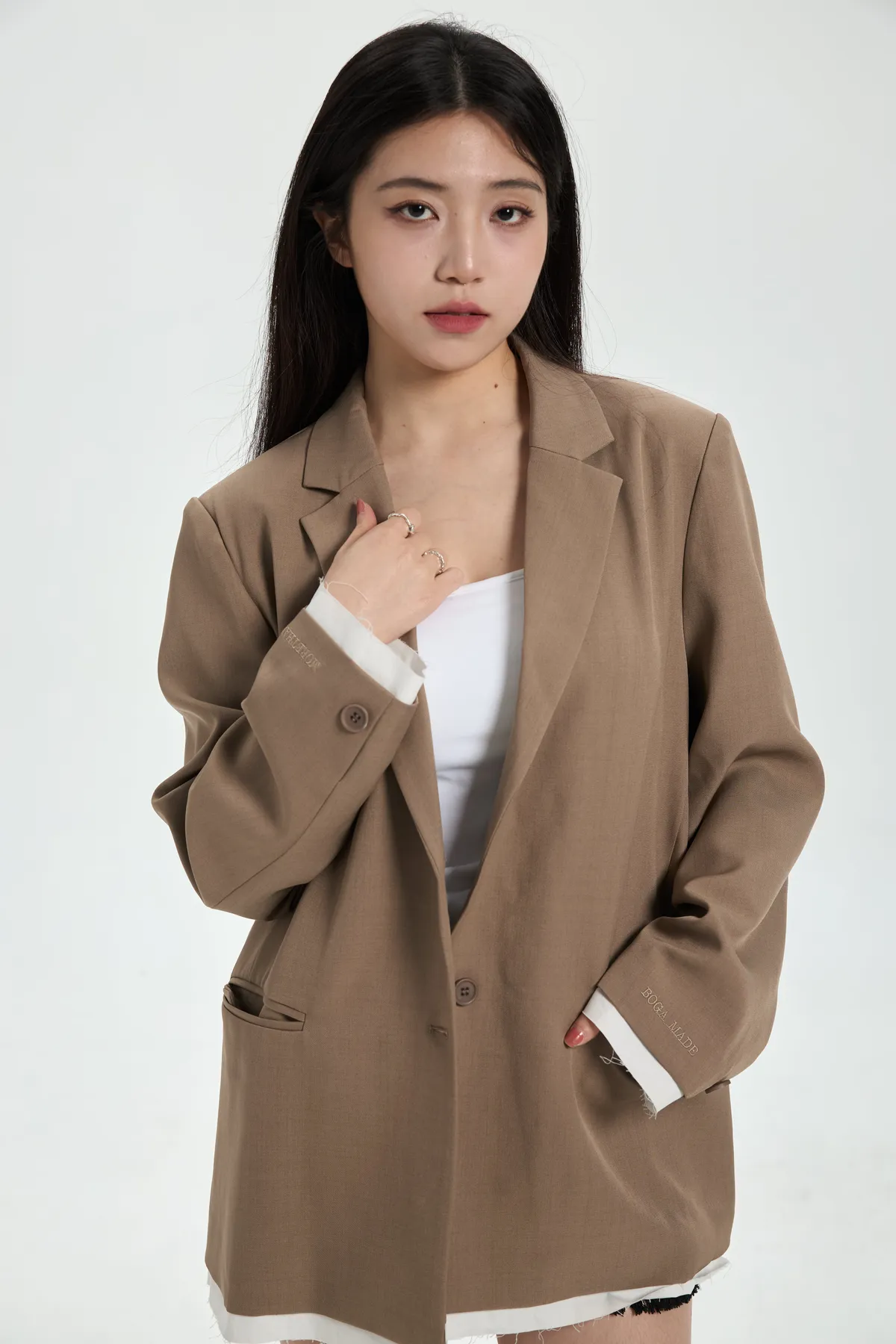 現貨!「BOGAMADE」拼接感西裝外套.卡其