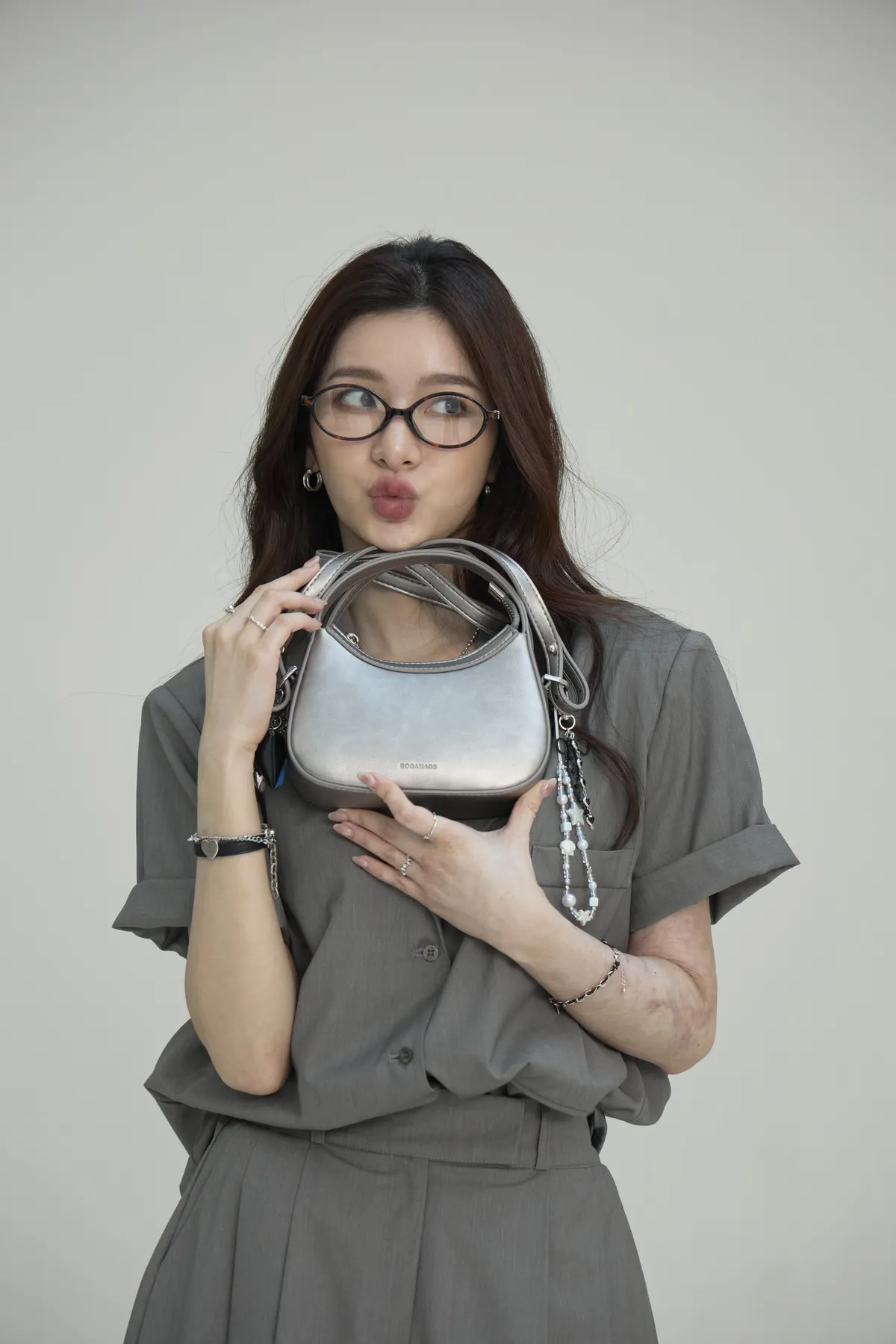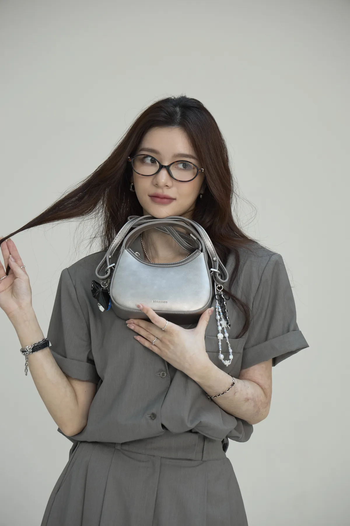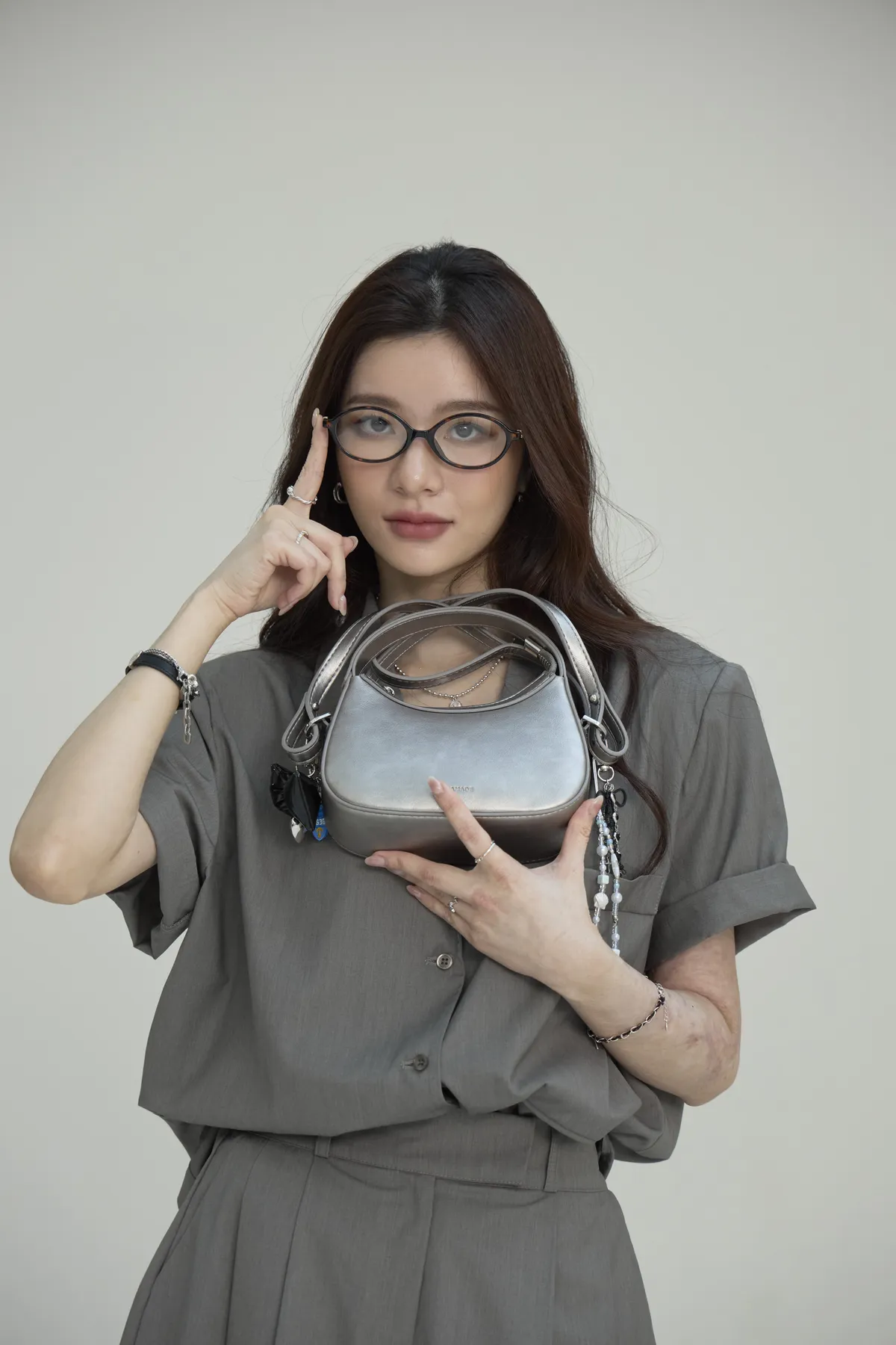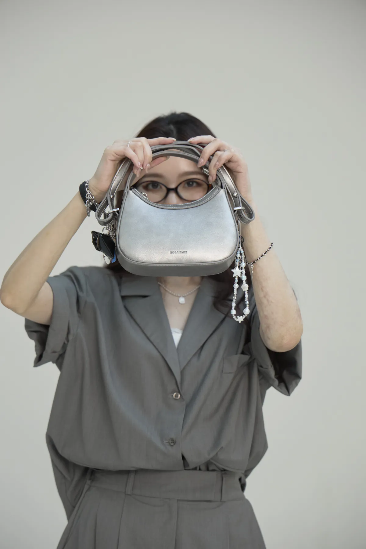 「BOGAMADE」迷你月亮手提肩背包.香檳色