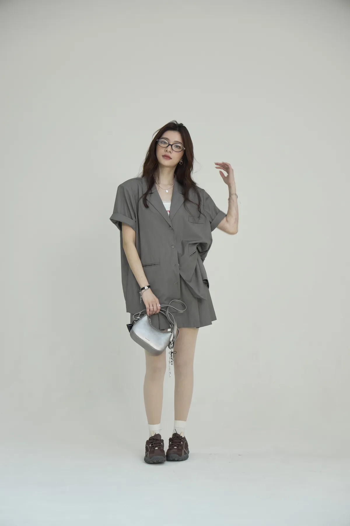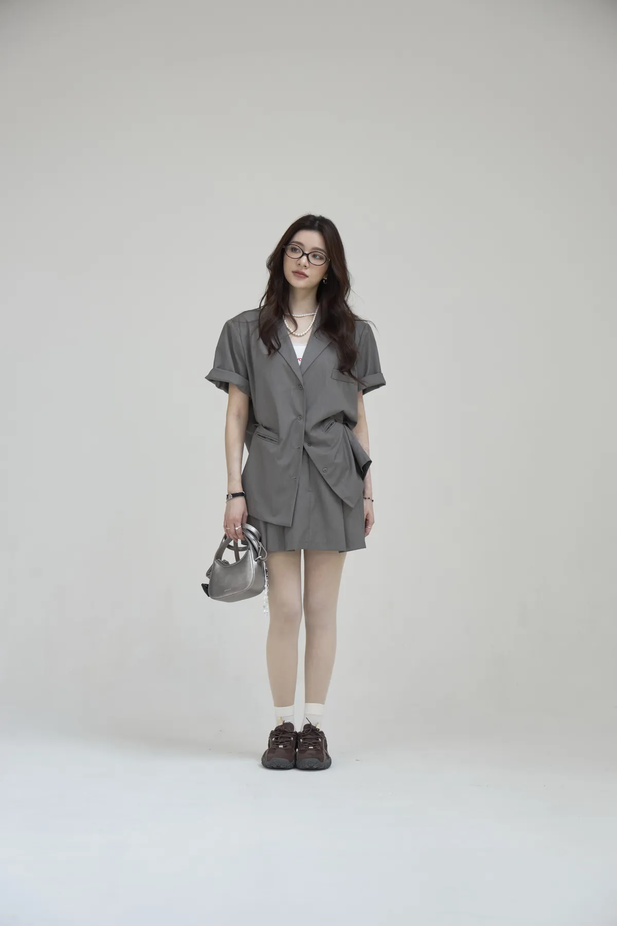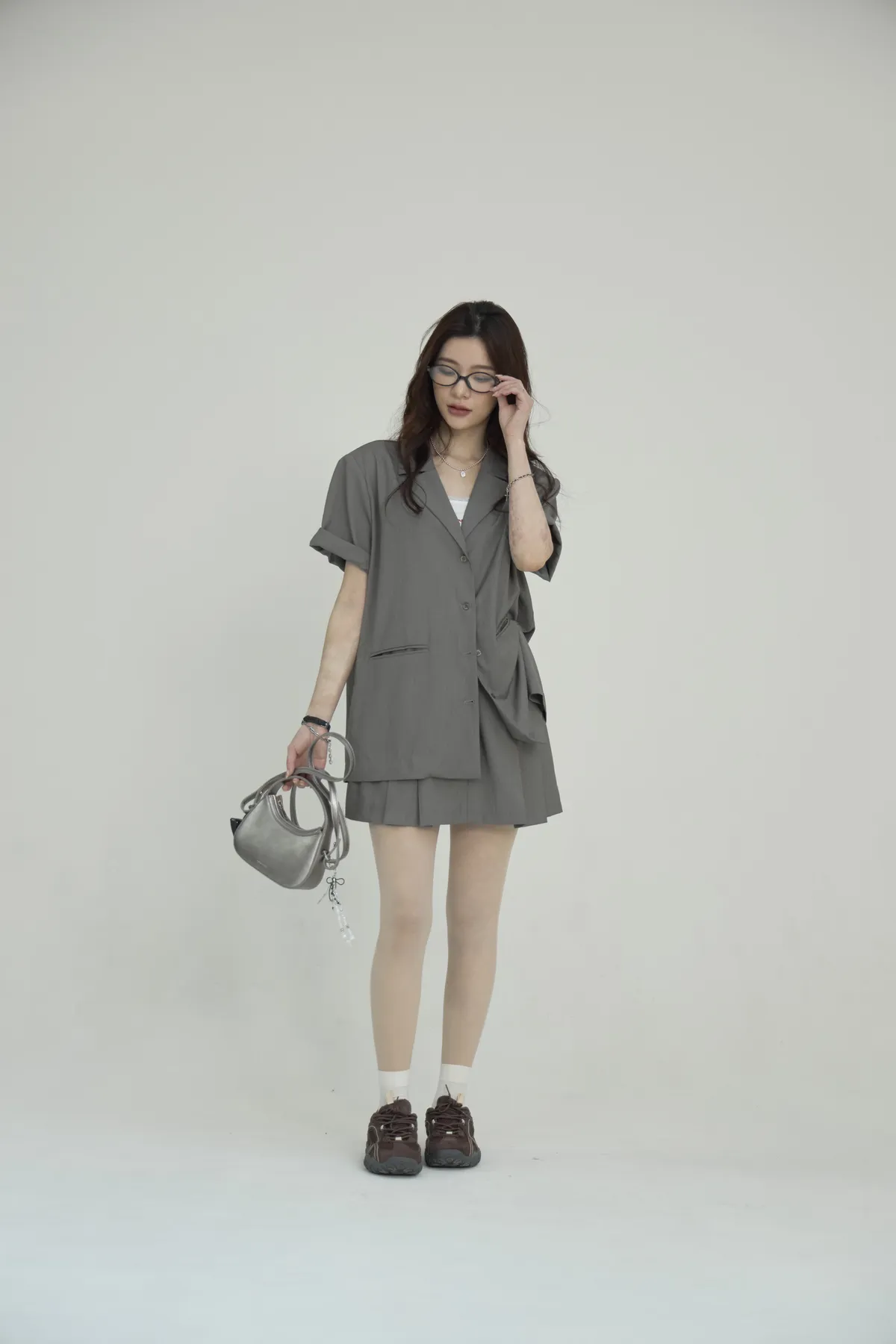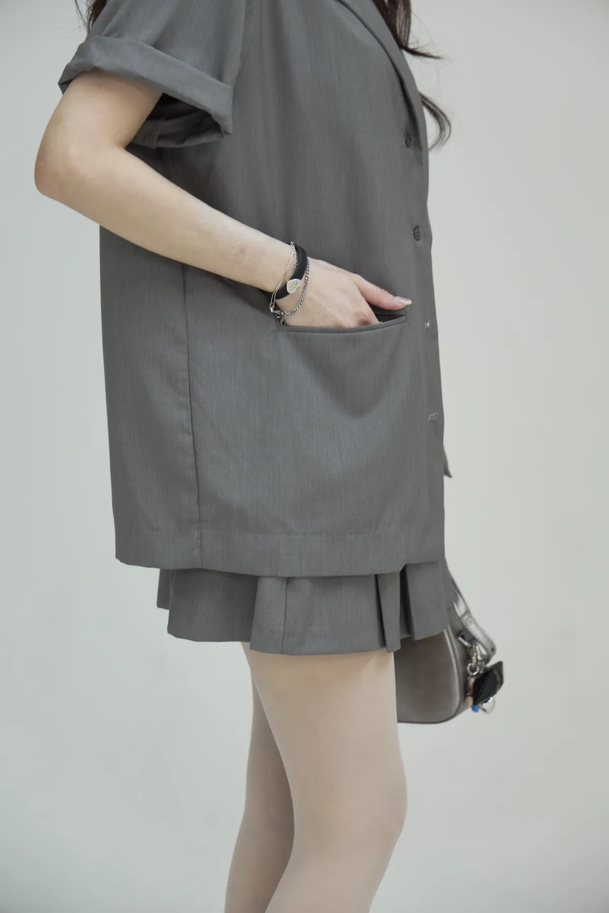 現貨!「BOGAMADE」Emily EP4 短袖西裝套裝(可拆賣).灰
