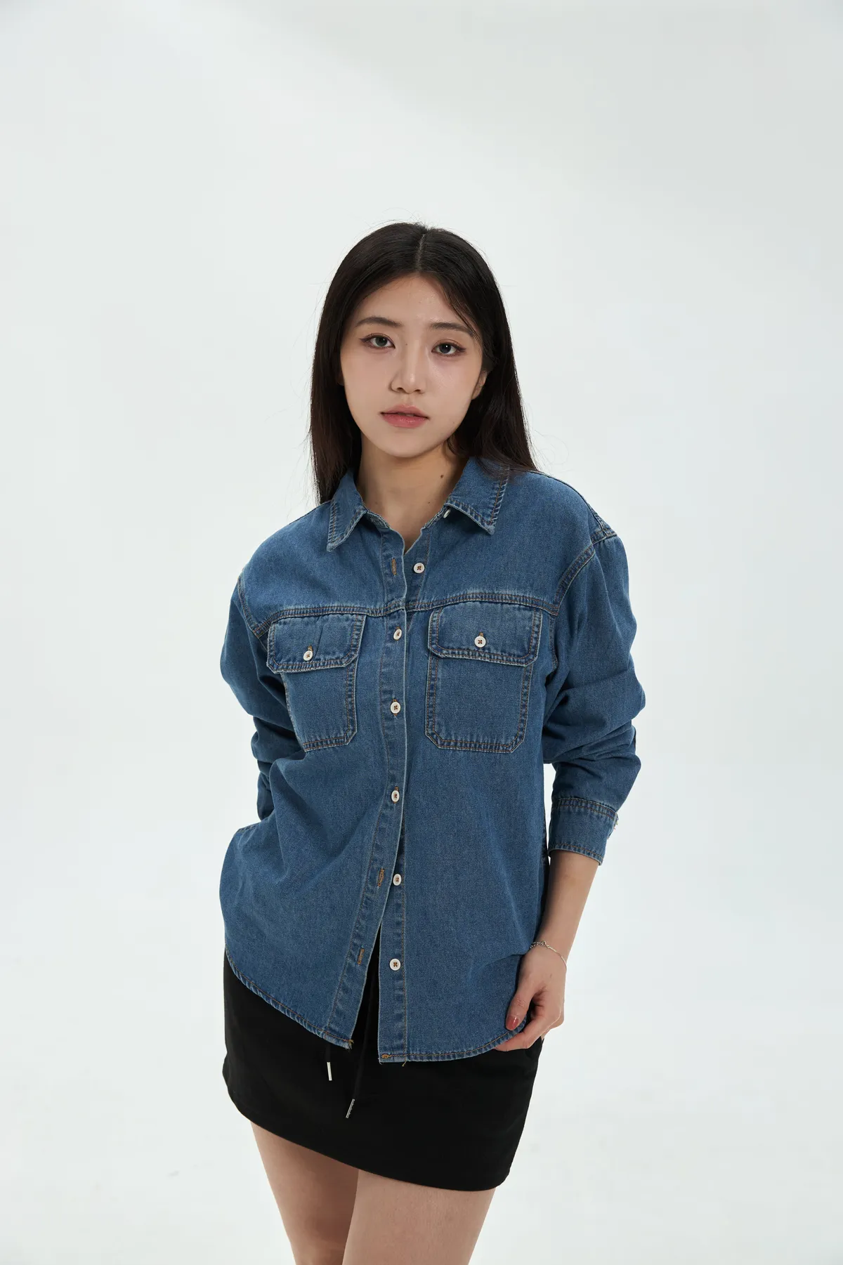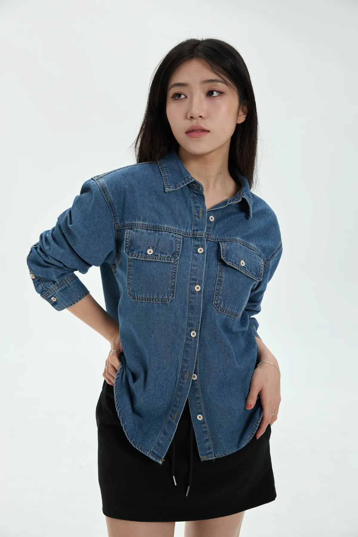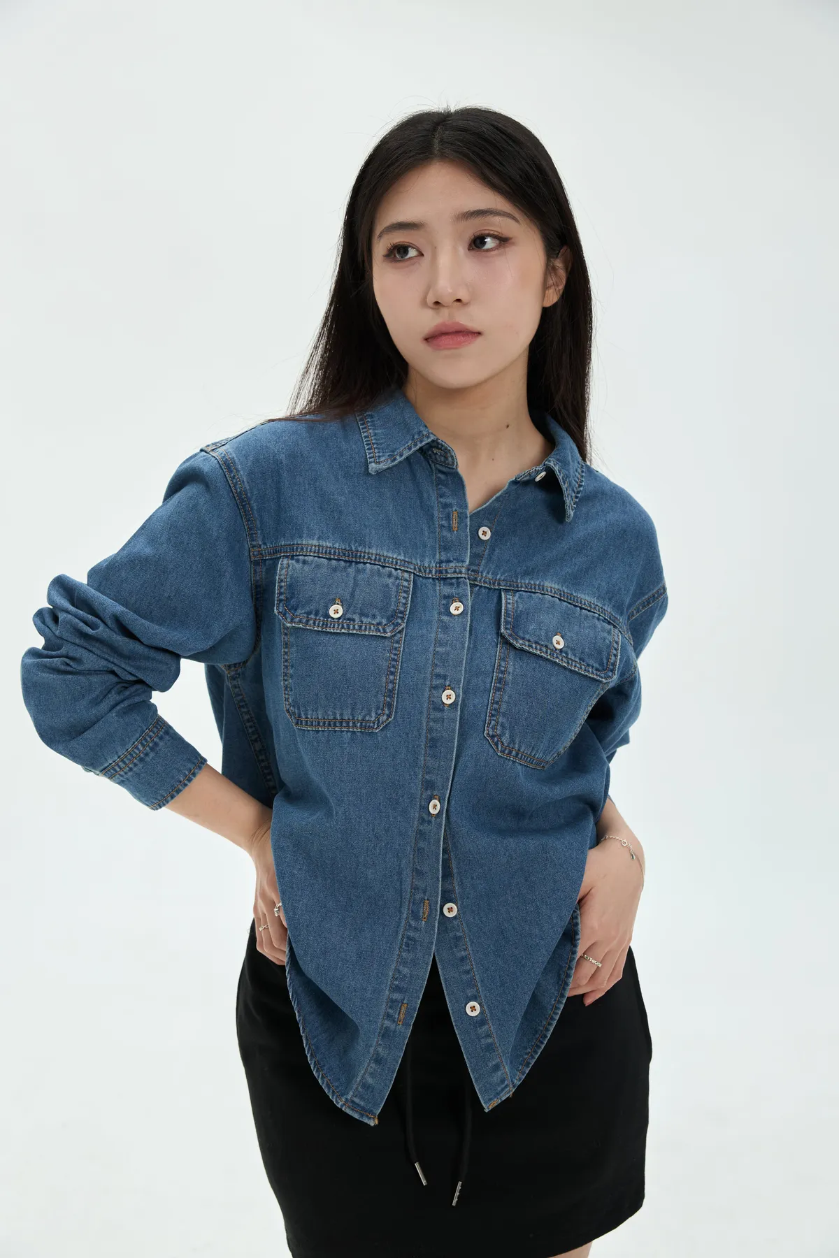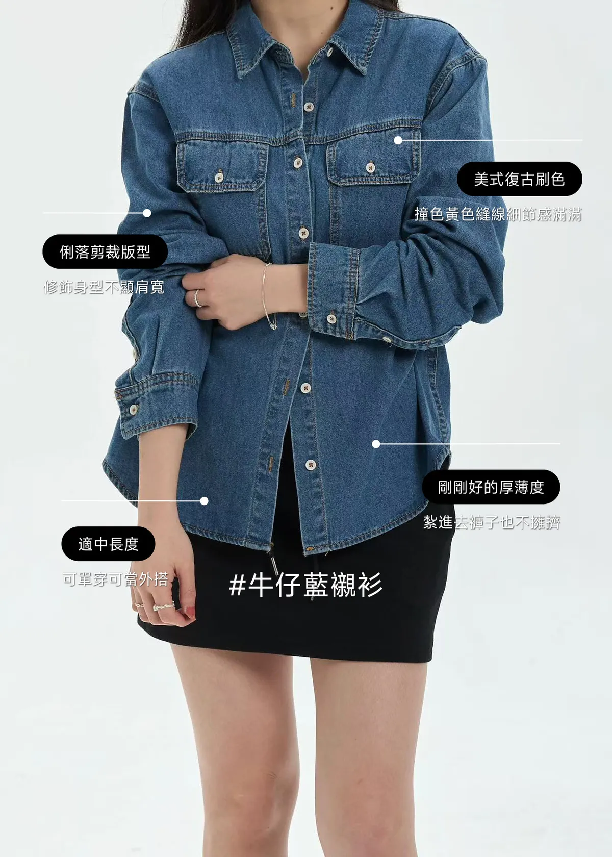 現貨!「BOGAMADE」知性女孩牛仔挺版襯衫
