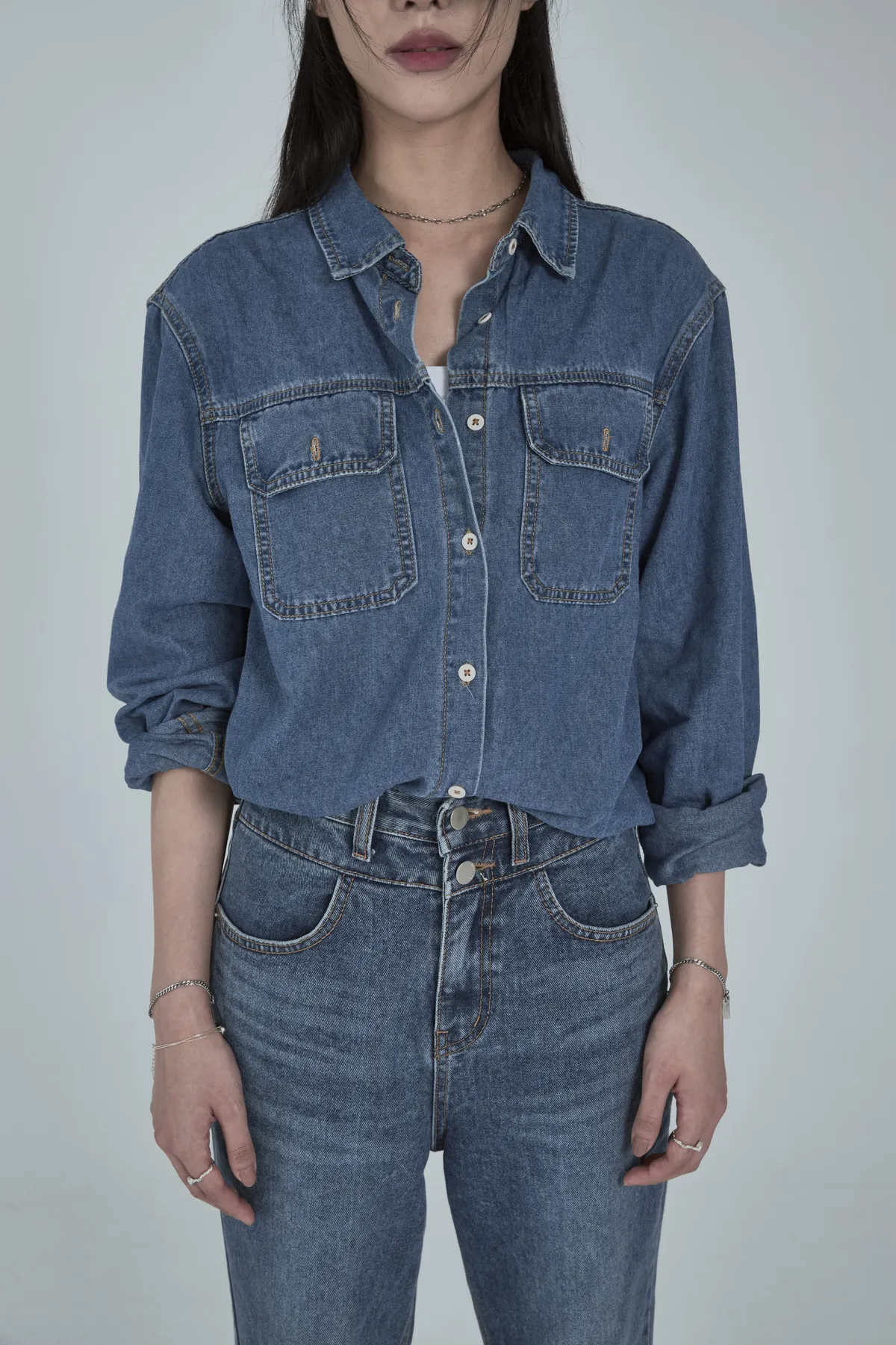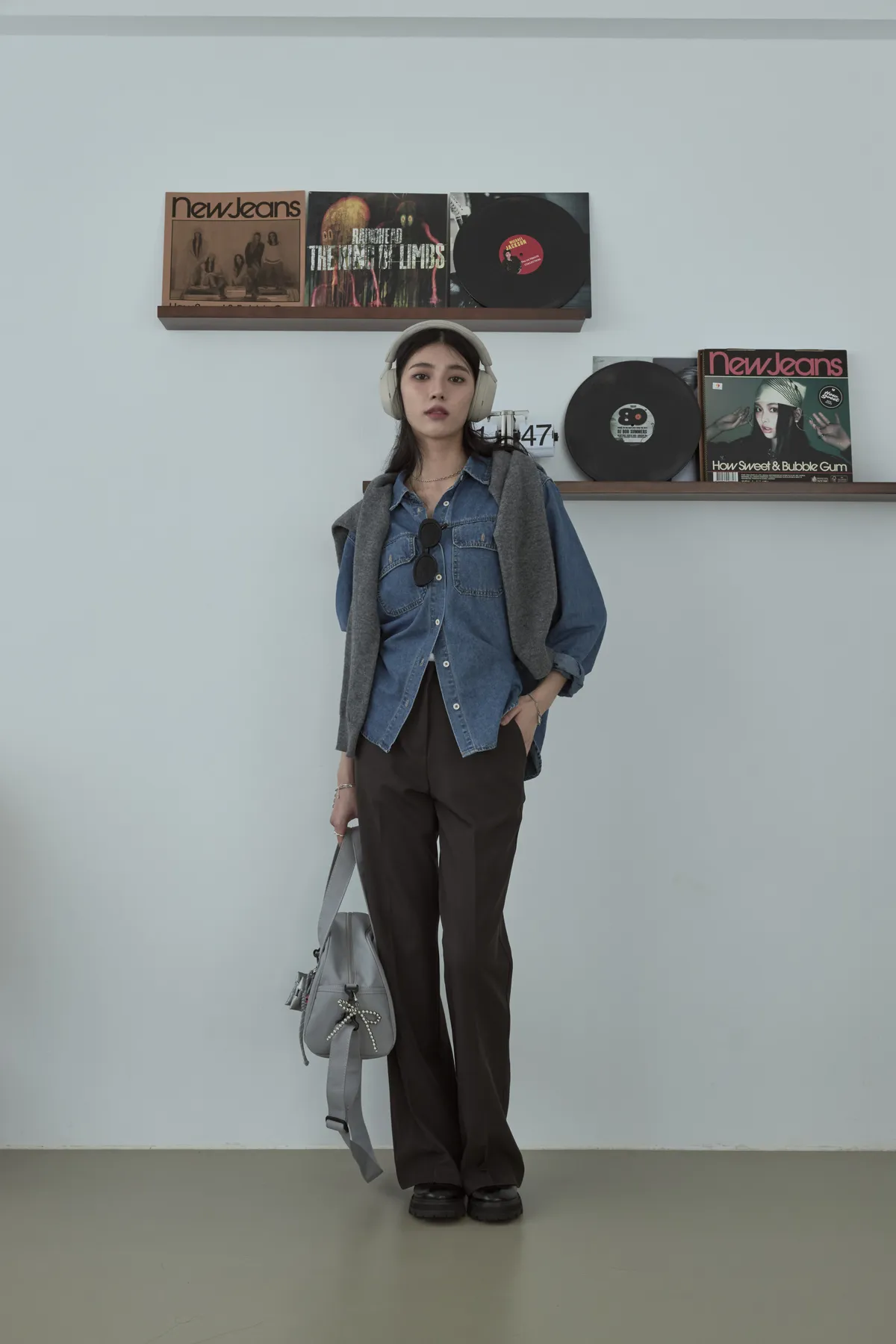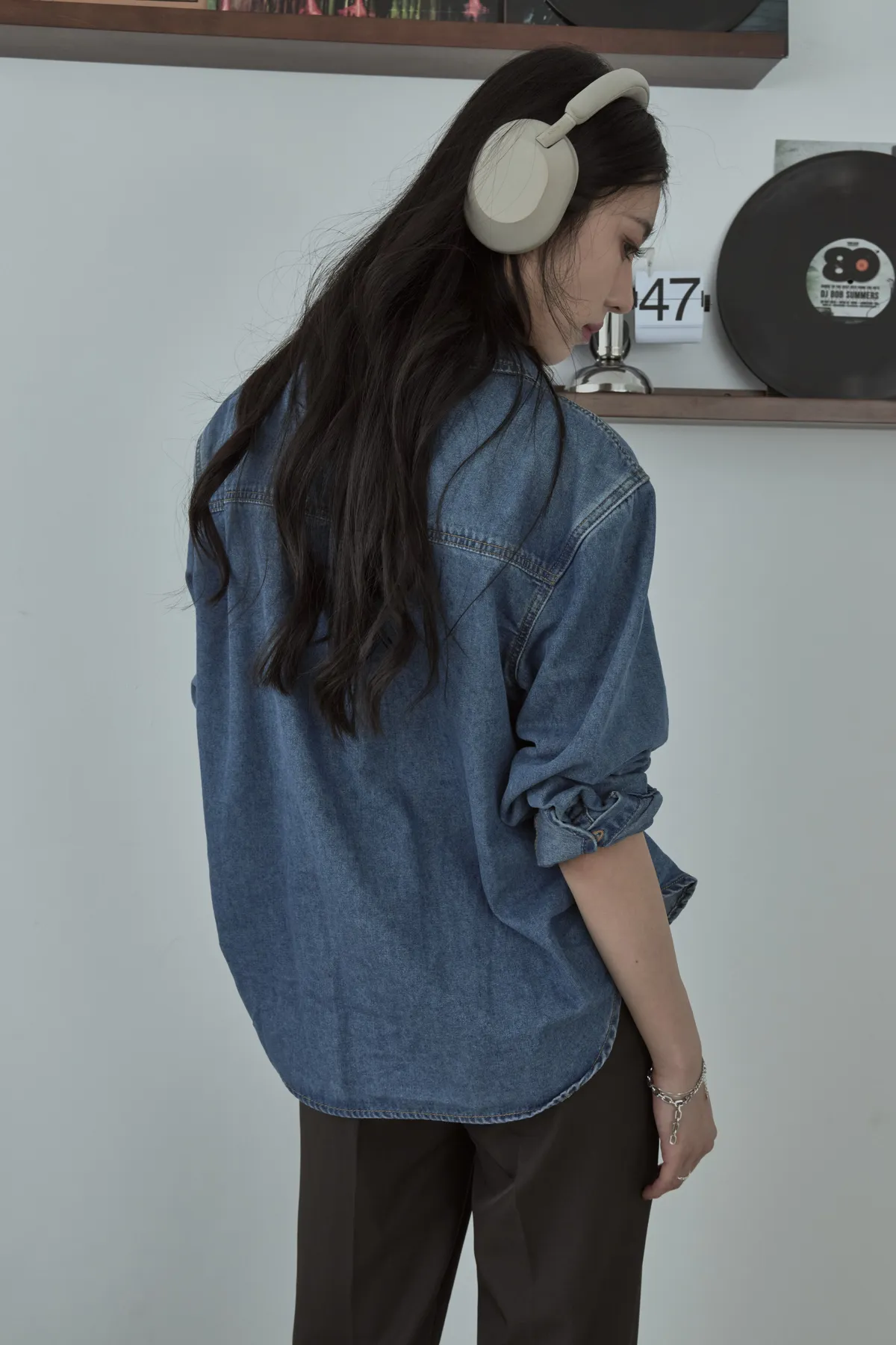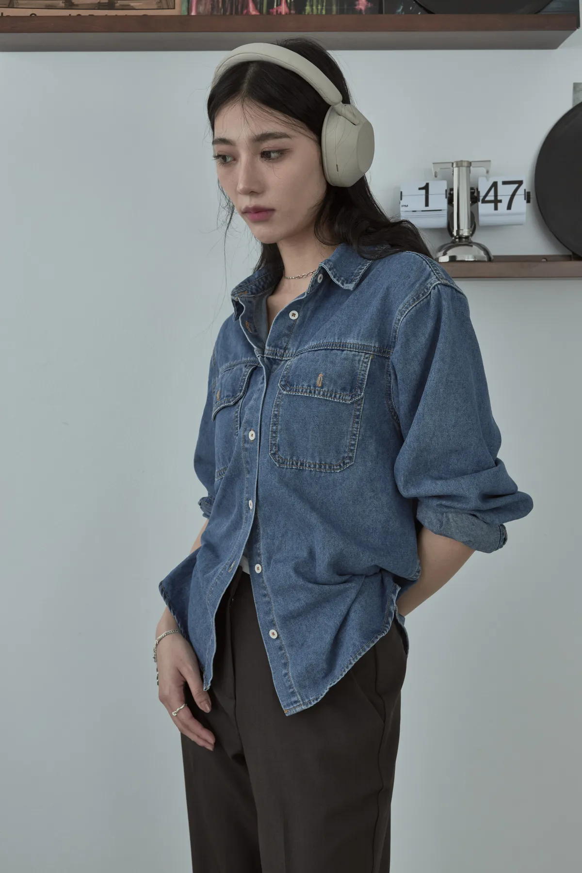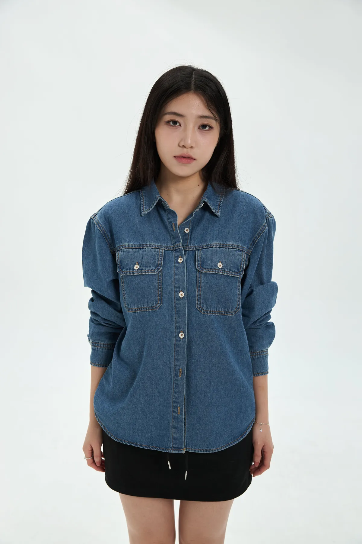 現貨!「BOGAMADE」知性女孩牛仔挺版襯衫