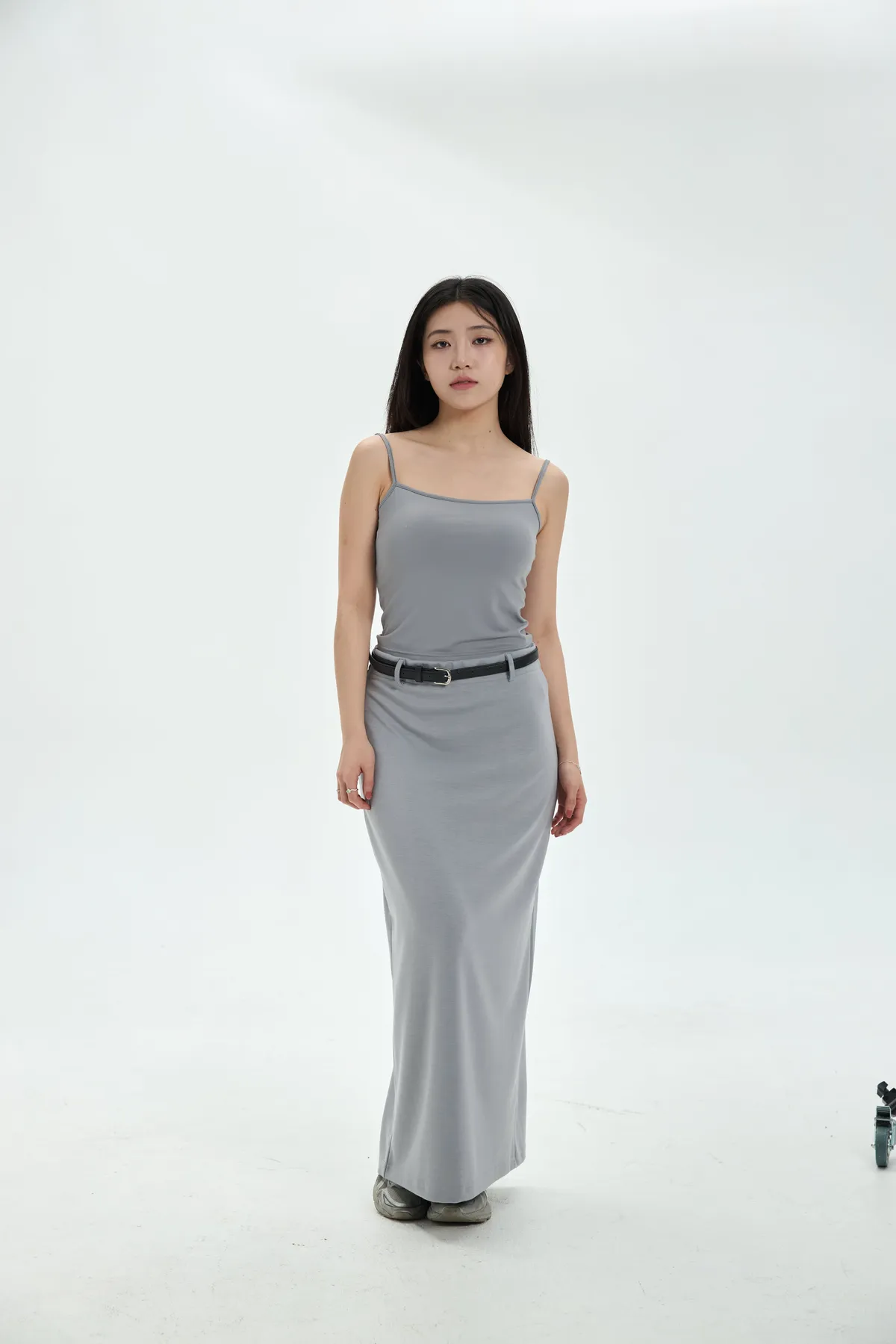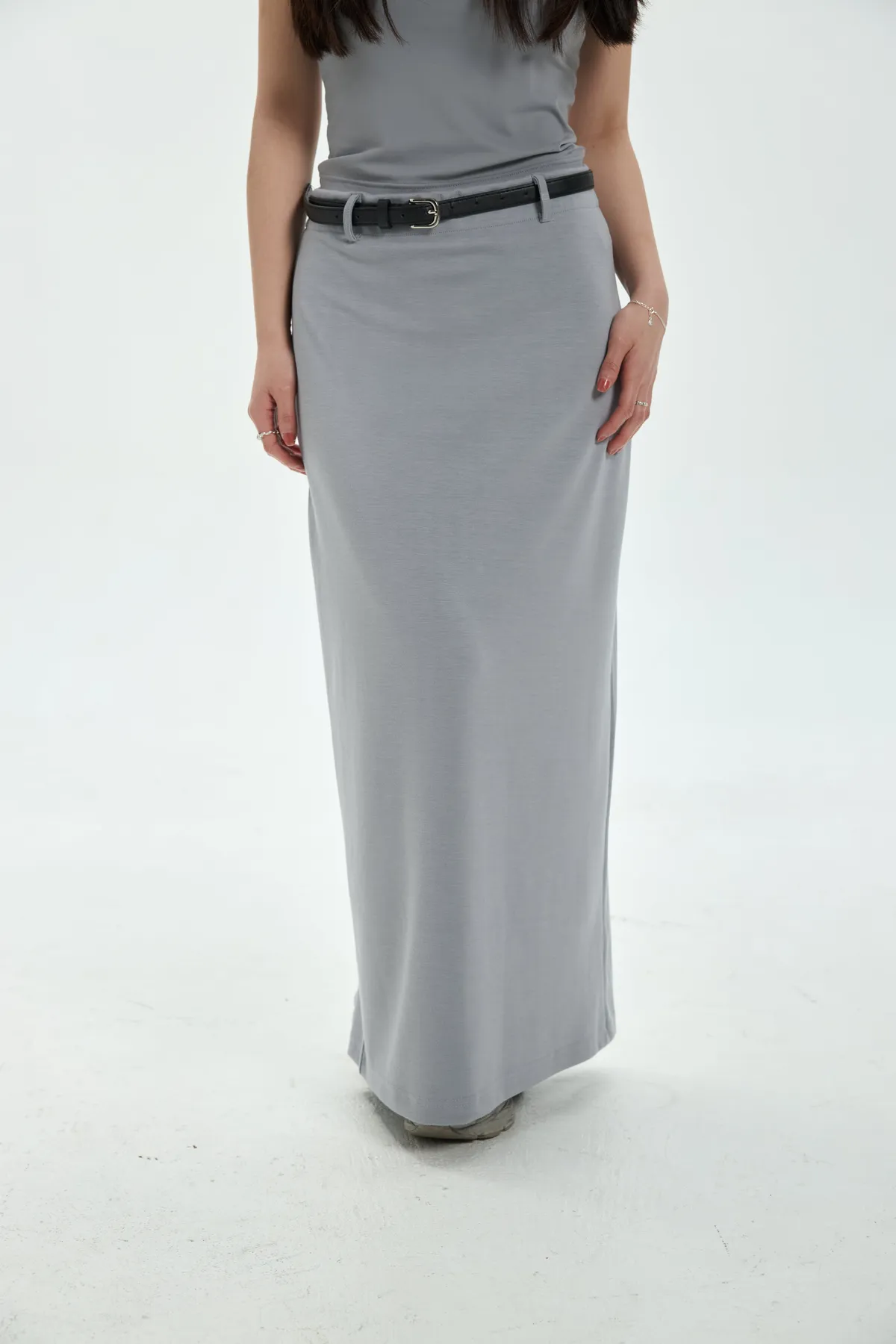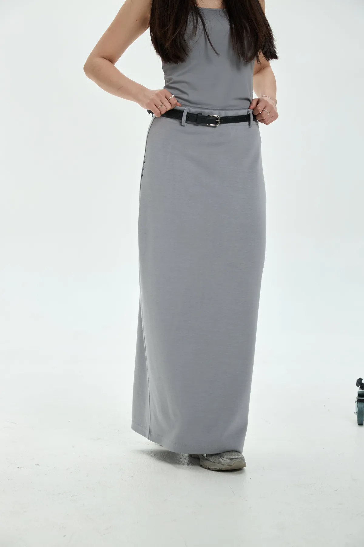 現貨!「BOGAMADE」直筒舒適棉感長裙.霧灰