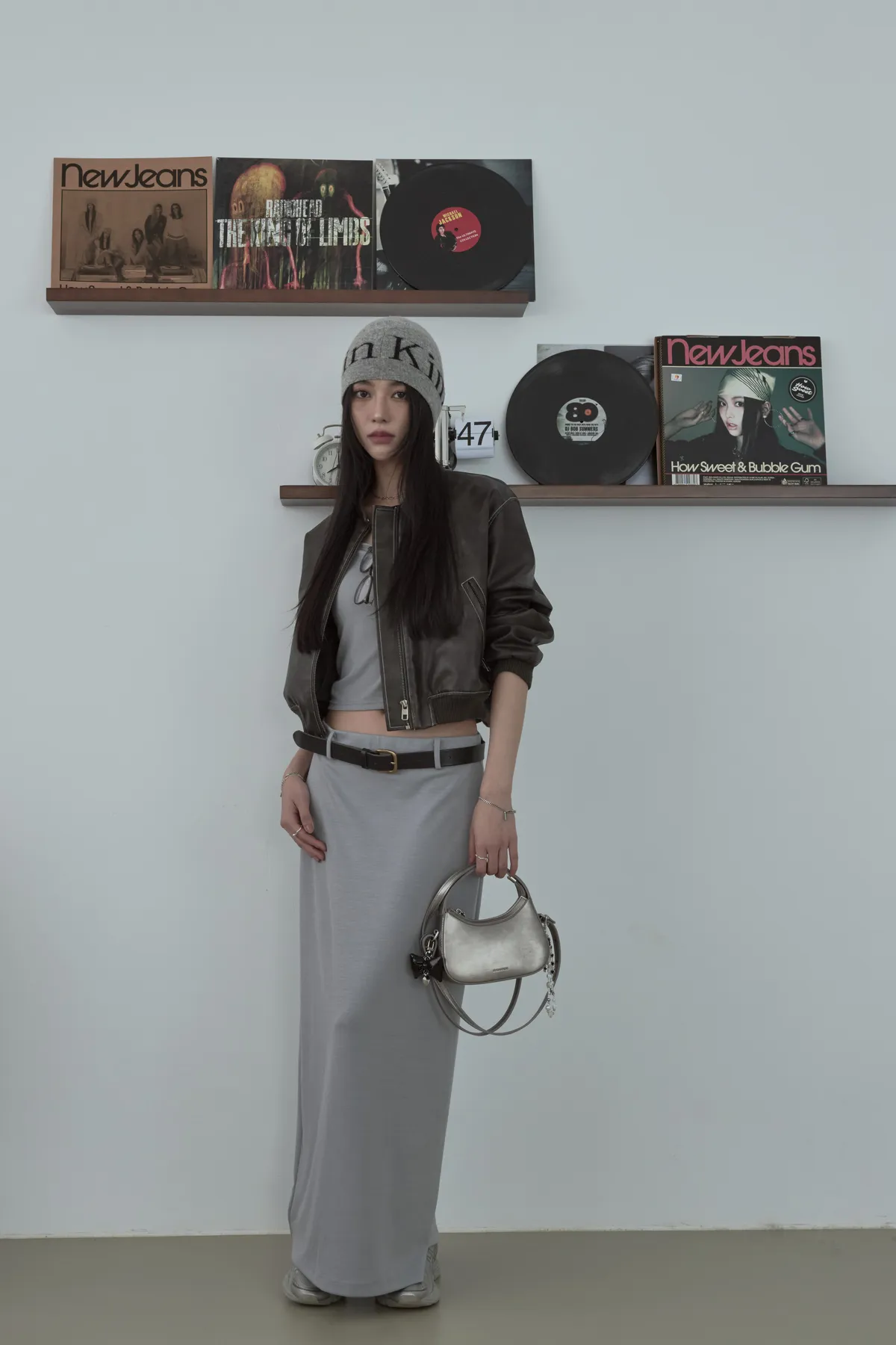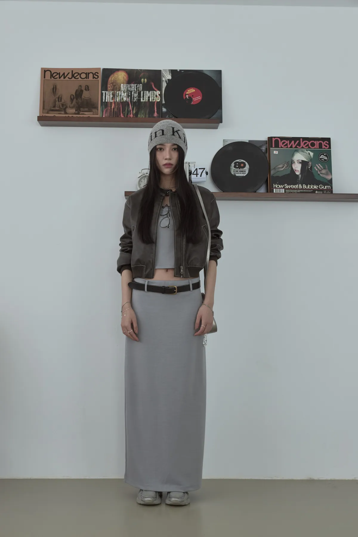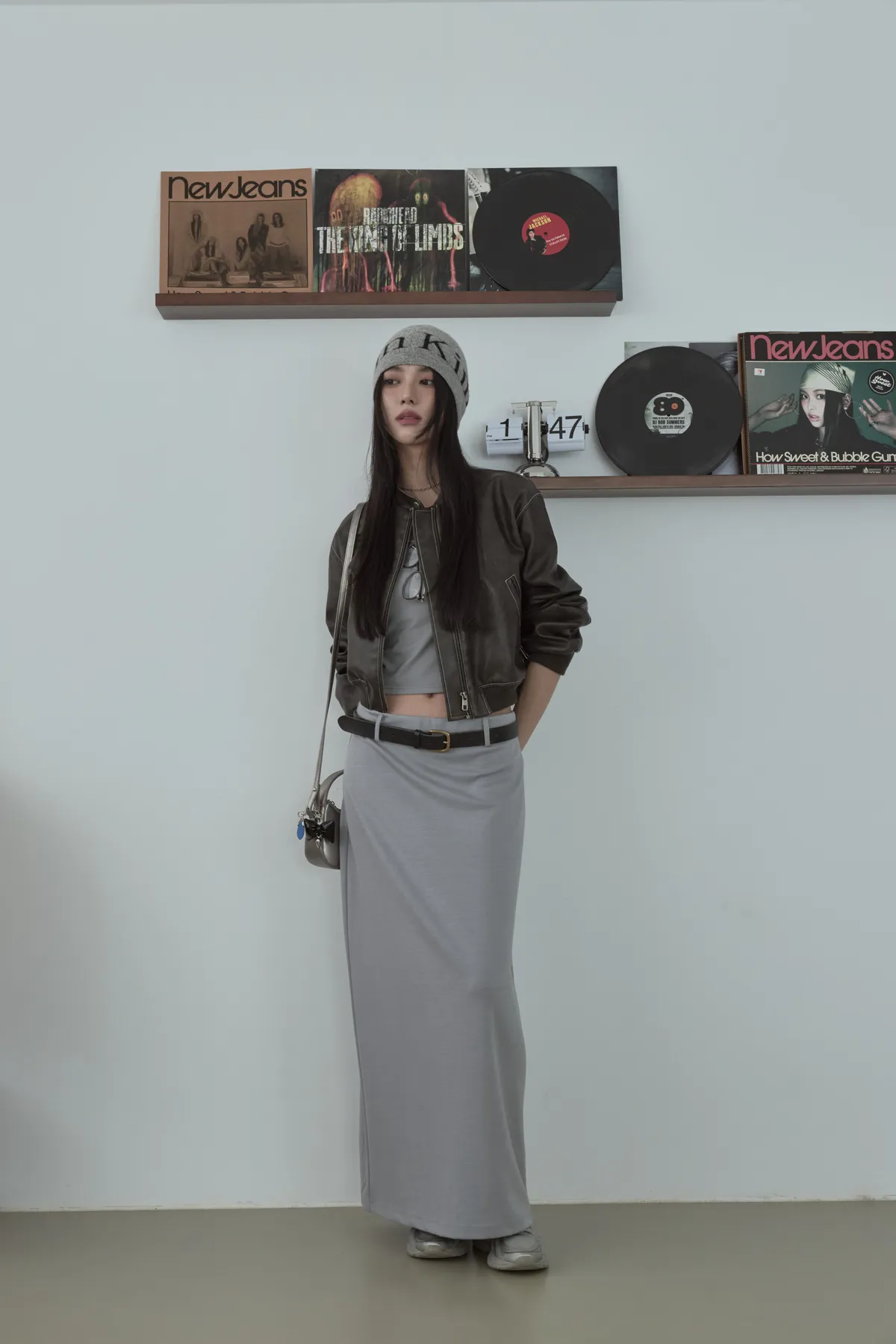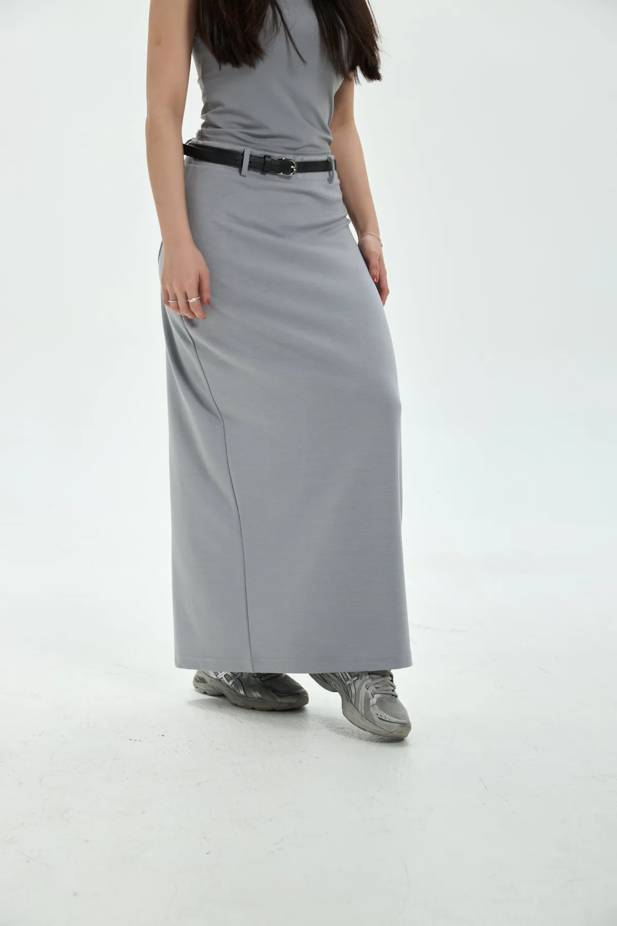 現貨!「BOGAMADE」直筒舒適棉感長裙.霧灰
