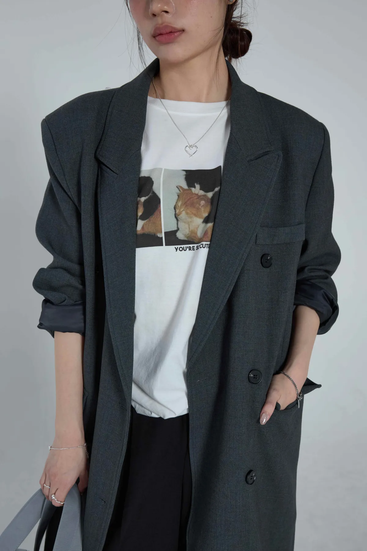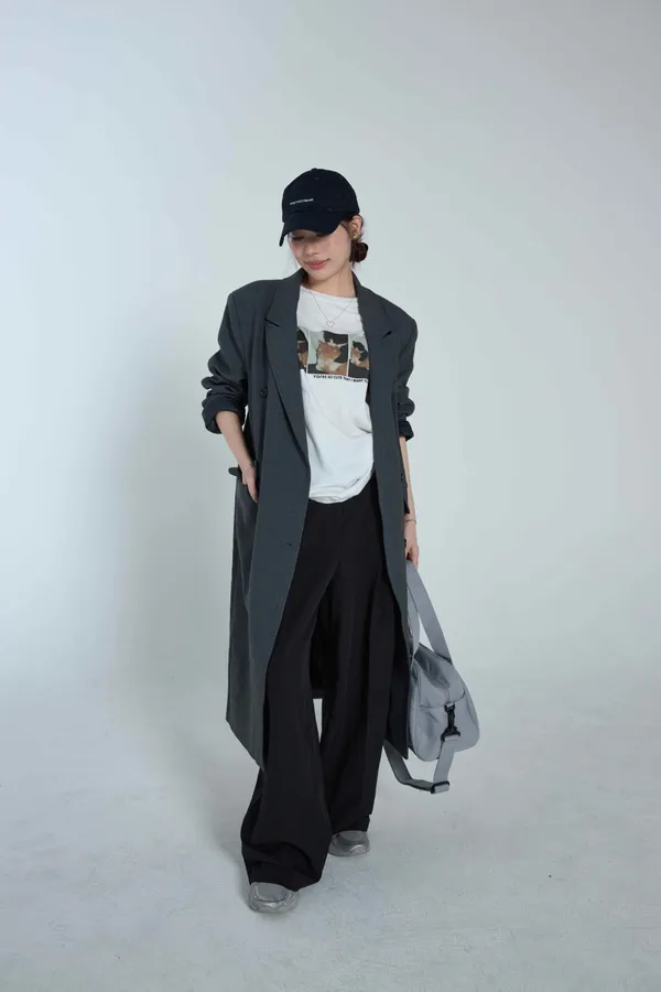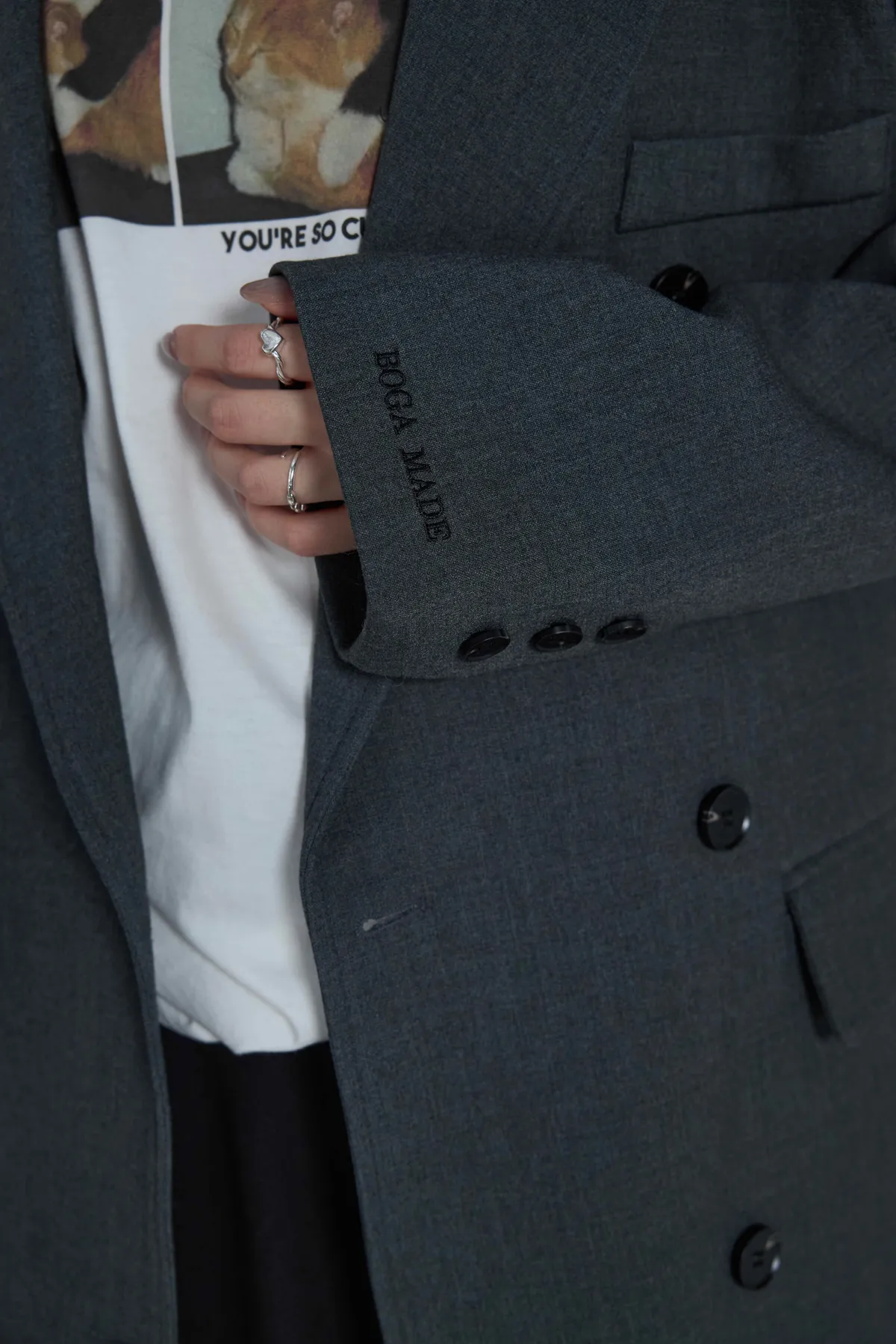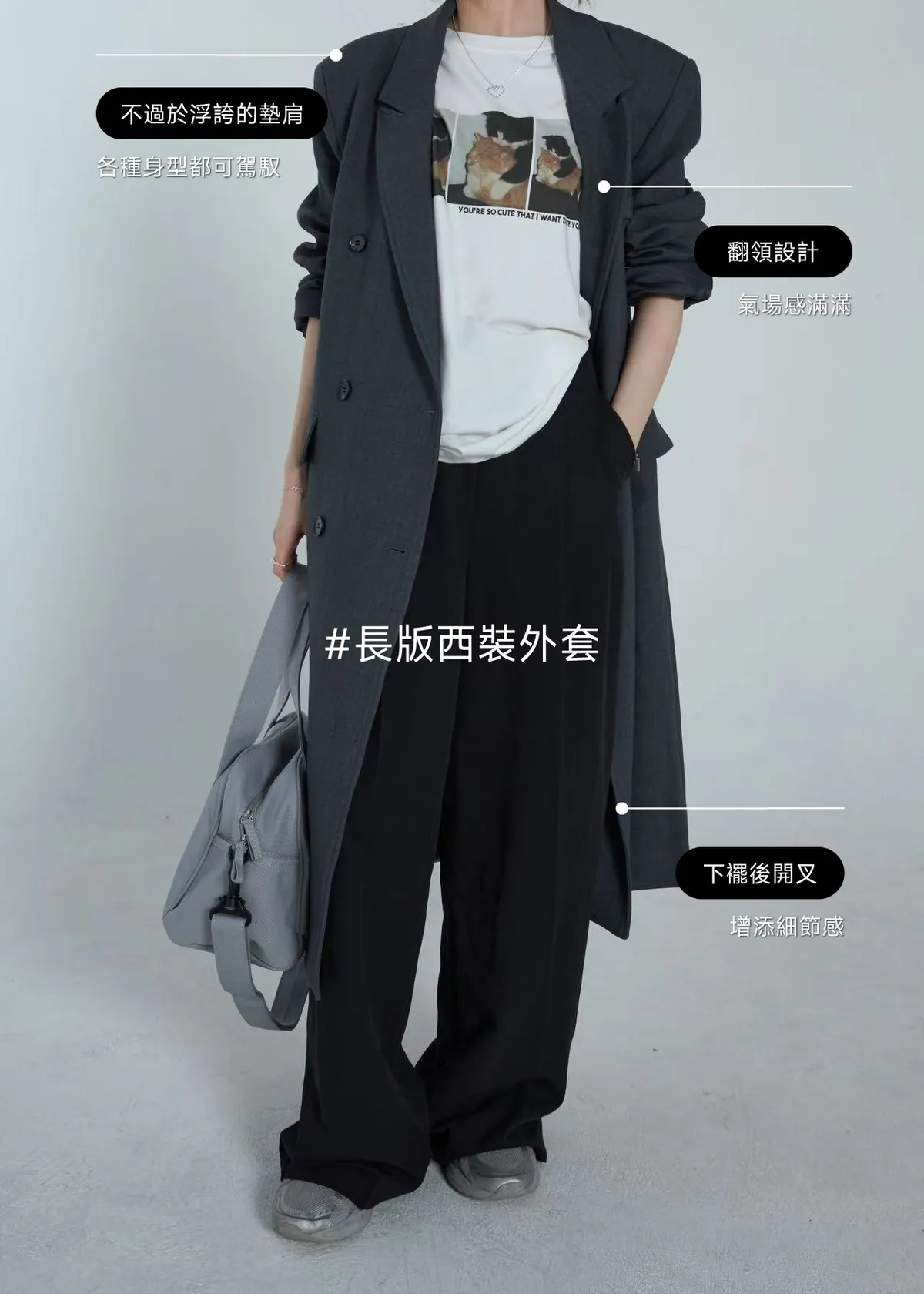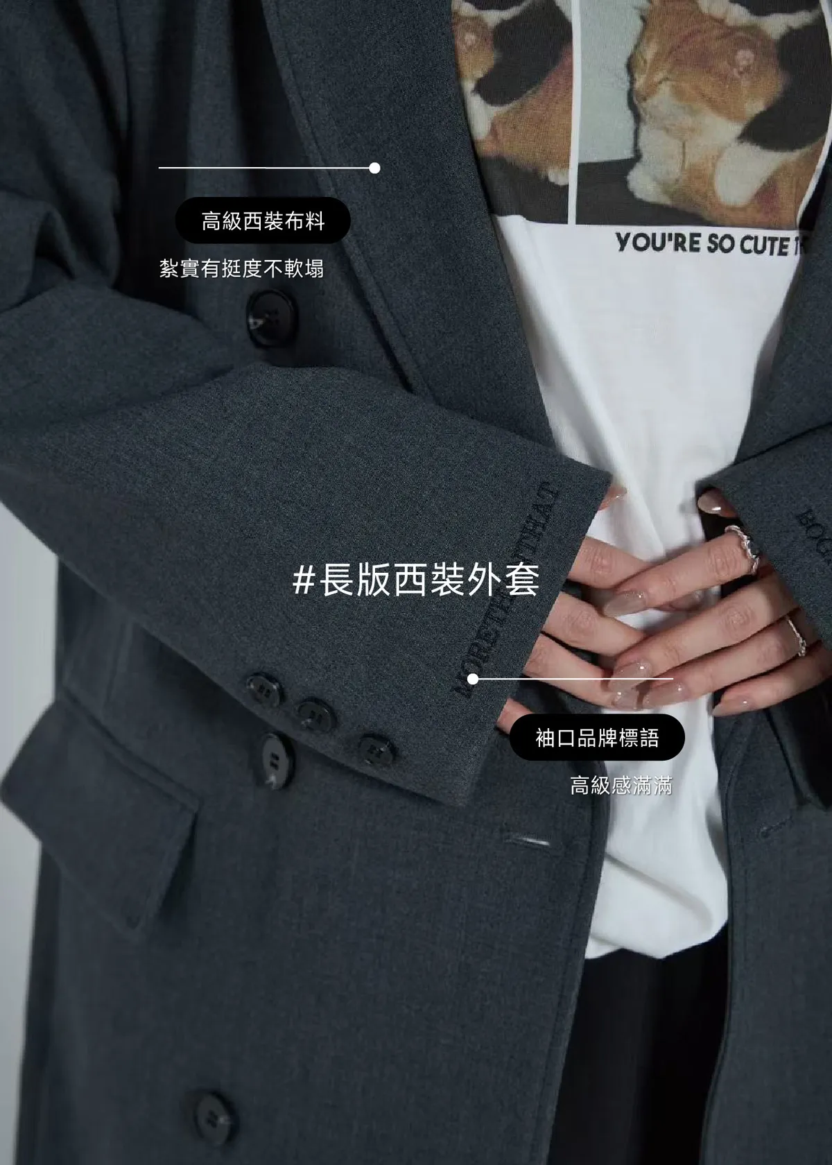 現貨!「BOGAMADE」俐落感長版西裝外套.深灰