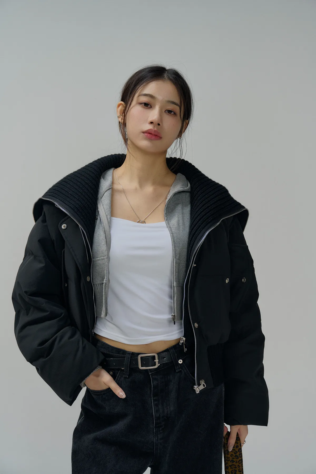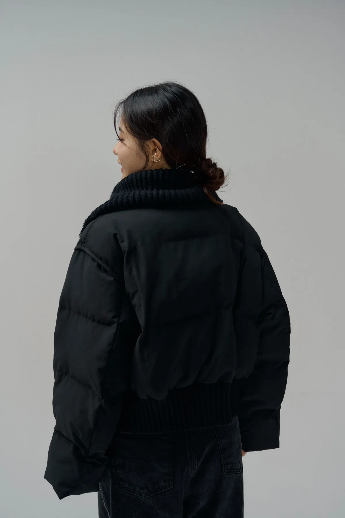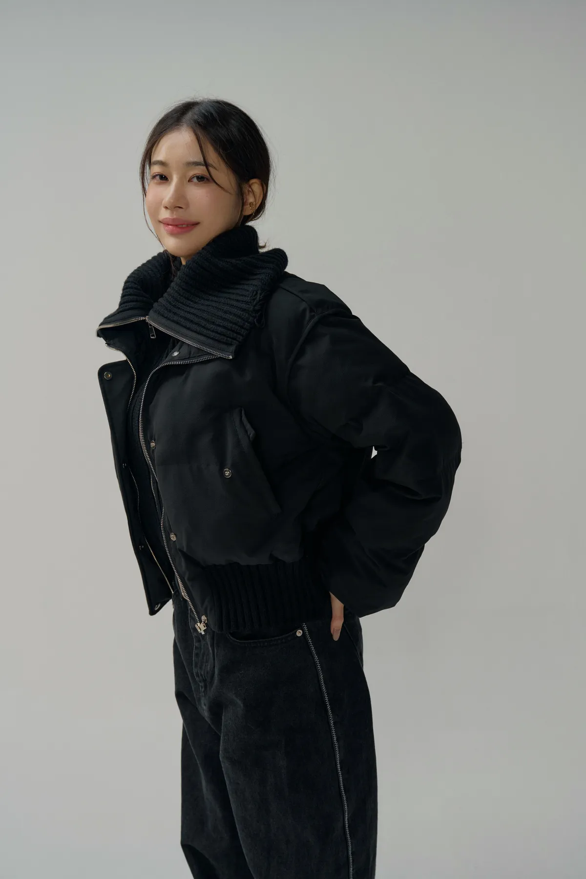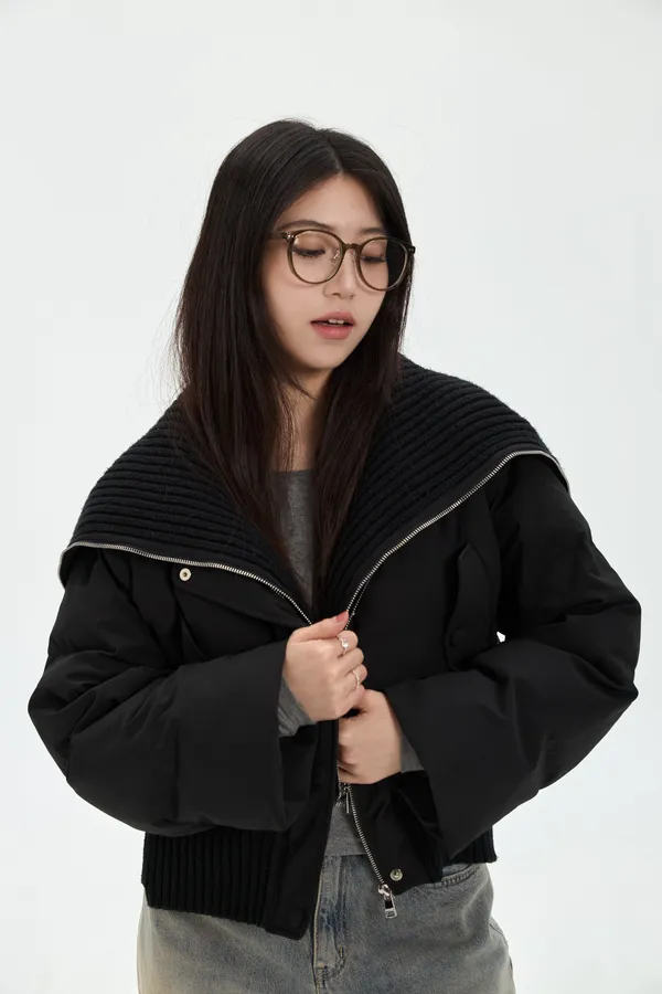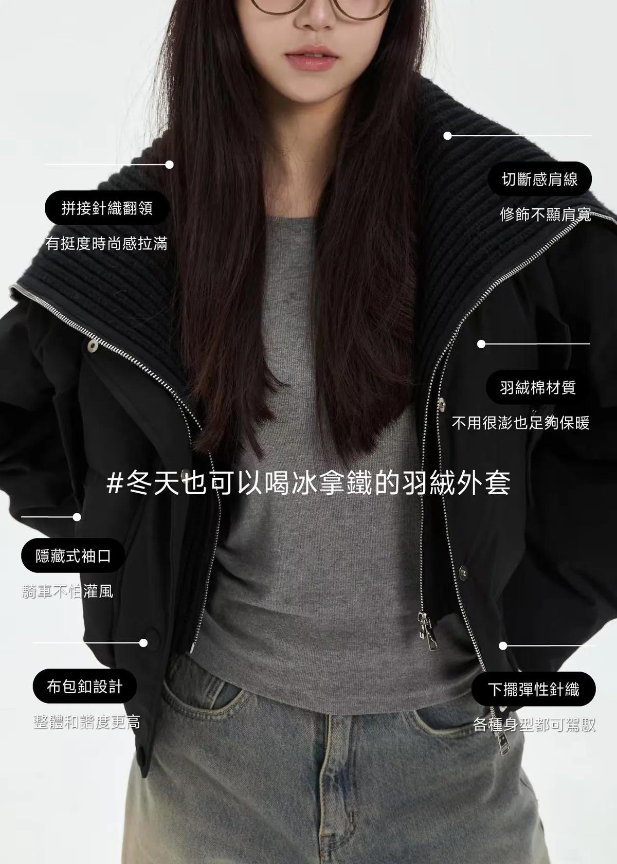 現貨!「Bogamade」首波針織翻領羽絨外套.黑