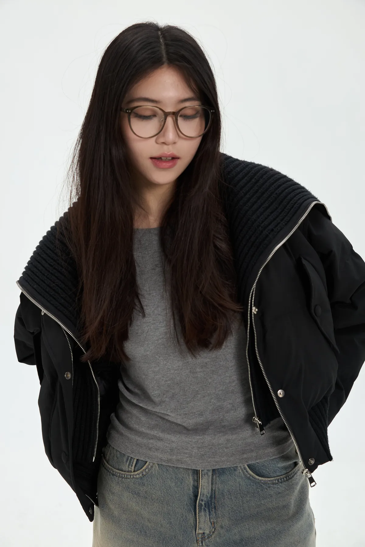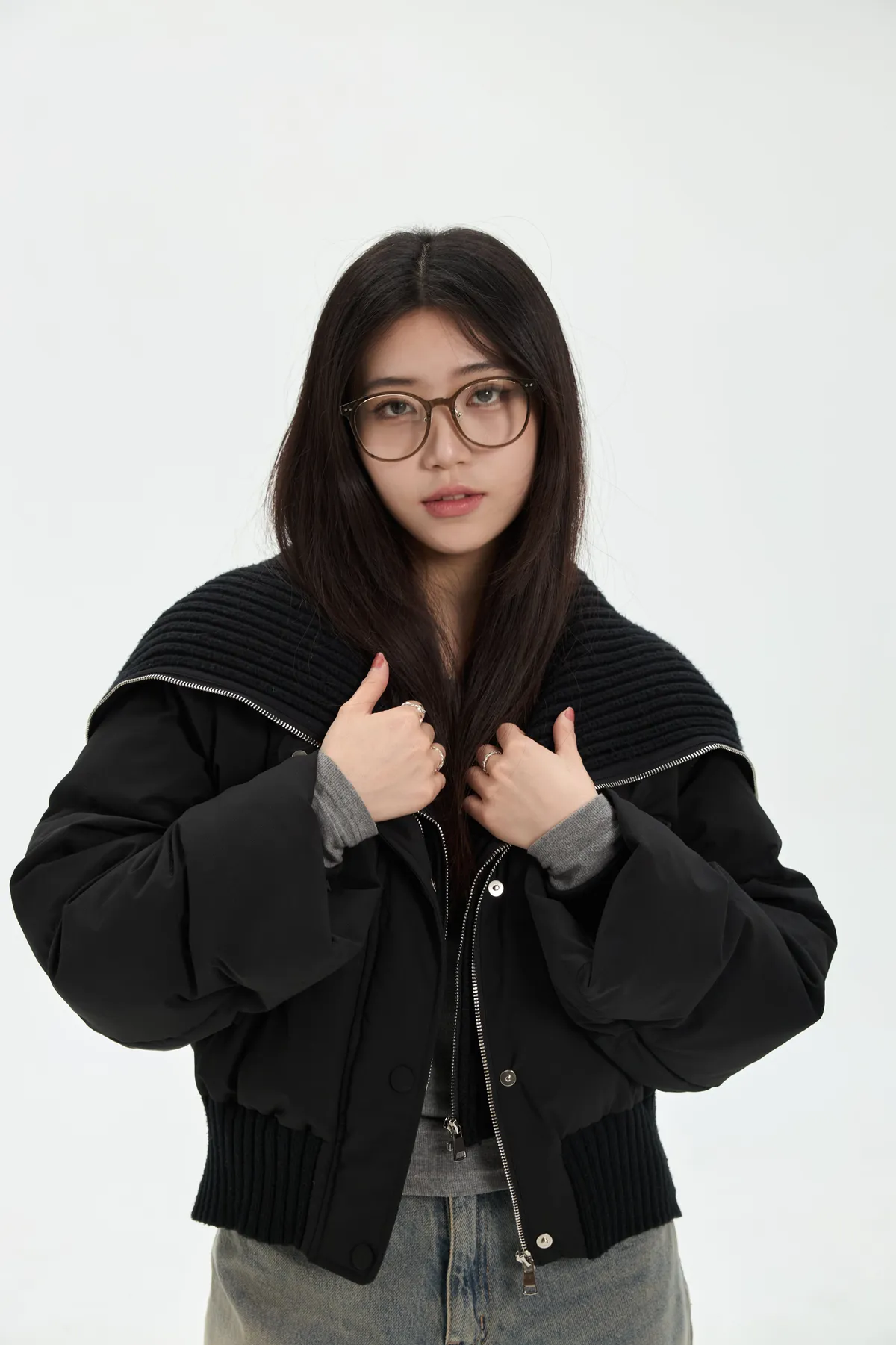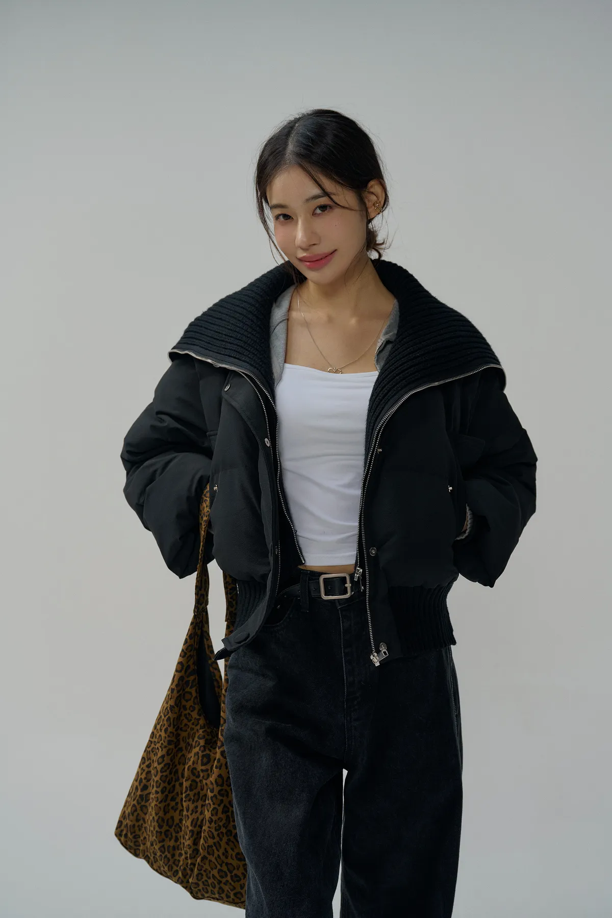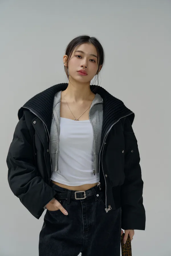 現貨!「Bogamade」首波針織翻領羽絨外套.黑