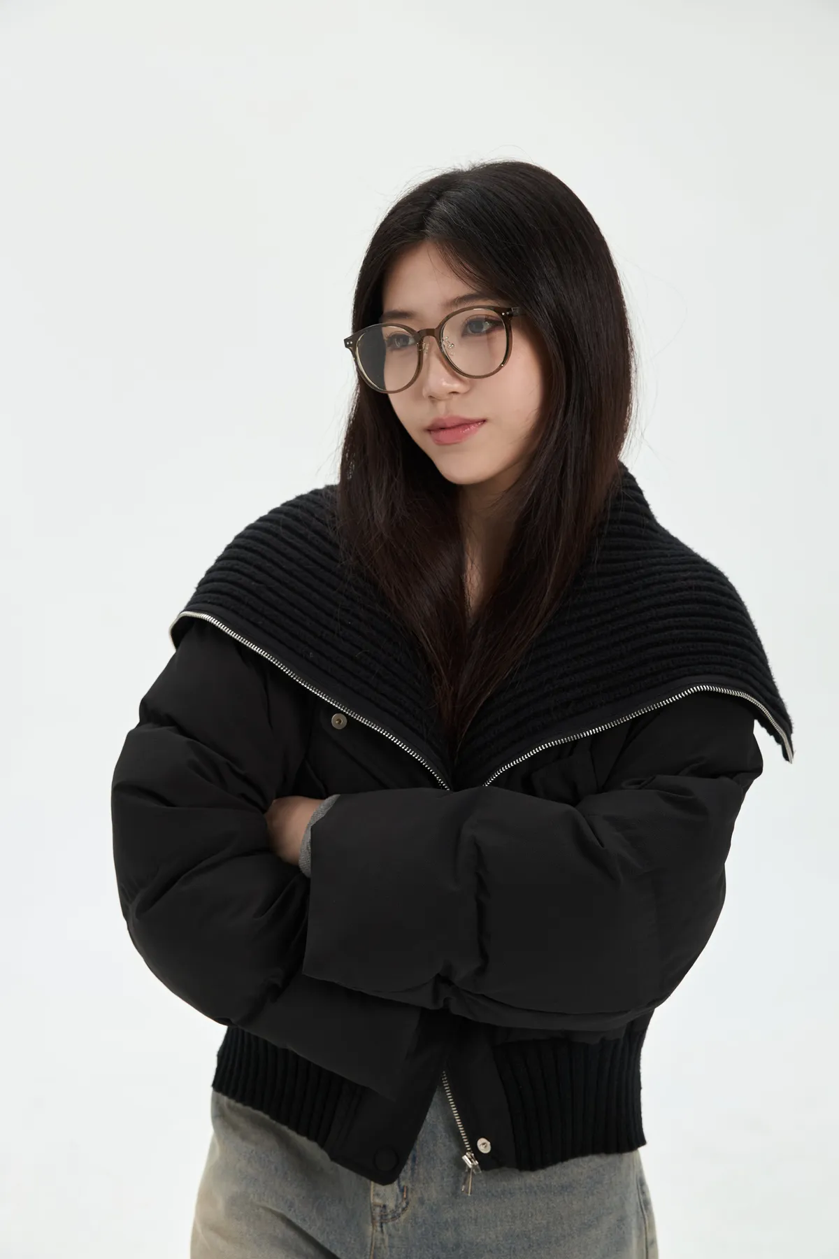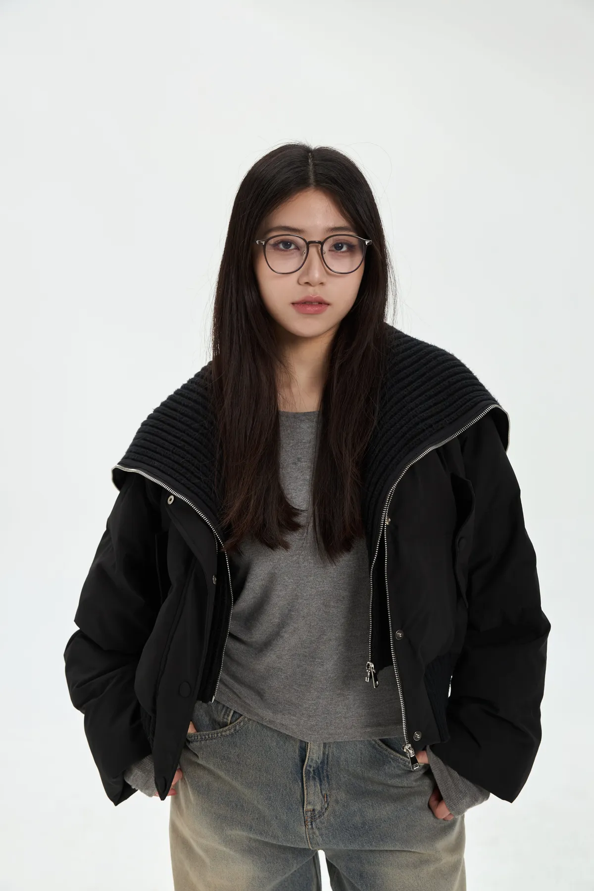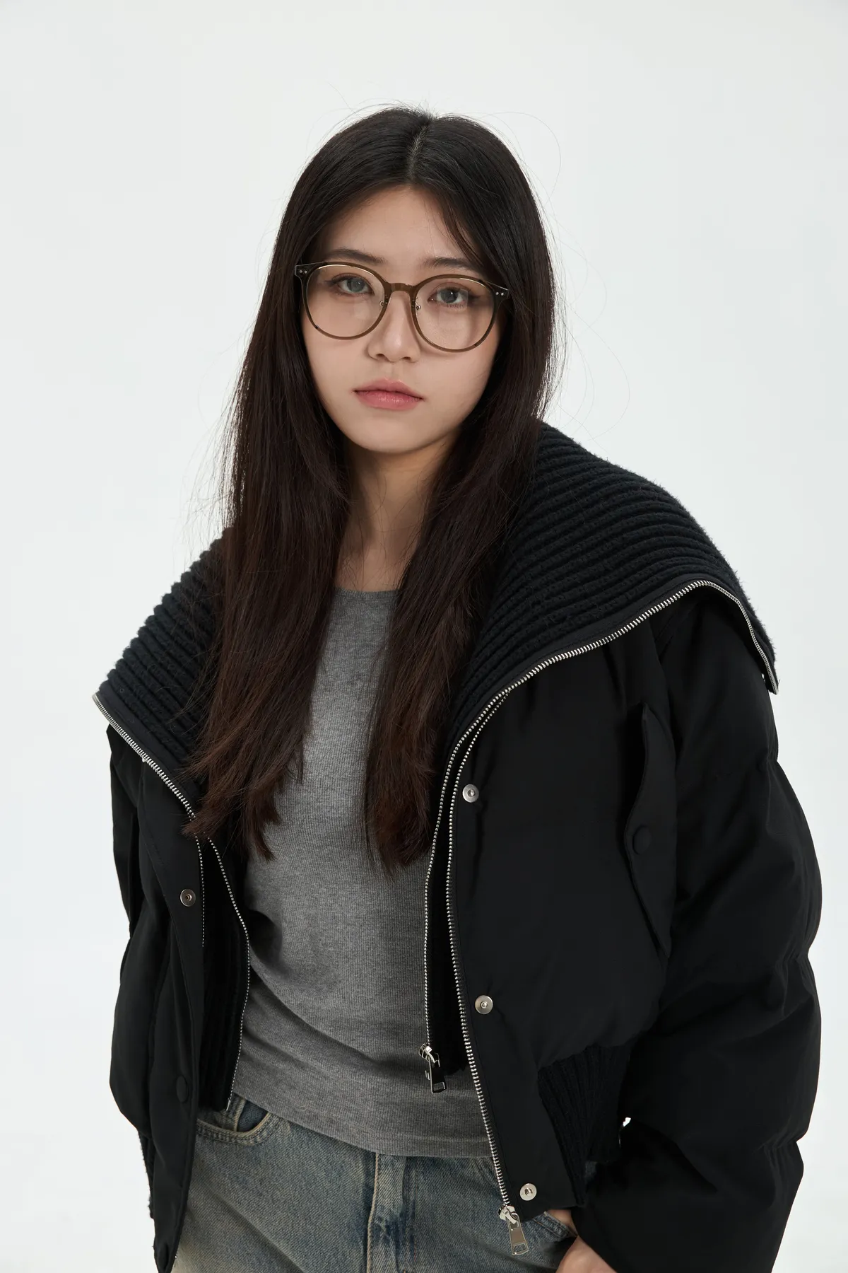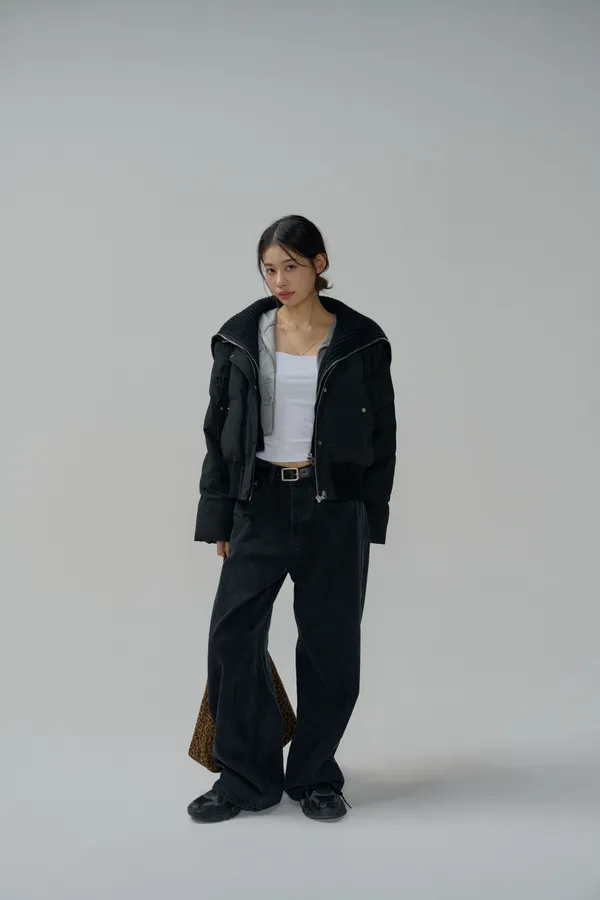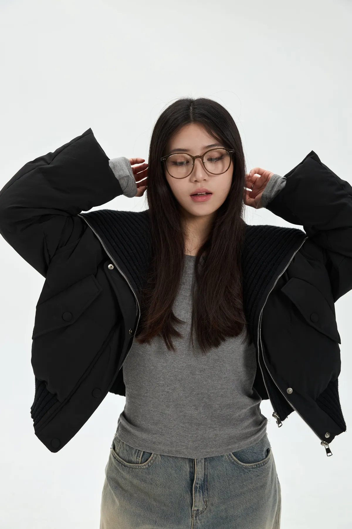 現貨!「Bogamade」首波針織翻領羽絨外套.黑