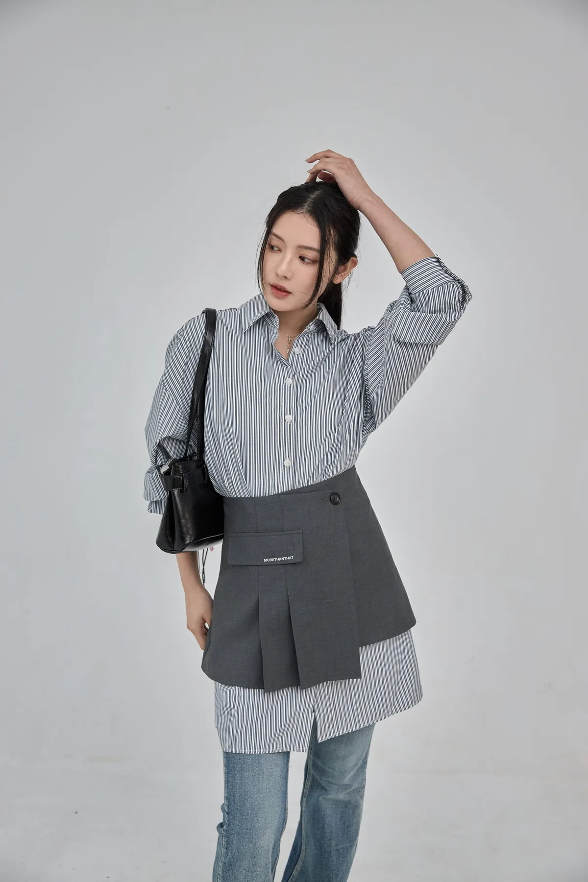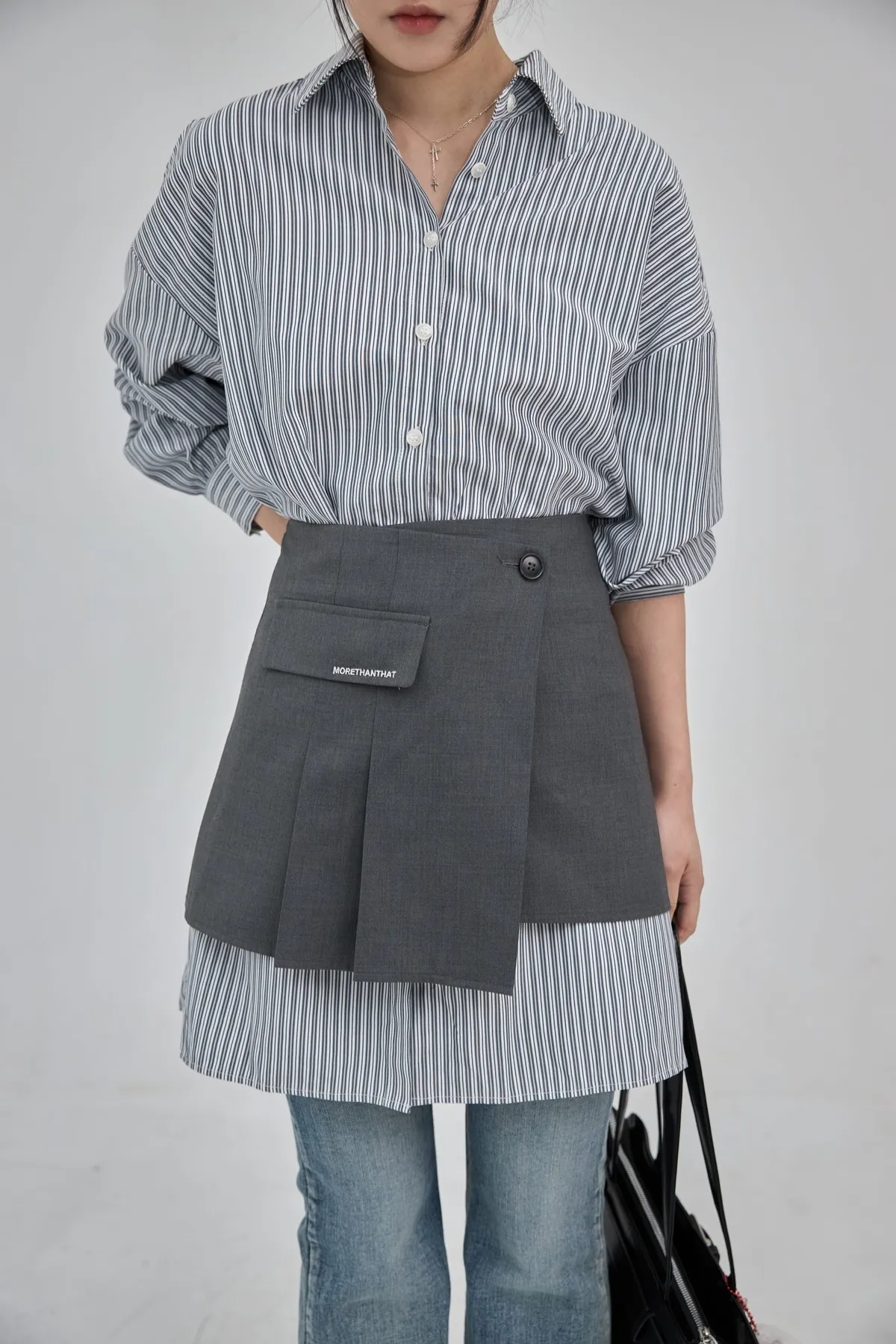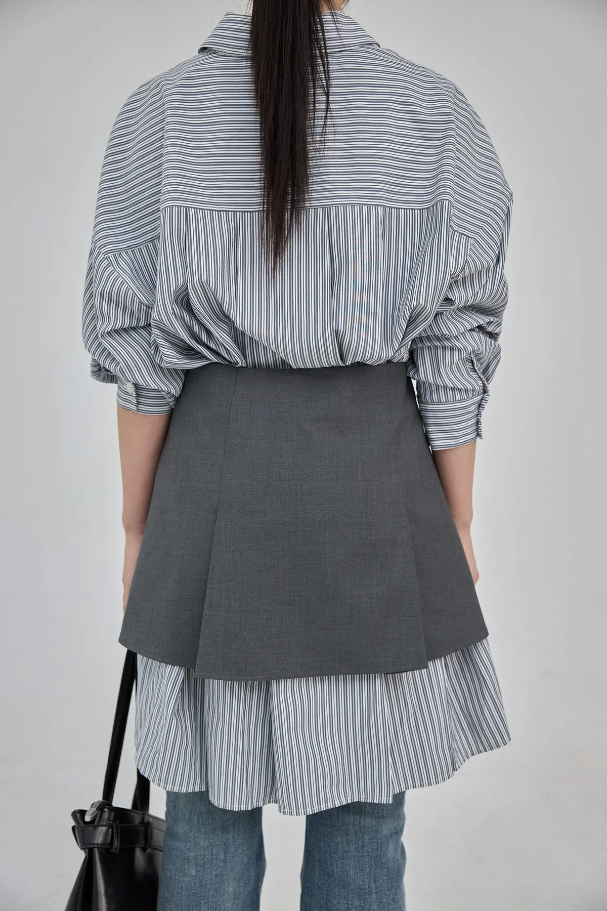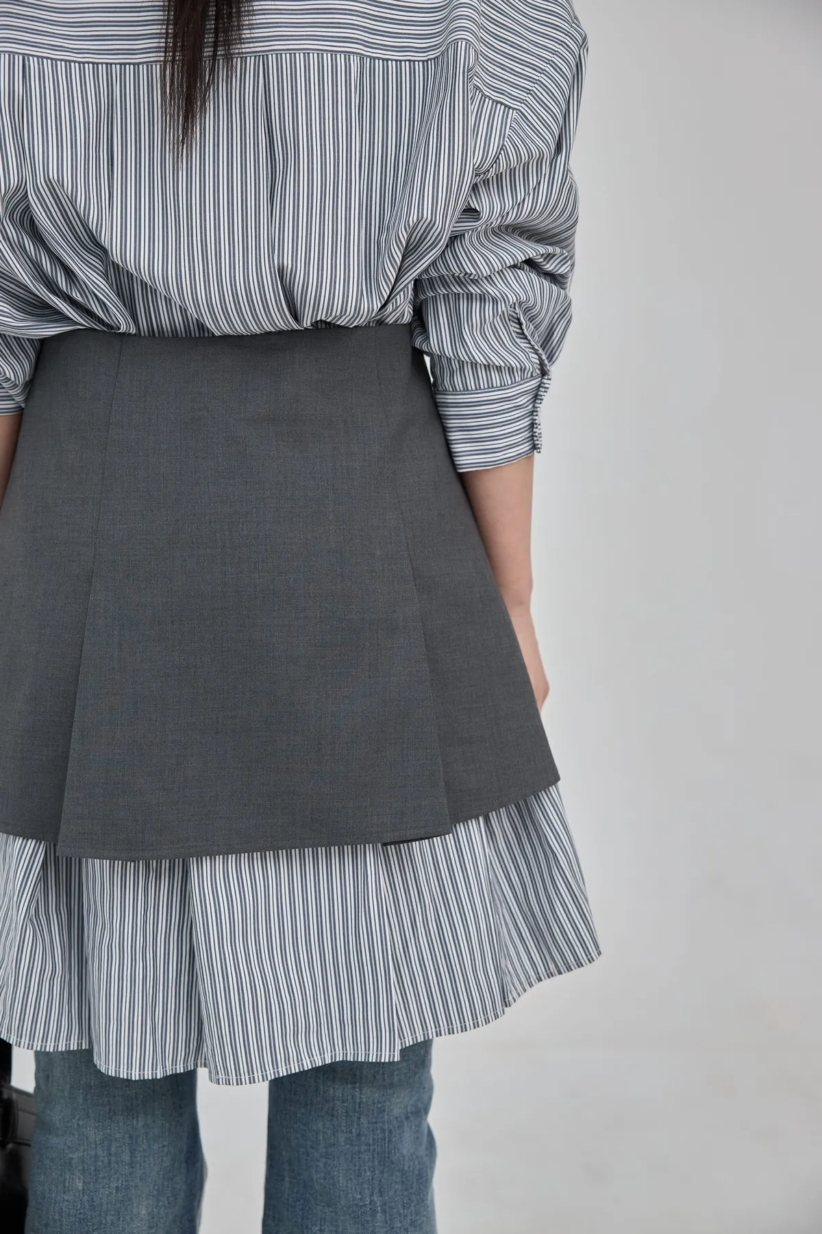 這套長版條文襯衫 + 襯裙,讓你不用費心思考搭配,輕輕鬆鬆就能打造有層次的時髦感。