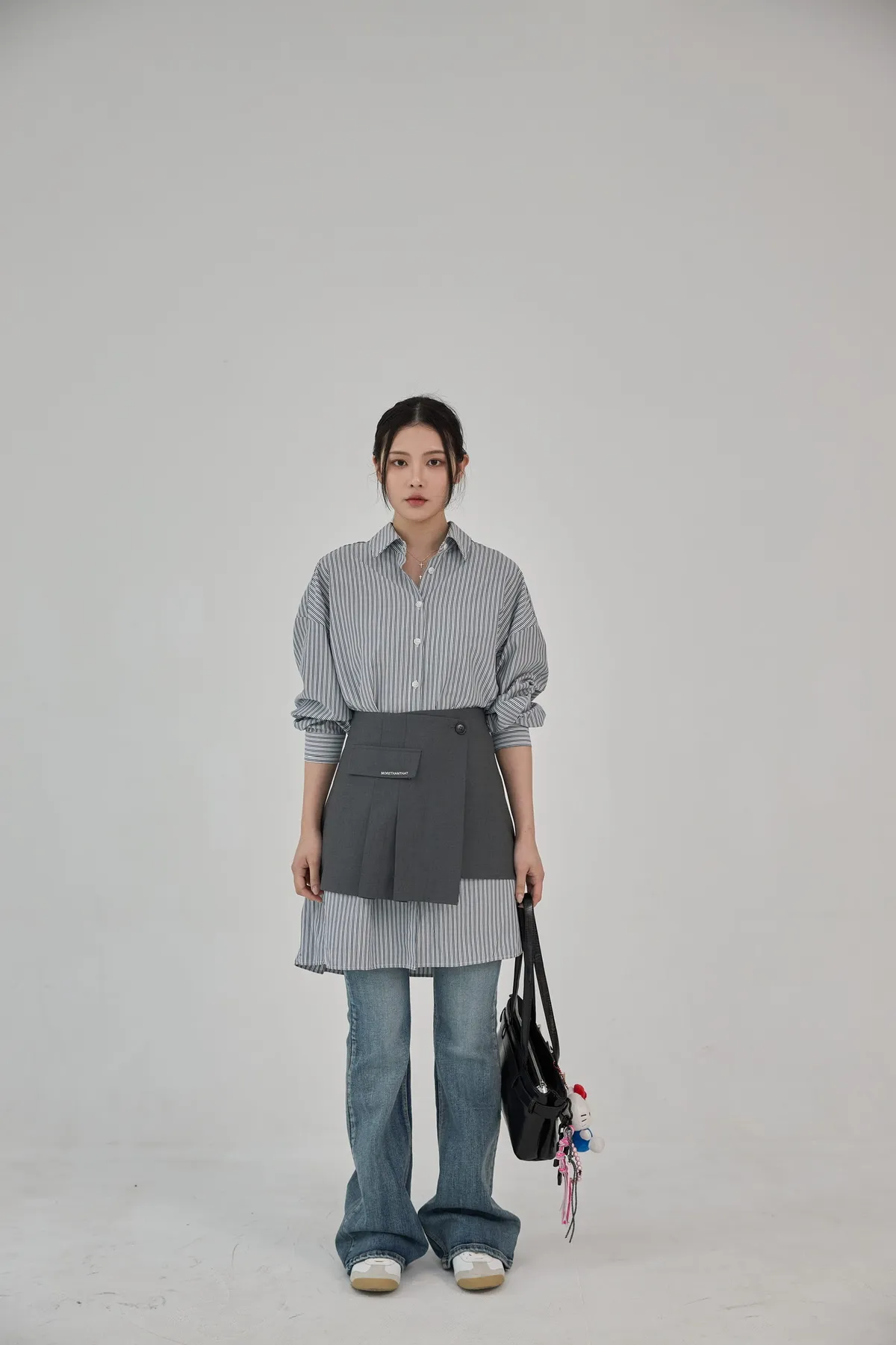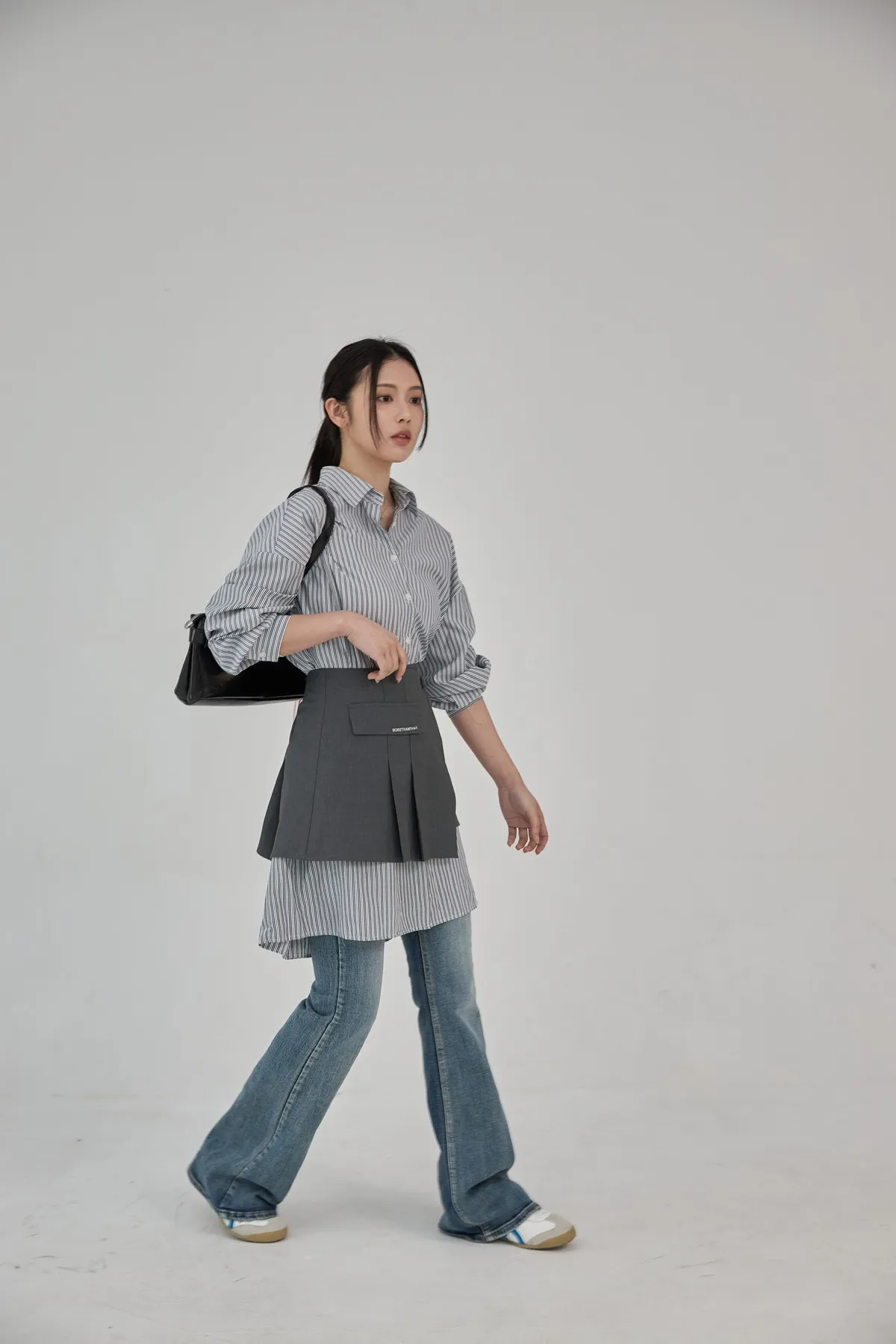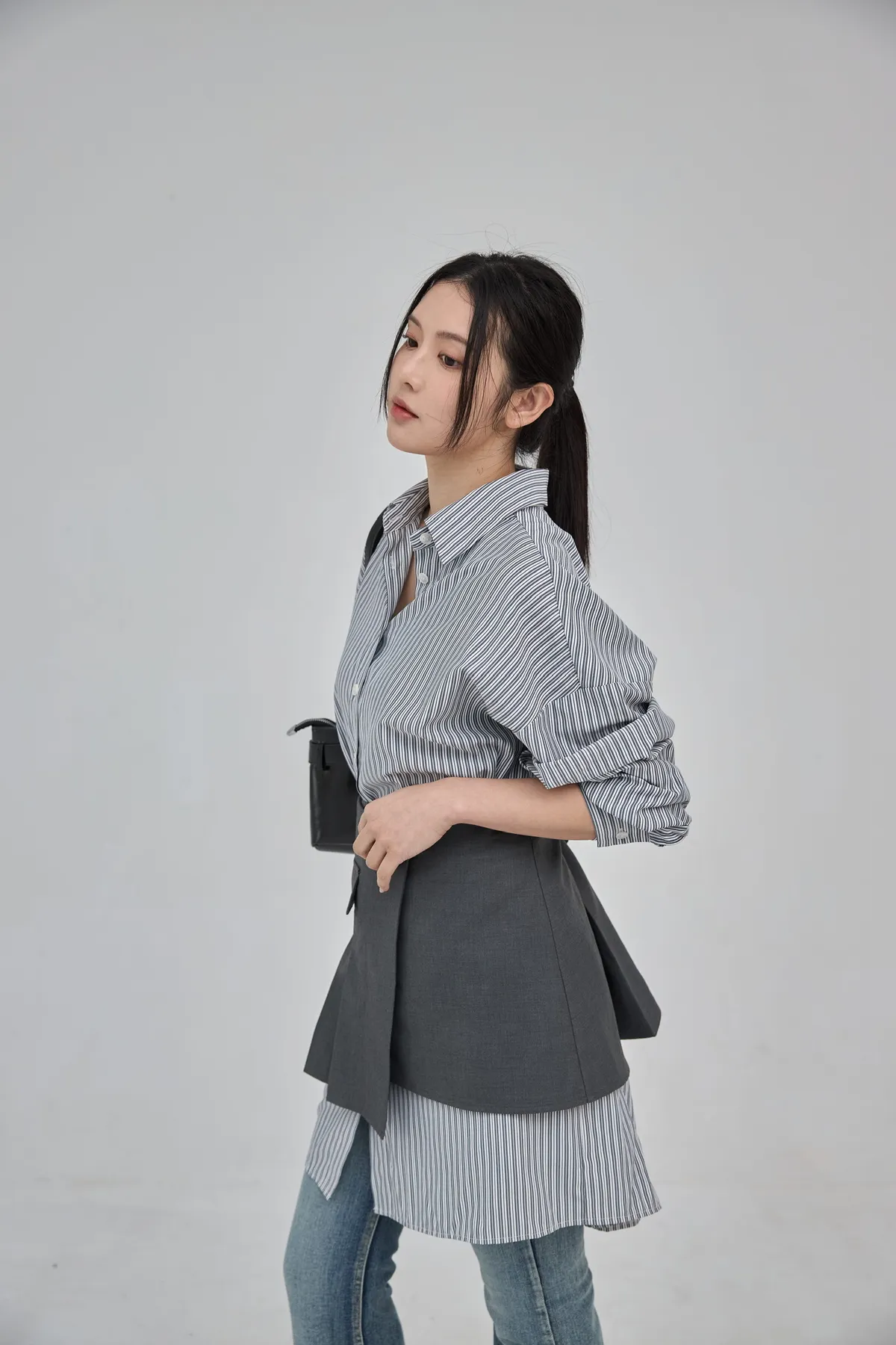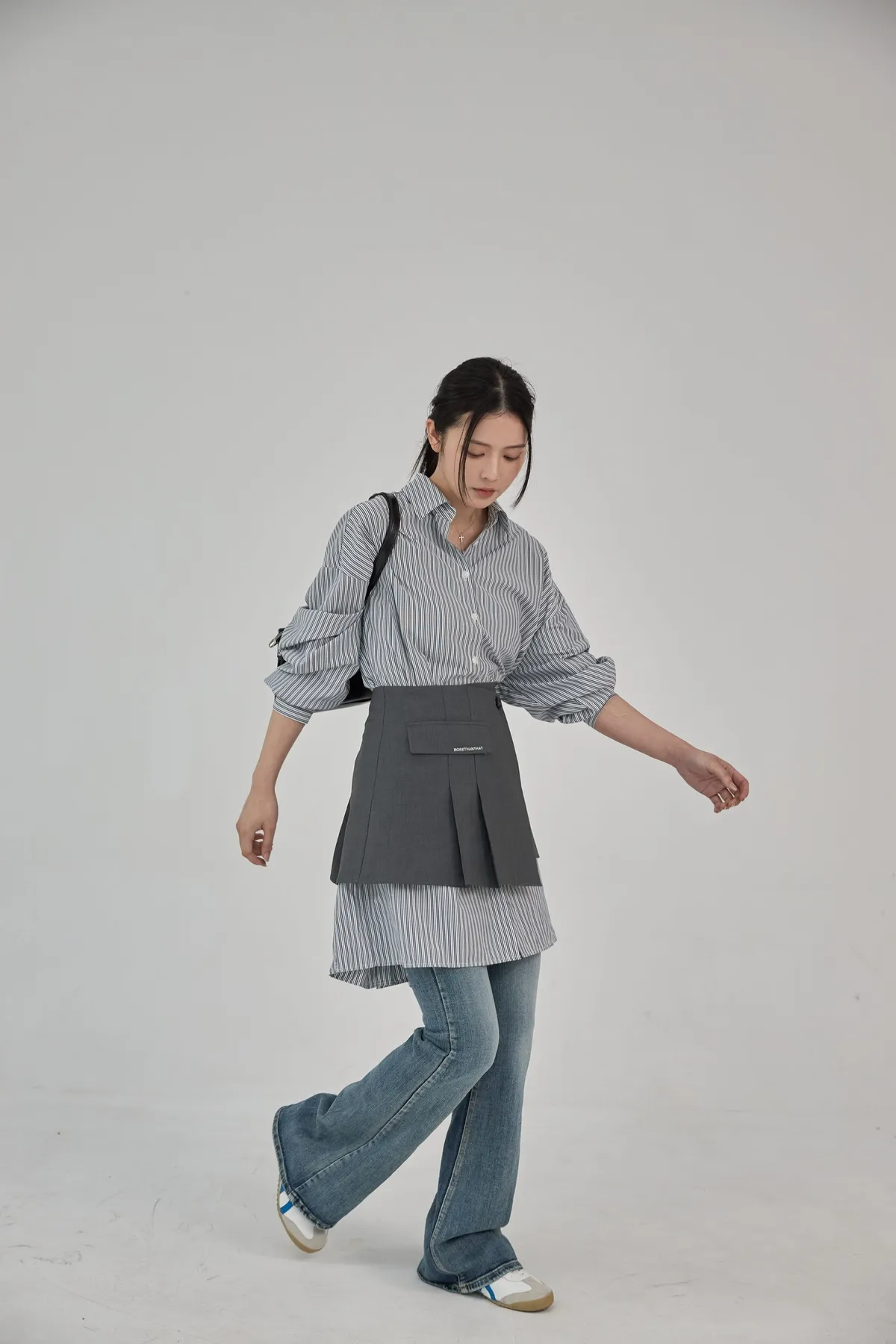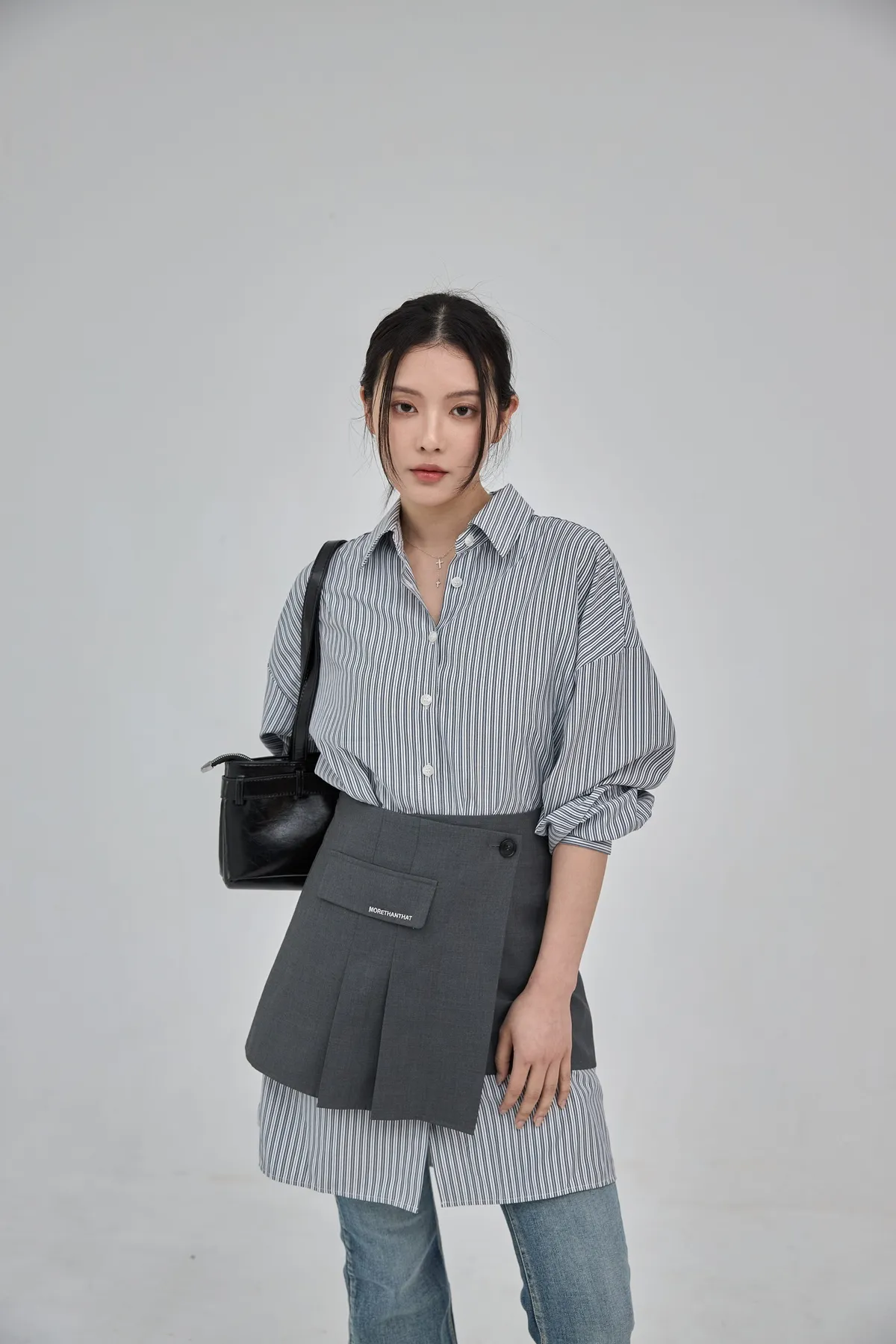 這套長版條文襯衫 + 襯裙,讓你不用費心思考搭配,輕輕鬆鬆就能打造有層次的時髦感。