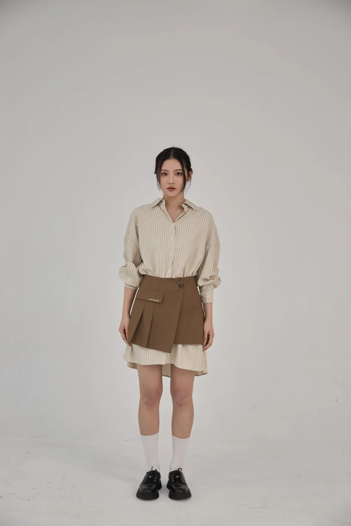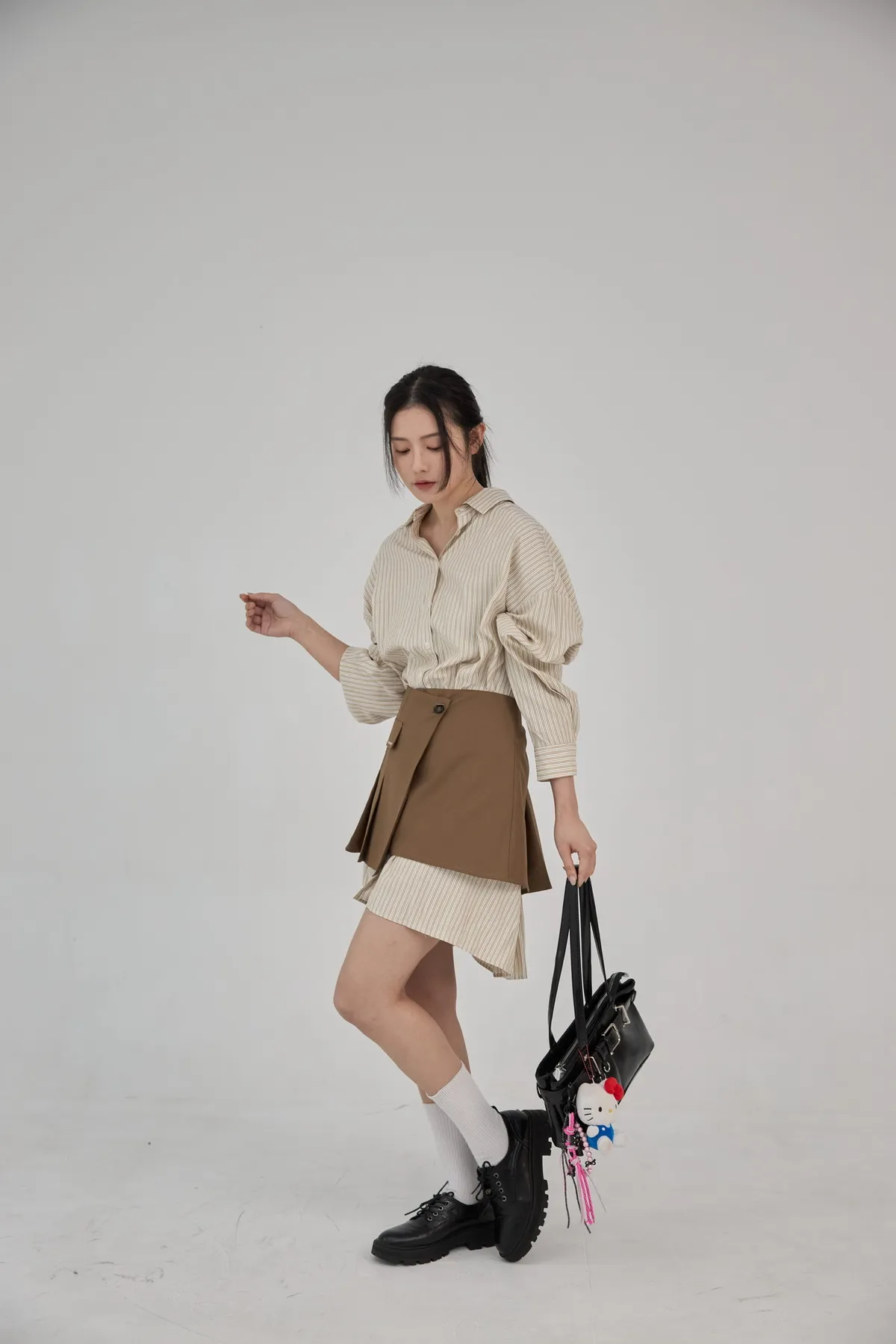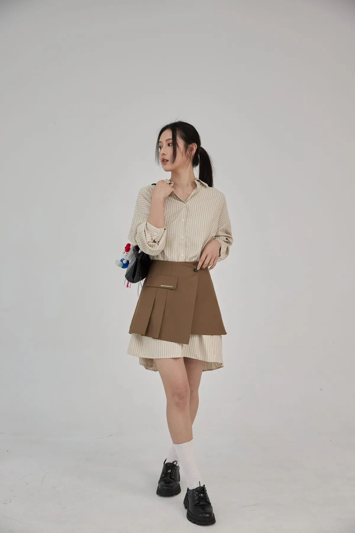 這套長版條文襯衫 + 襯裙,讓你不用費心思考搭配,輕輕鬆鬆就能打造有層次的時髦感。