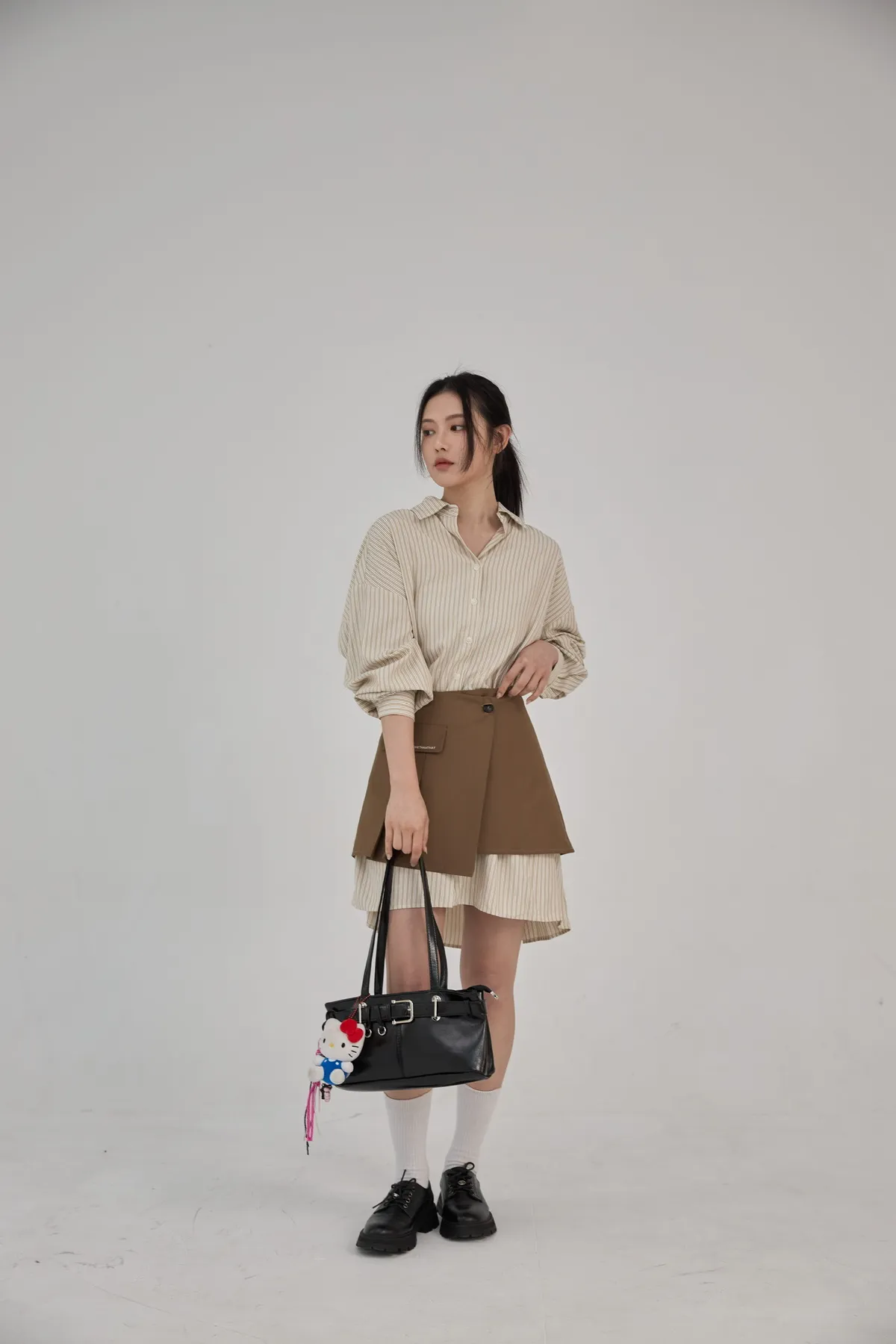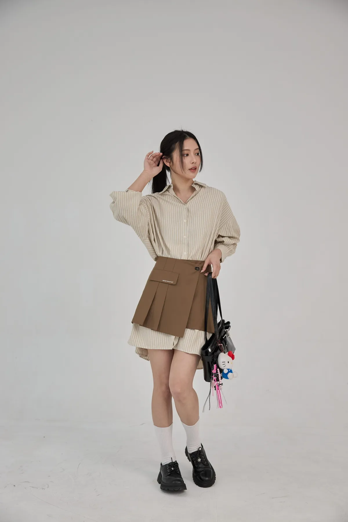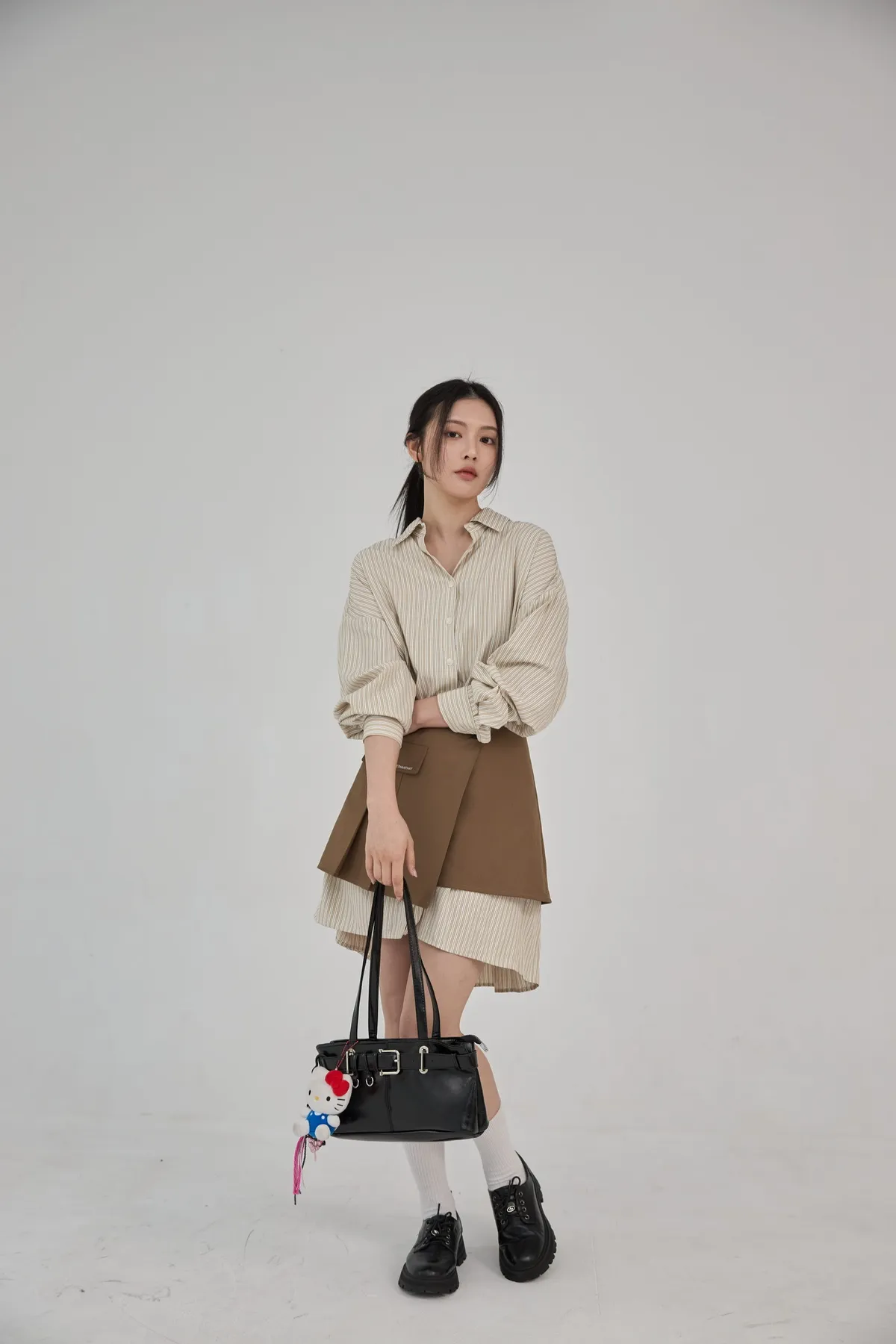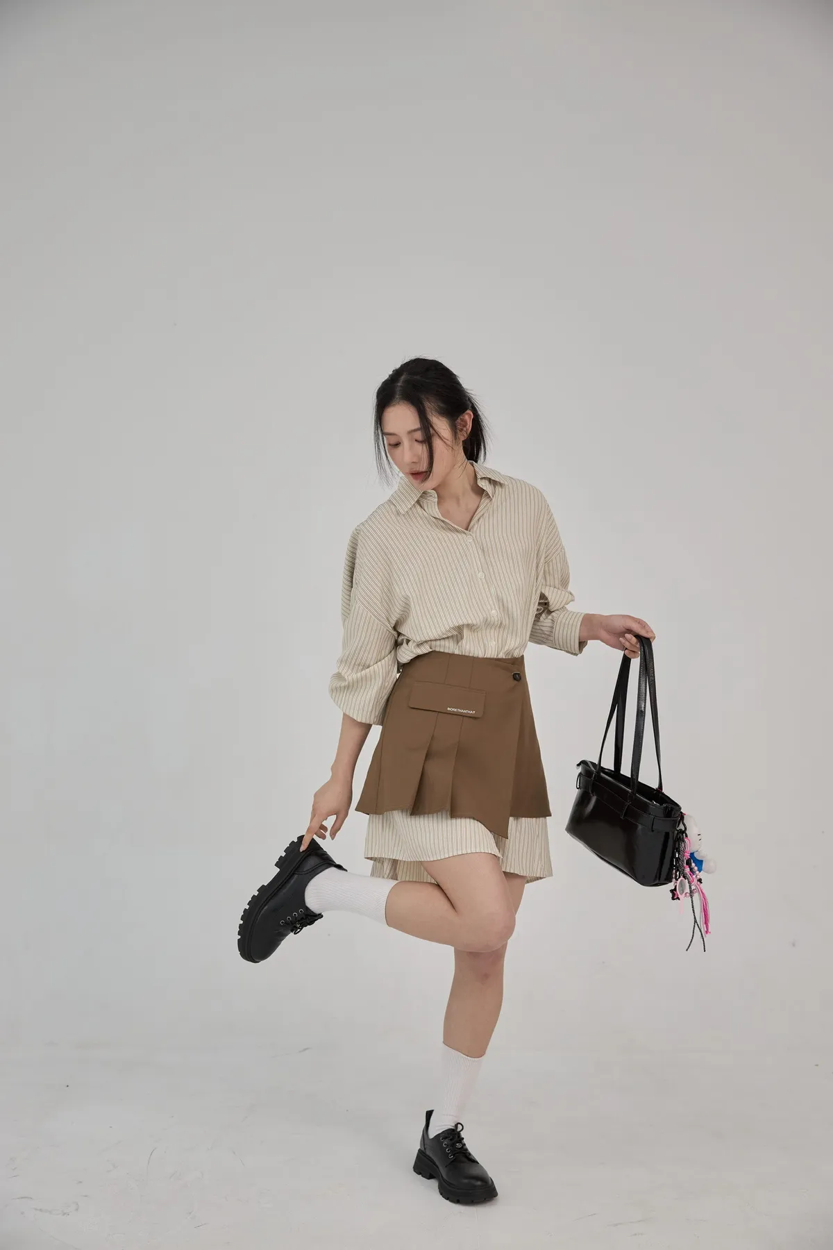 這套長版條文襯衫 + 襯裙,讓你不用費心思考搭配,輕輕鬆鬆就能打造有層次的時髦感。