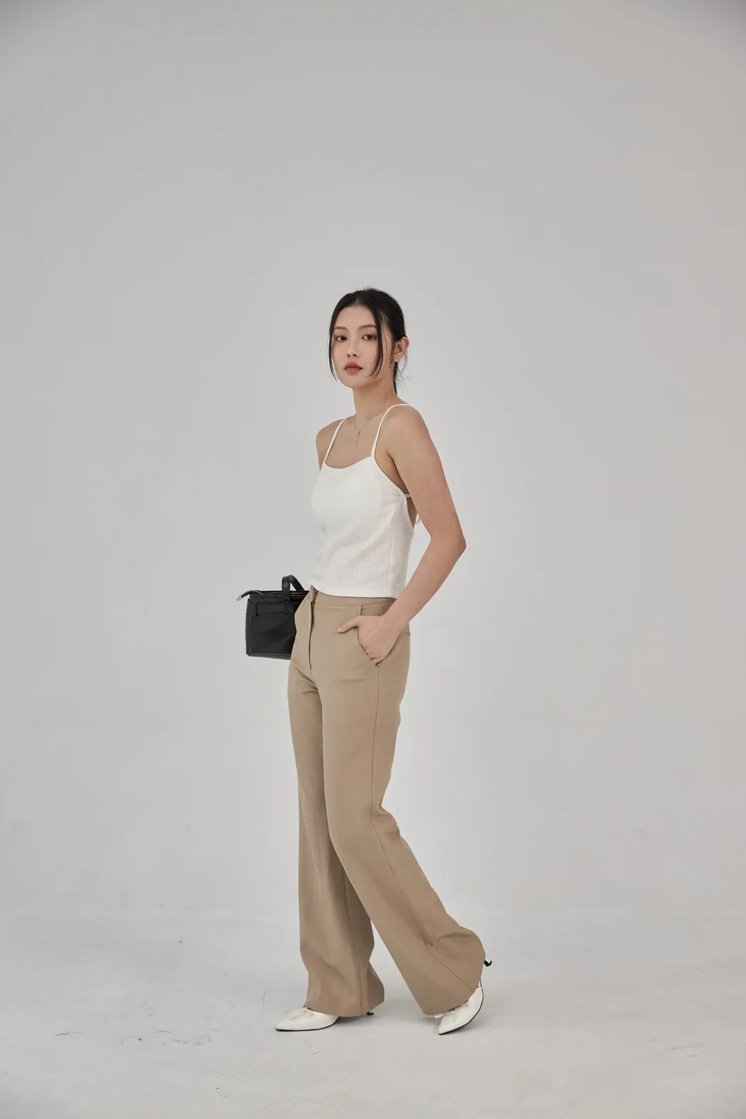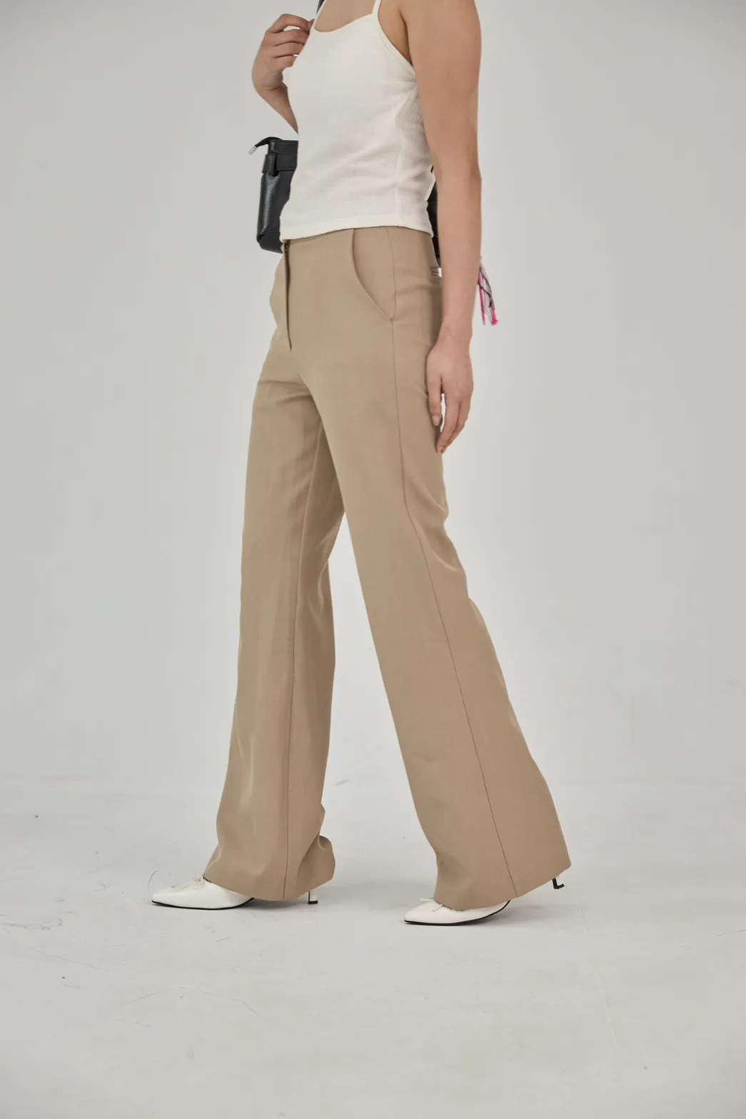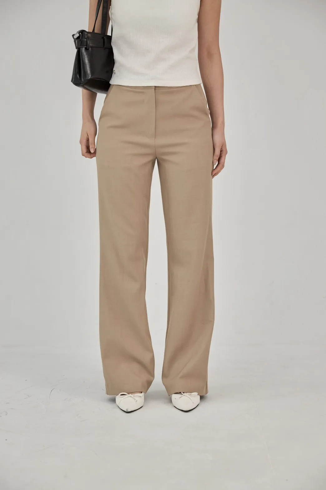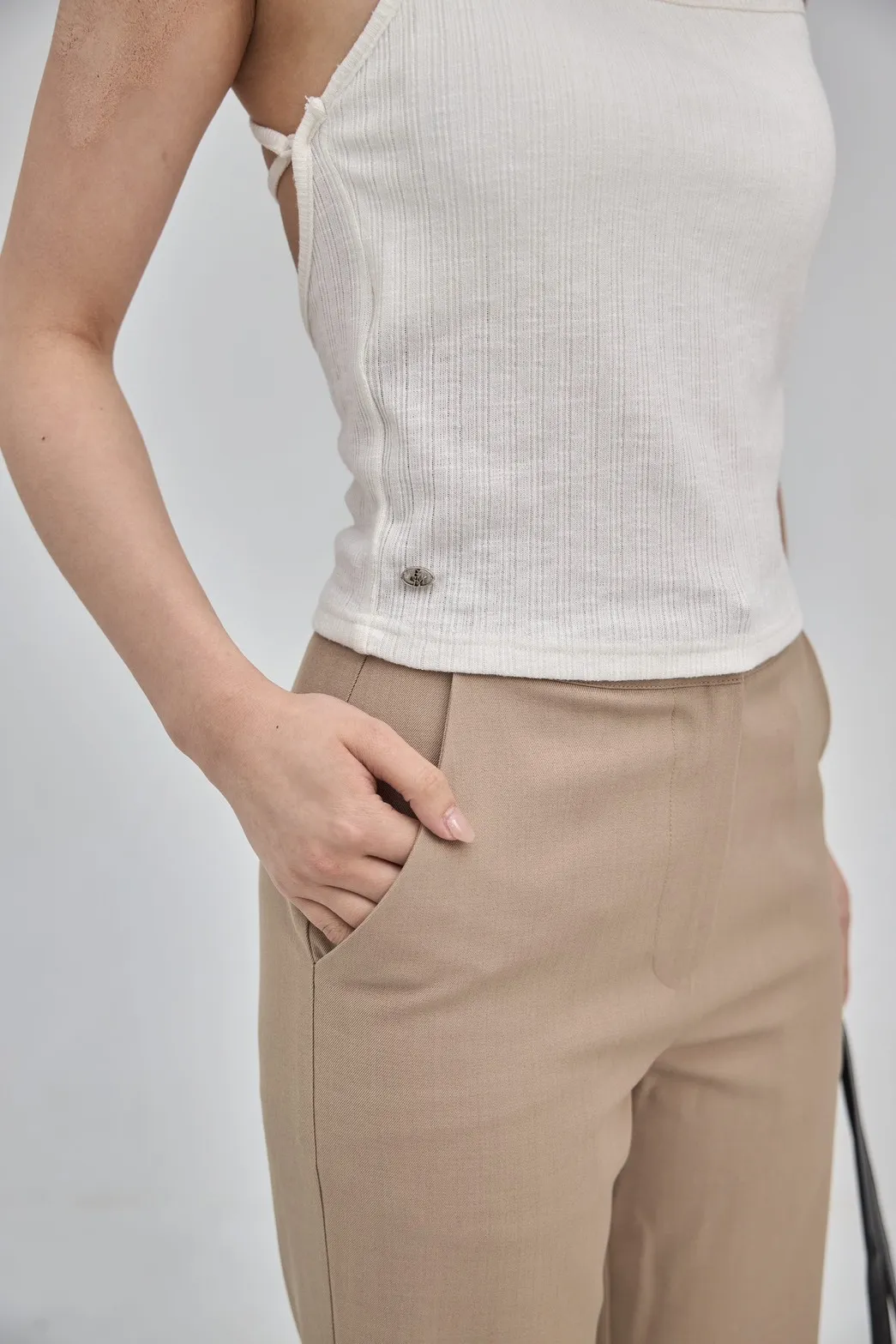 「BOGAMADE」超顯腿長窄管西裝褲.卡其