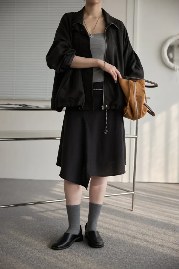 直筒半身裙 我們都知道小腿不細的女生穿半身裙常會擔心比例問題, 所以這款裙子特別採用不規則下擺剪裁。 這樣的設計能平衡視覺重點,把注意力從小腿轉移開來,同時讓腿型看起來更修長。 即使搭配靴子,也不會讓比例看起來縮短,讓你自在穿出隨性又有型的日常造型
