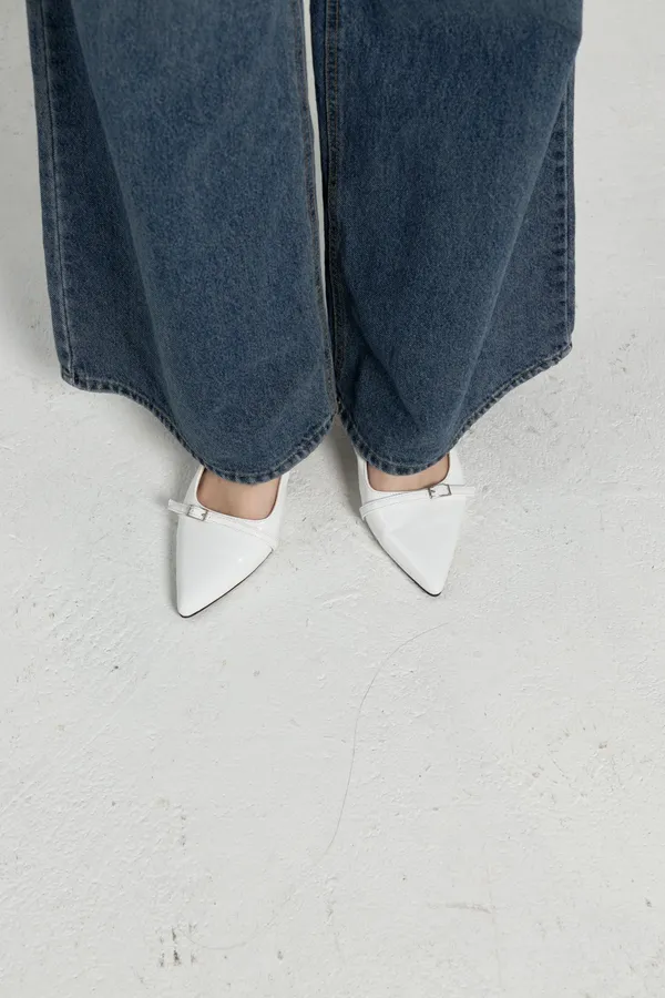 (全新款式)這輩子穿到最好穿的跟鞋!白色亮皮2.5cm