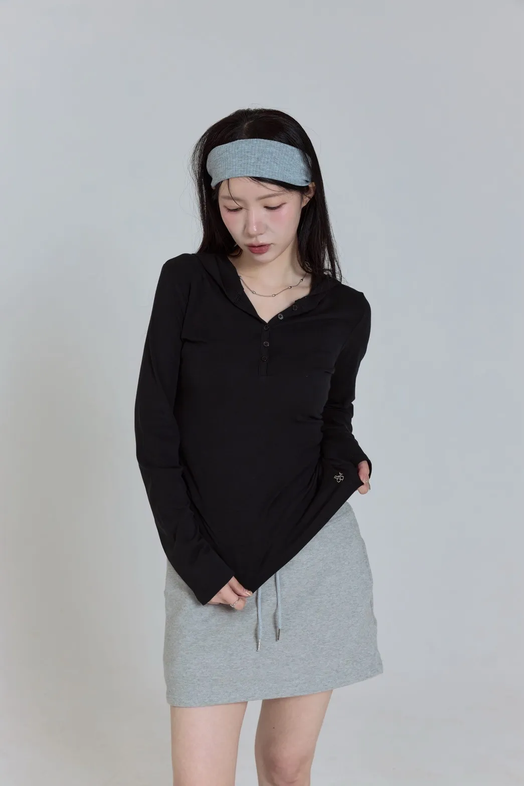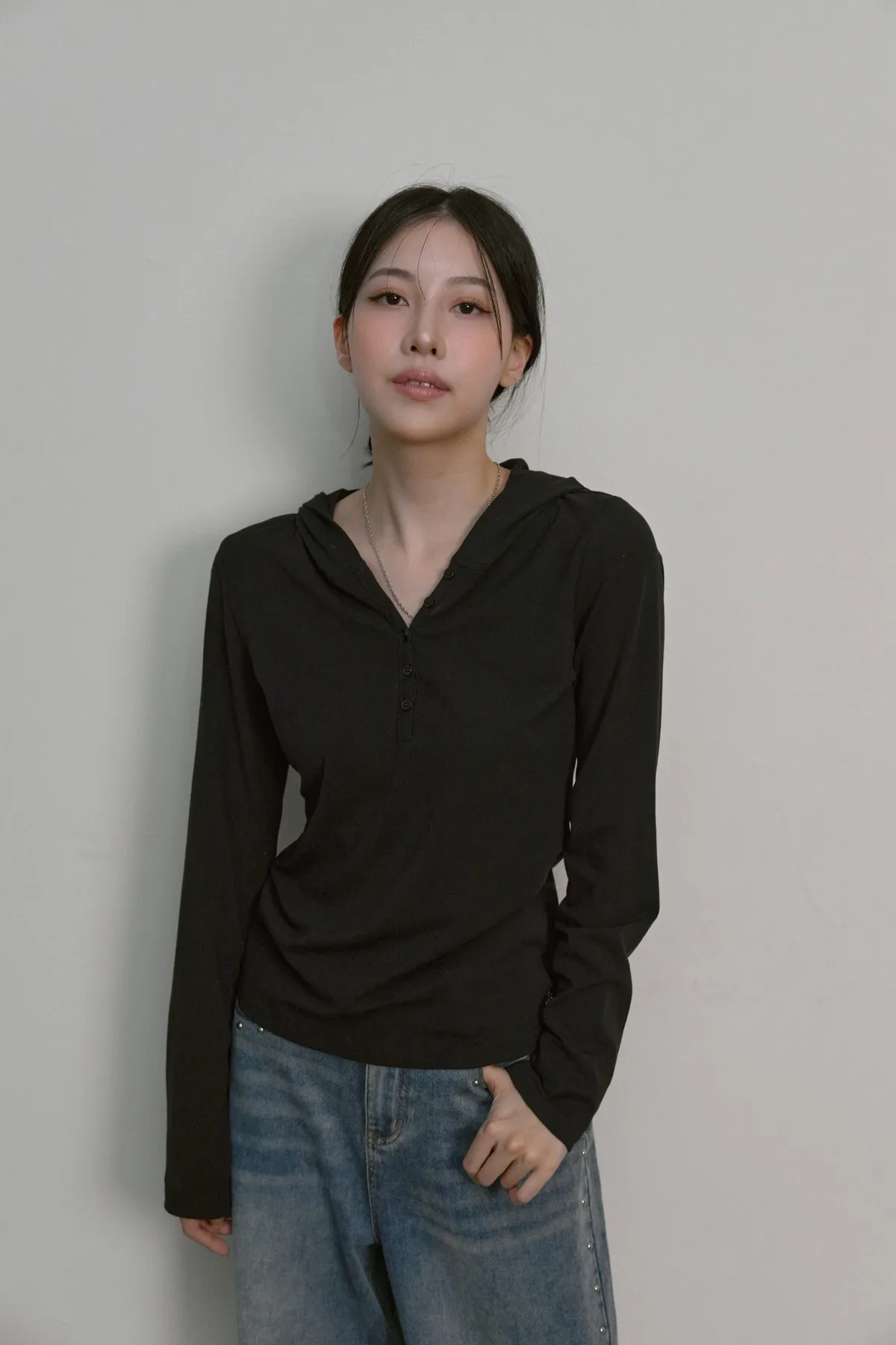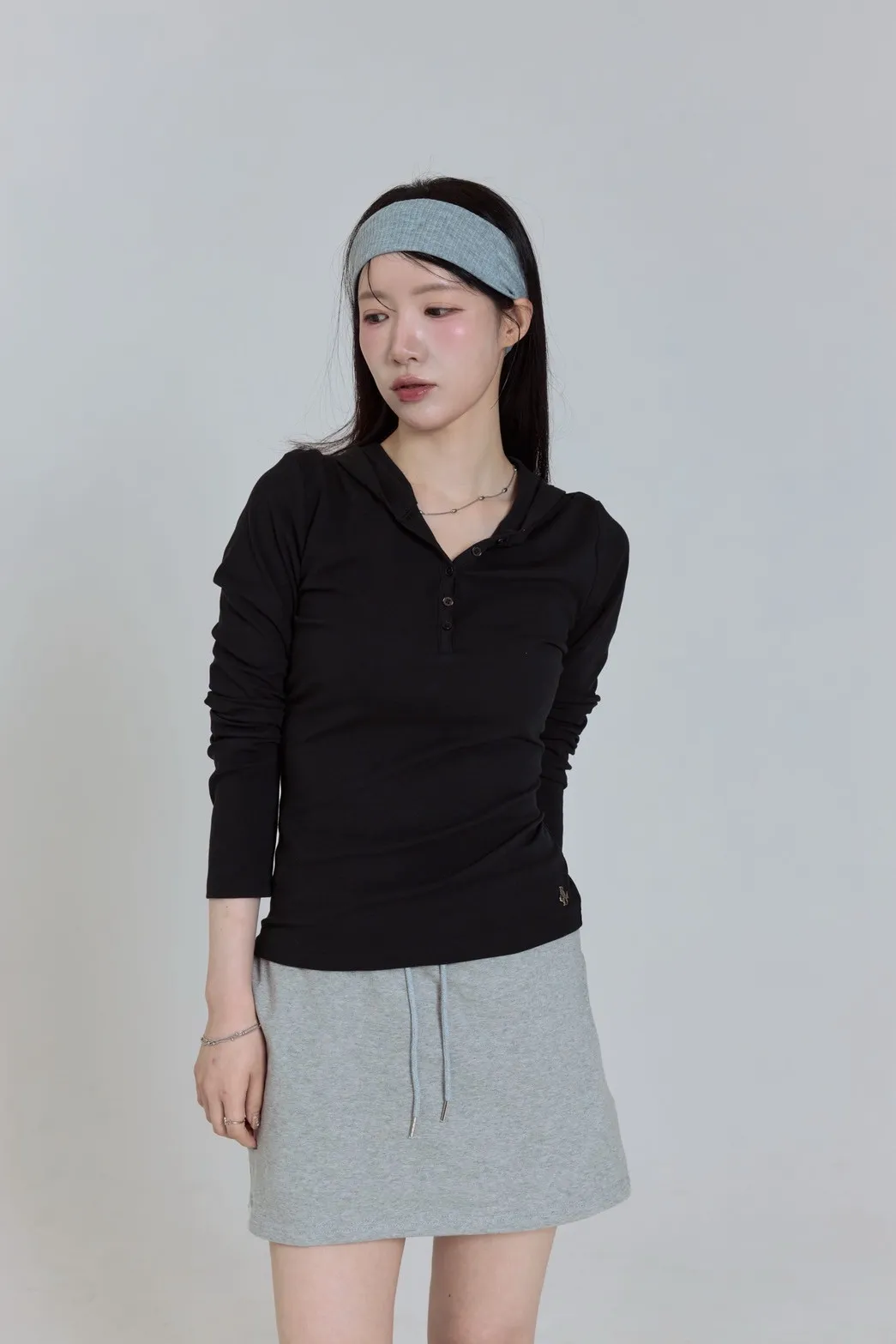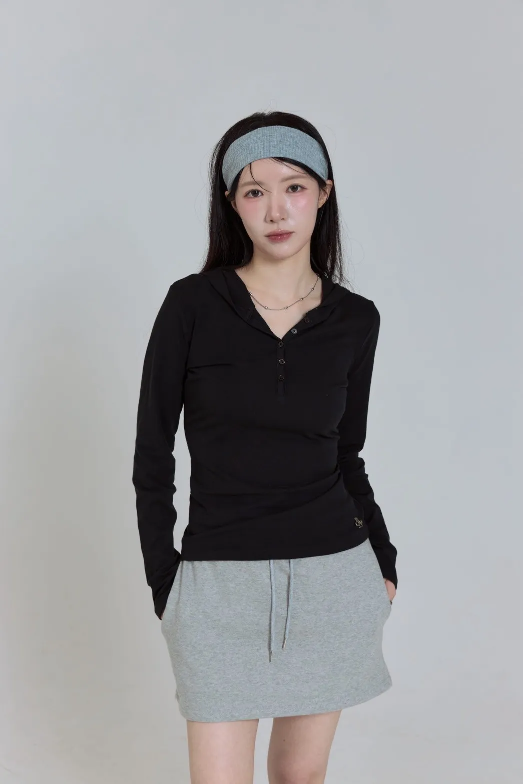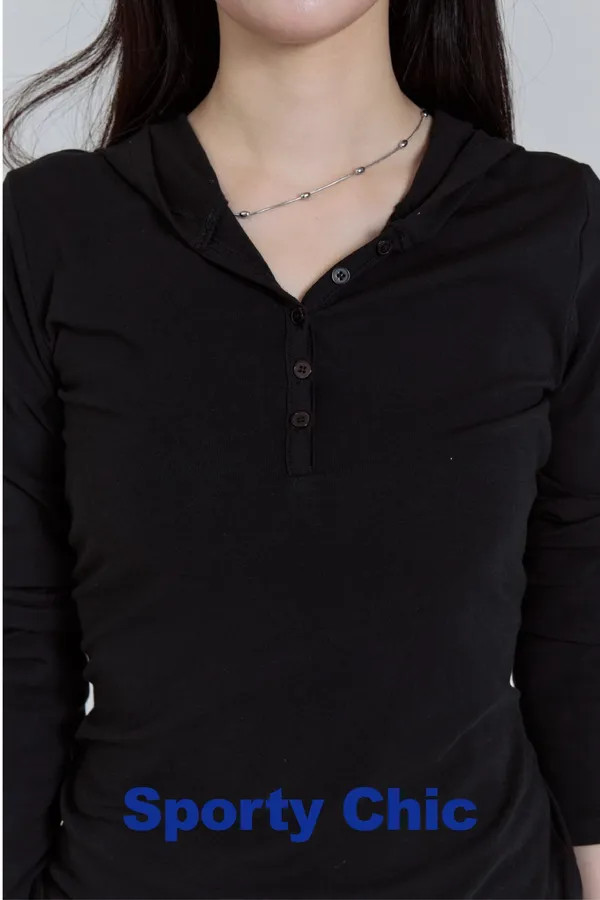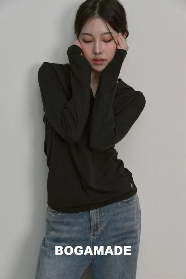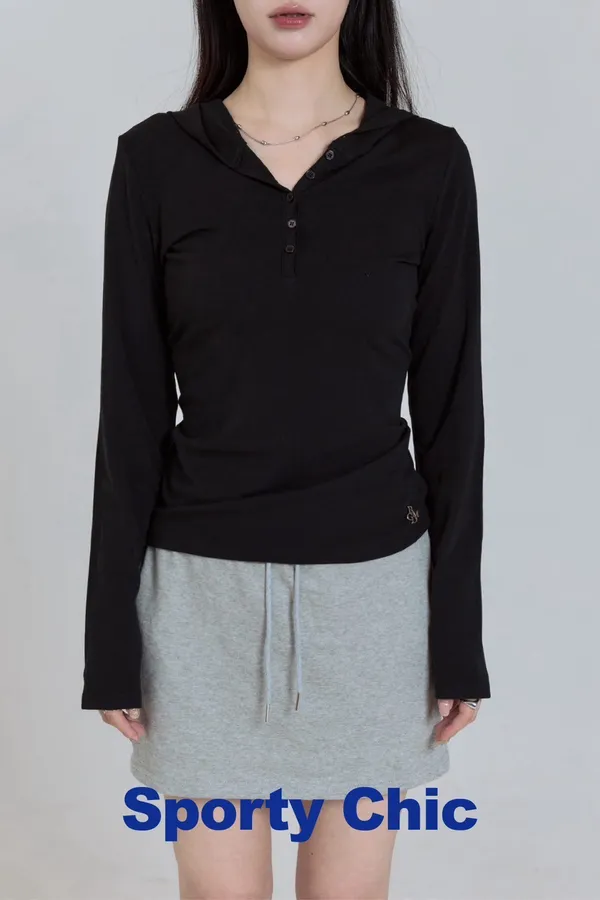 「BOGAMADE」空氣感修身連帽長袖.黑