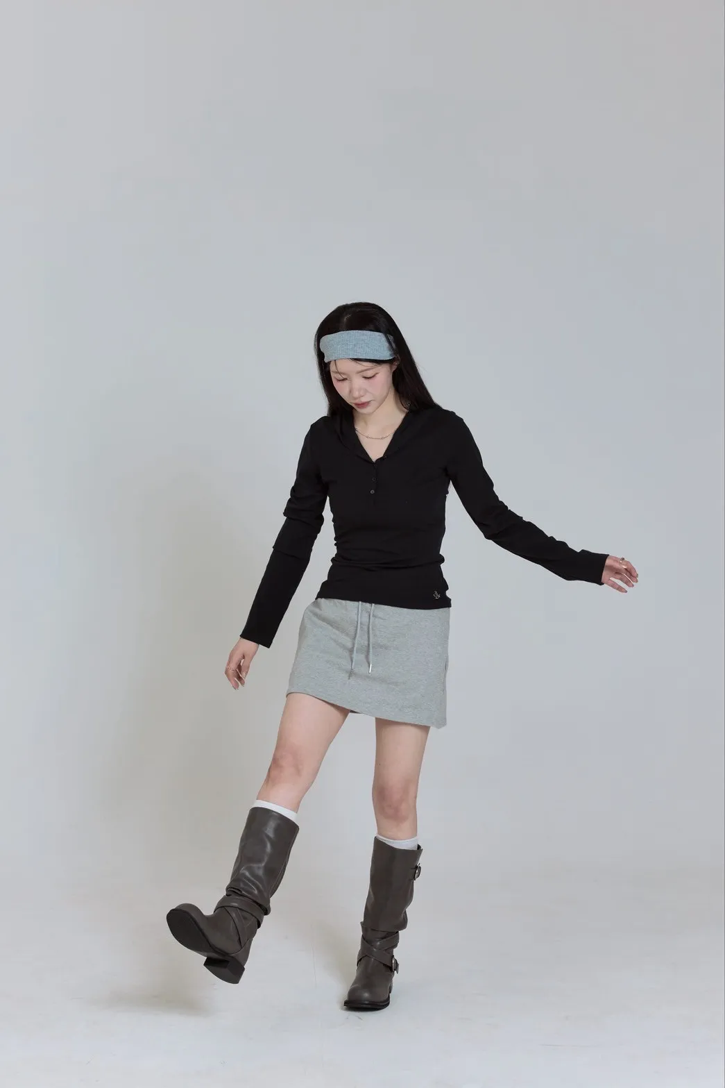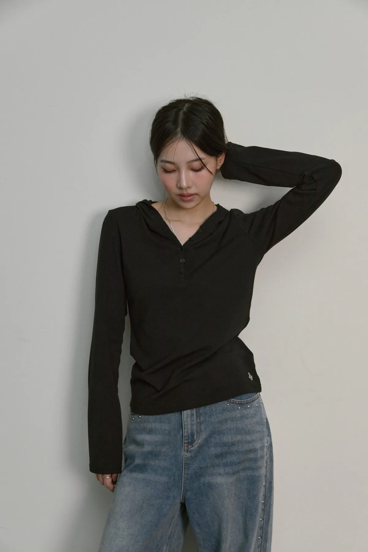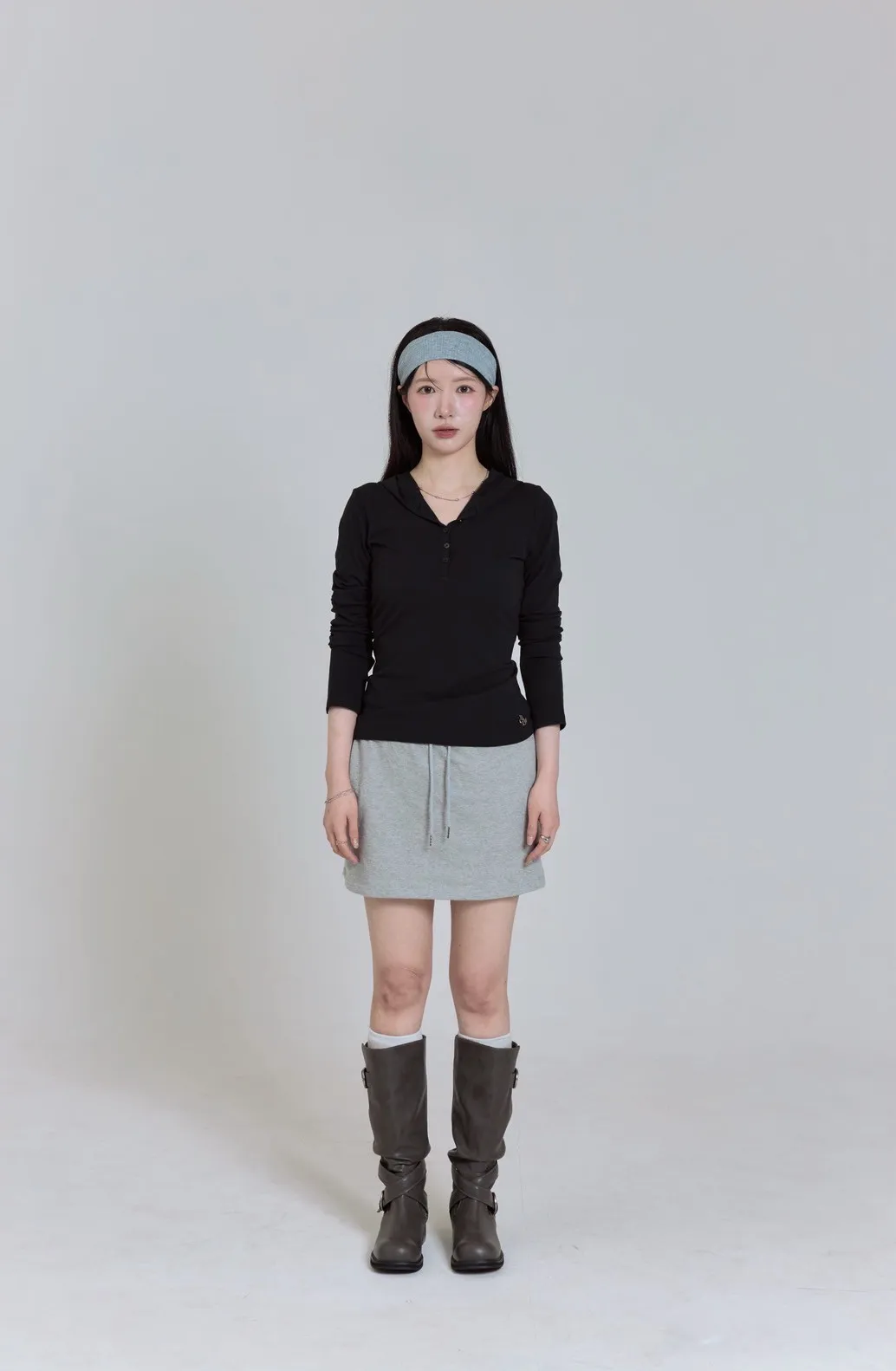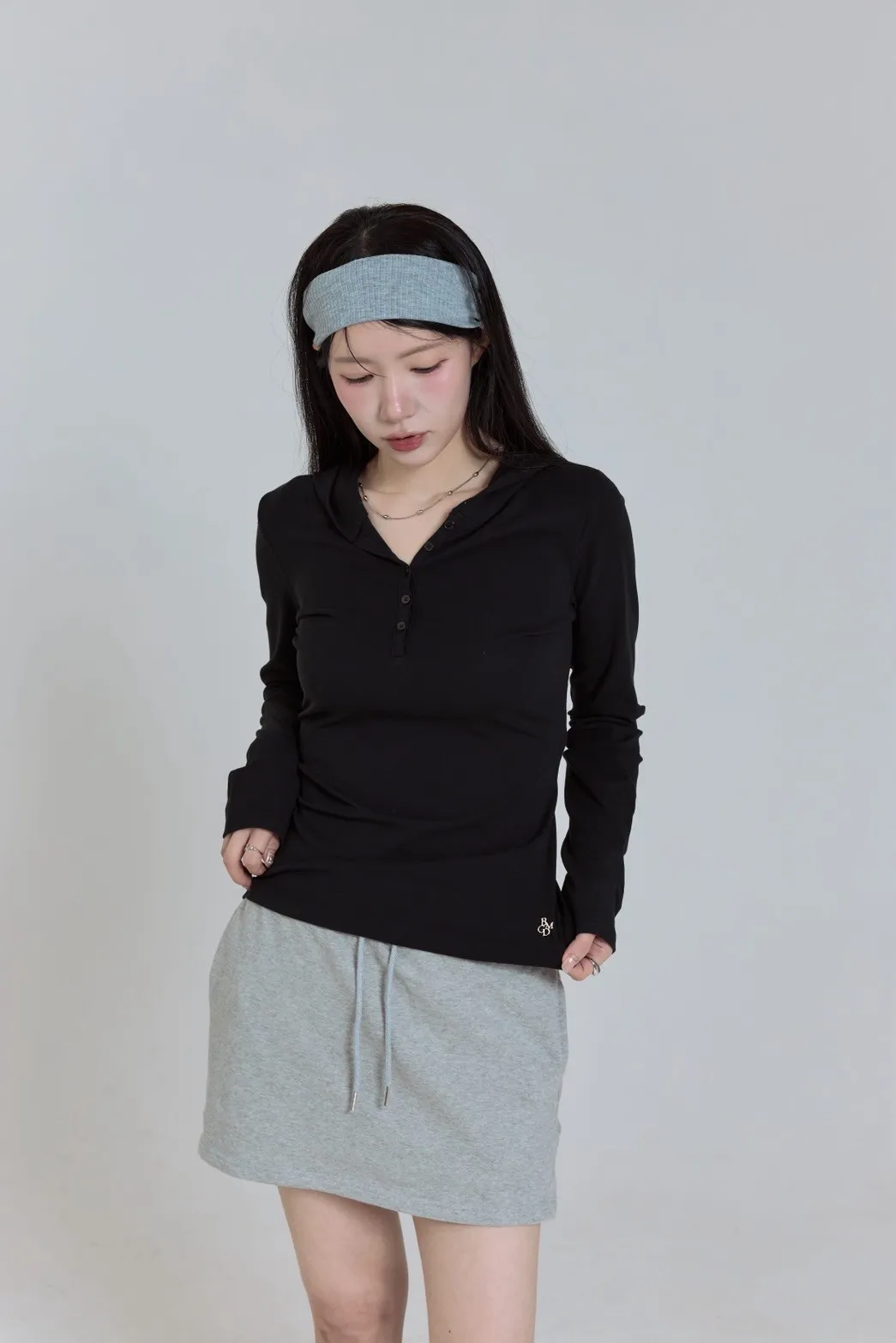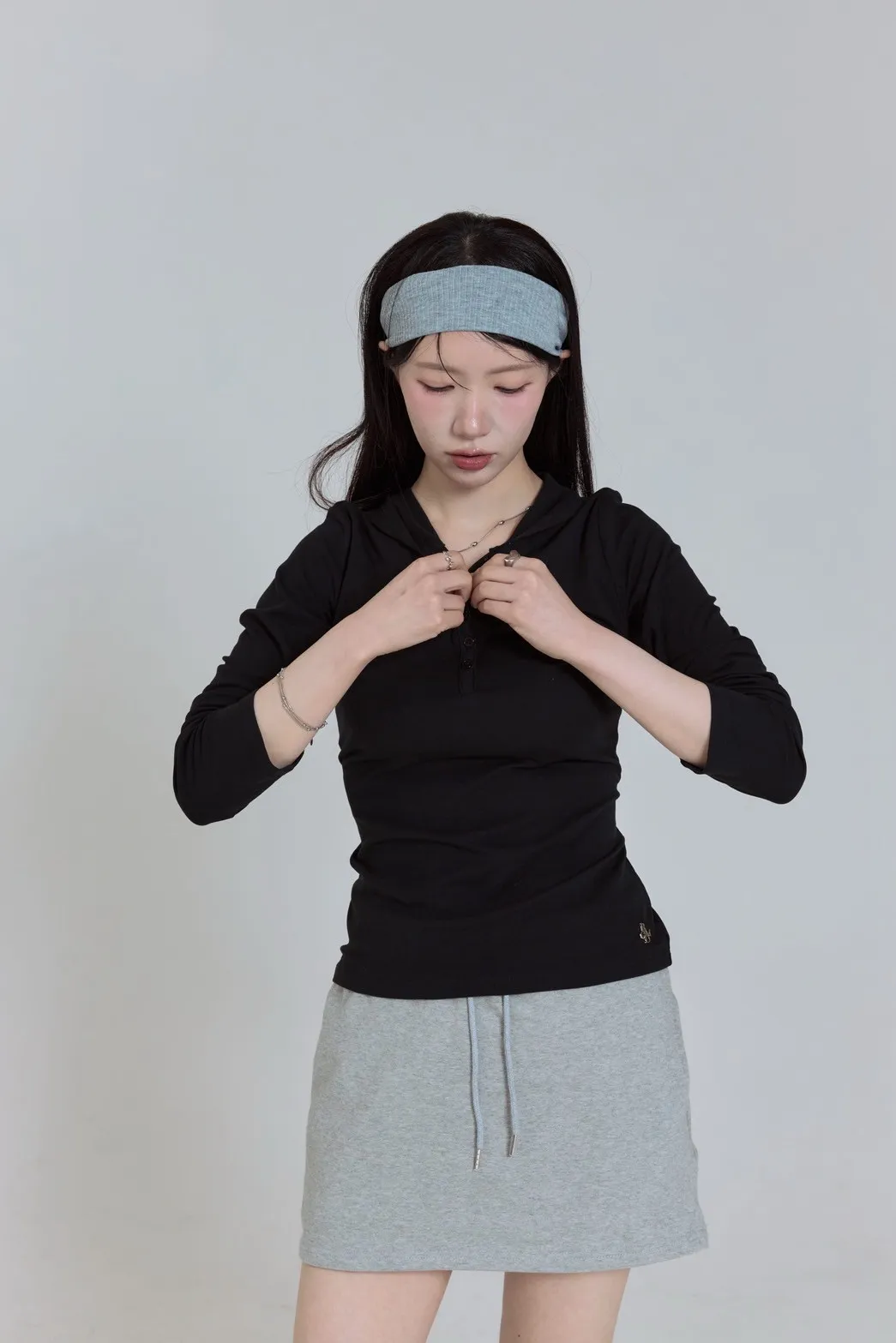 「BOGAMADE」空氣感修身連帽長袖.黑