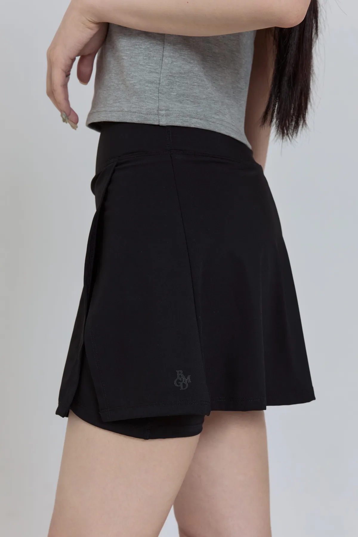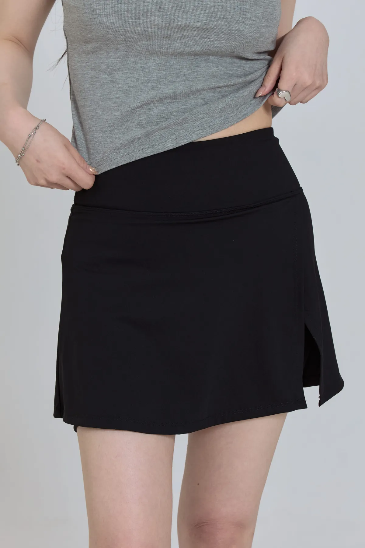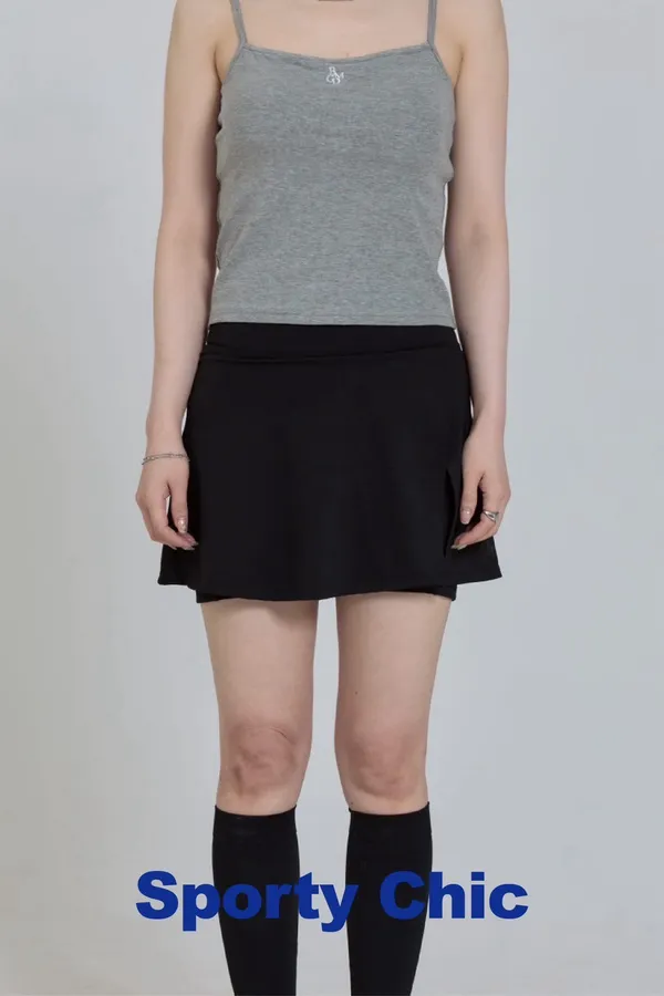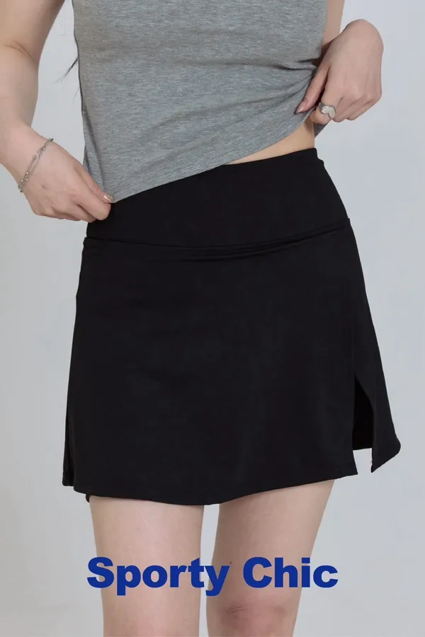 裙擺是散開的弧形剪裁,走動或伸展時自然飄動,前開衩讓動作更順暢,也多了一點俐落的線條感。 裡面藏著一條貼身小短褲,不僅讓人活動時更安心,還有個小口袋,放鑰匙或卡片剛剛好。 布料有彈性,包覆卻不緊繃,搭配分尺寸的設計,無論做瑜珈還是外出都能自在合身。 裙角印著品牌熱轉印標誌,低調卻有存在感,像是給整體多添了一點運動感的質感細節。