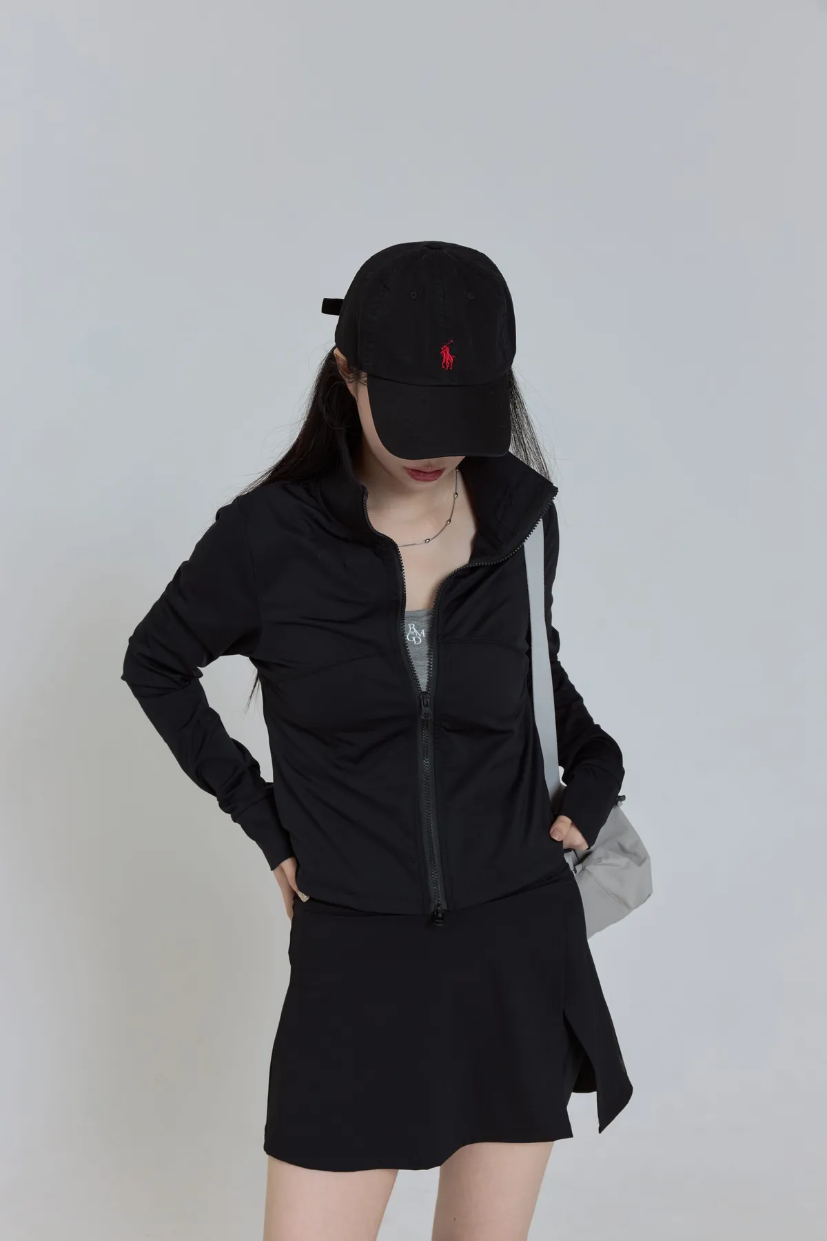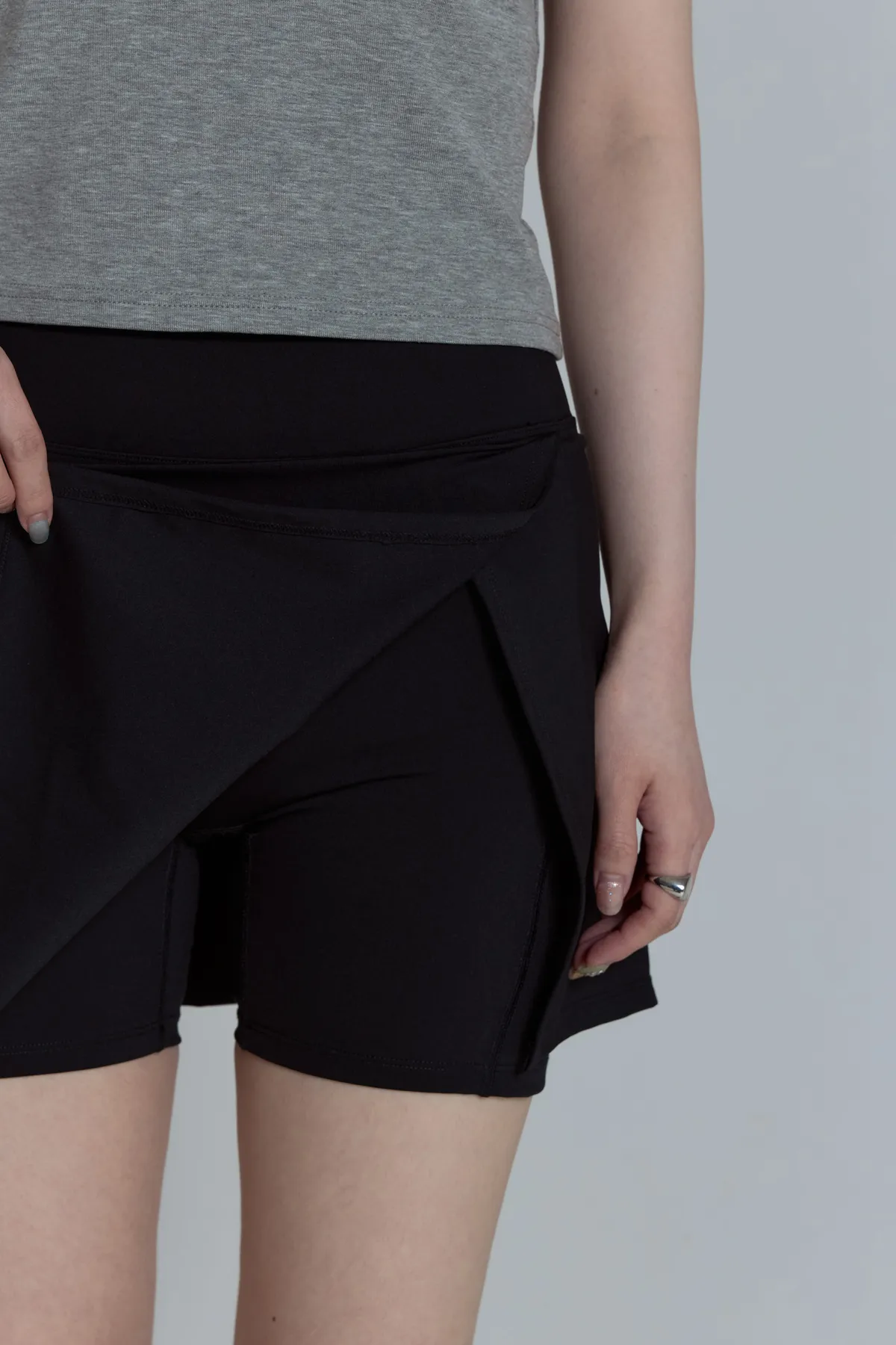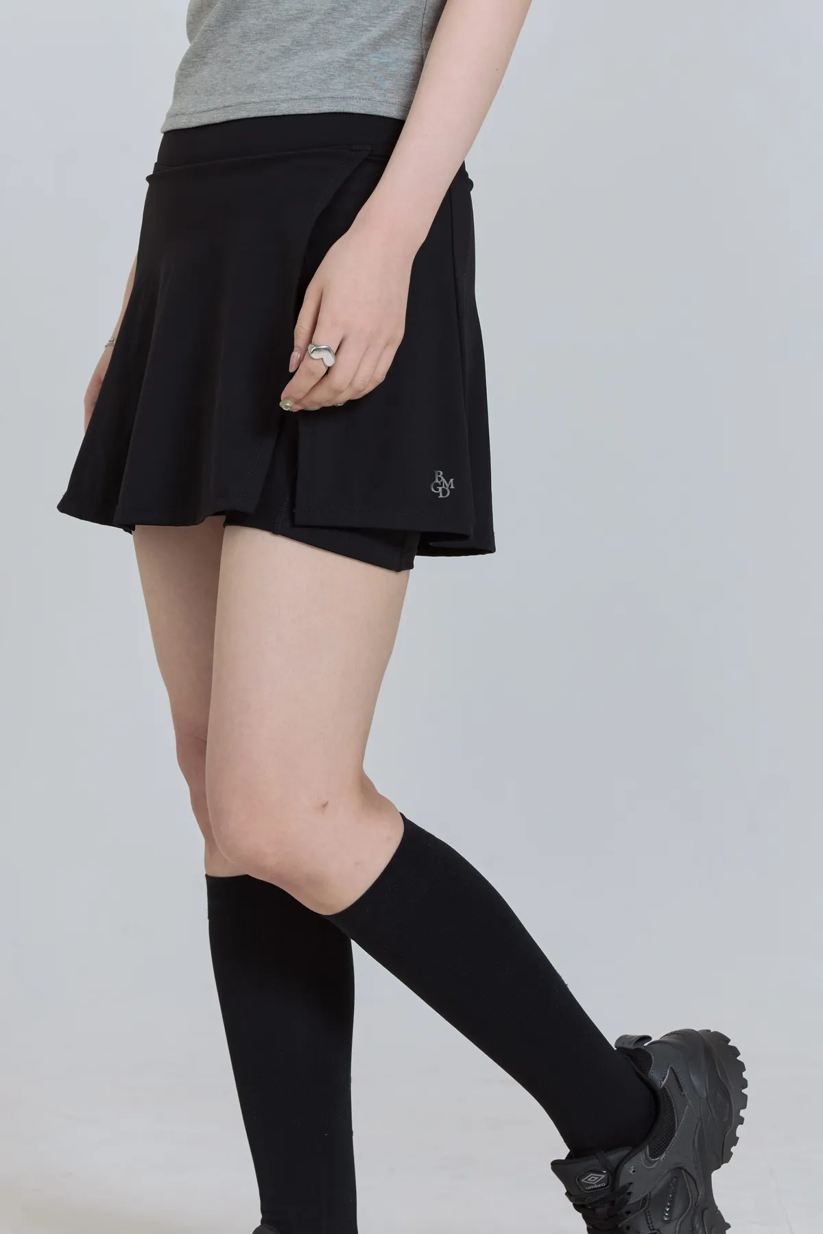 裙擺是散開的弧形剪裁,走動或伸展時自然飄動,前開衩讓動作更順暢,也多了一點俐落的線條感。 裡面藏著一條貼身小短褲,不僅讓人活動時更安心,還有個小口袋,放鑰匙或卡片剛剛好。 布料有彈性,包覆卻不緊繃,搭配分尺寸的設計,無論做瑜珈還是外出都能自在合身。 裙角印著品牌熱轉印標誌,低調卻有存在感,像是給整體多添了一點運動感的質感細節。