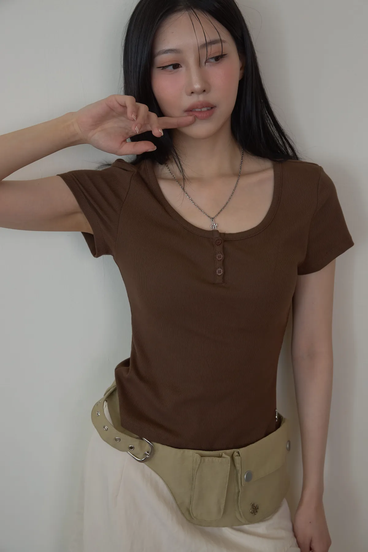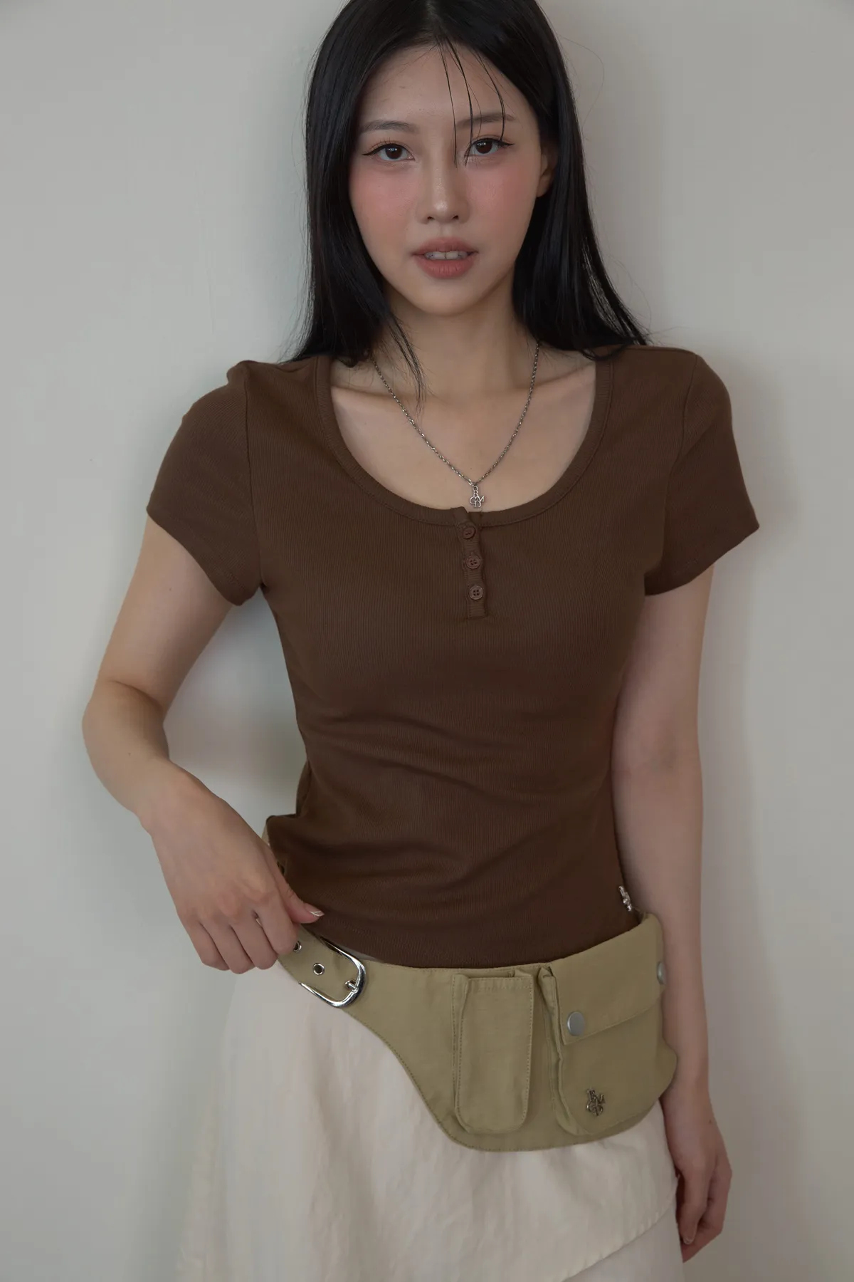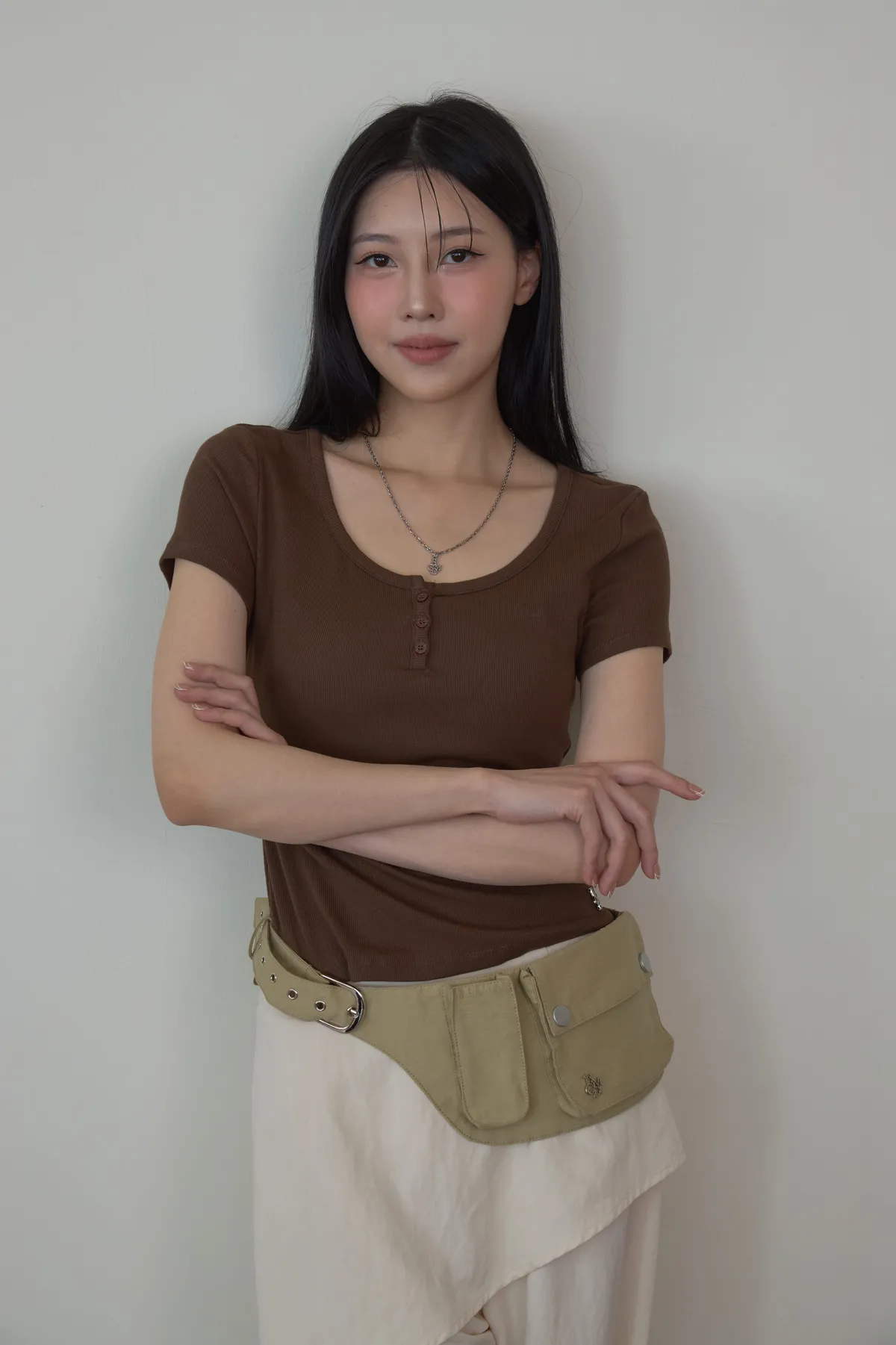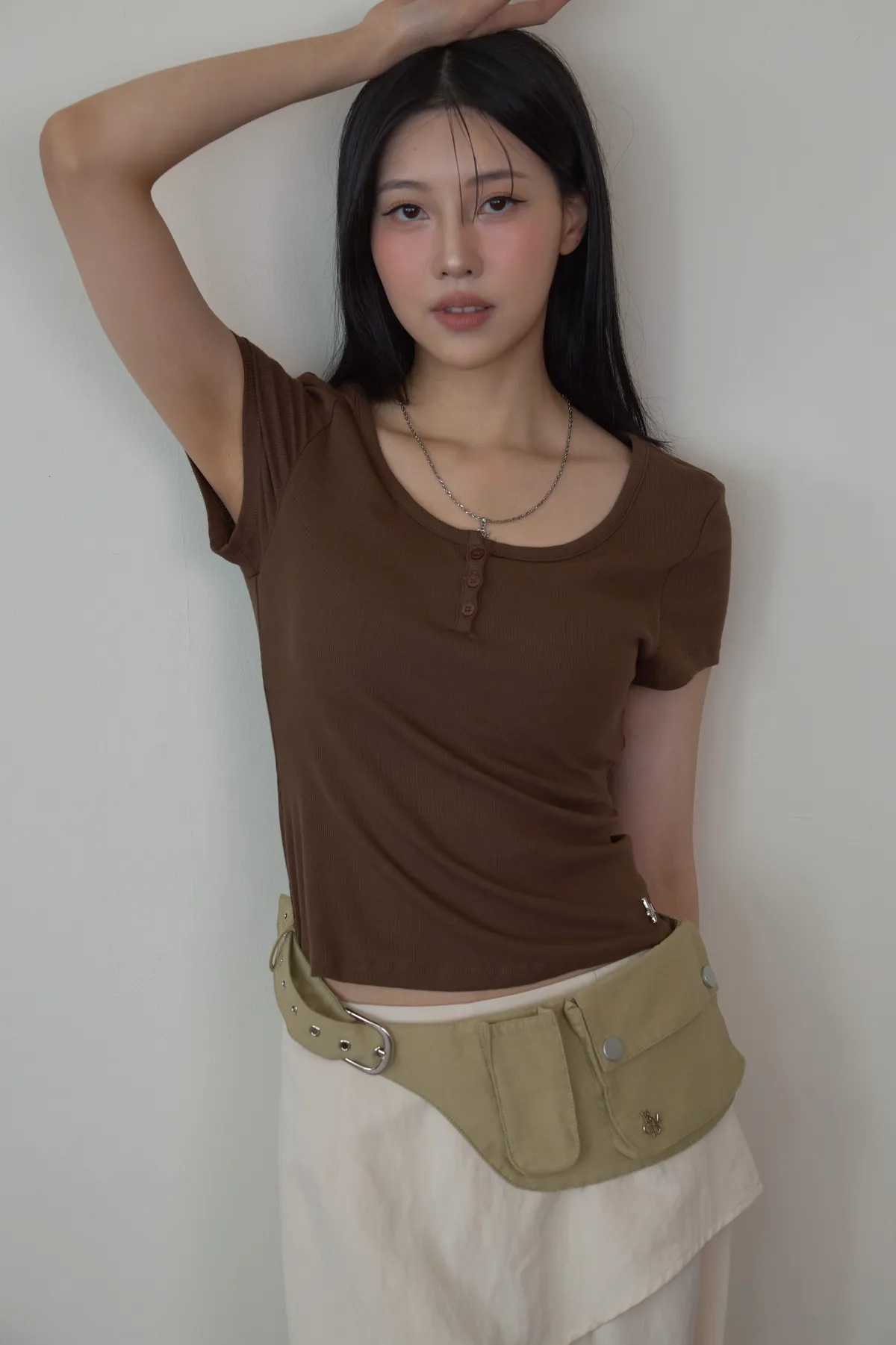 「BOGAMADE」彈性bra直角肩上衣.咖