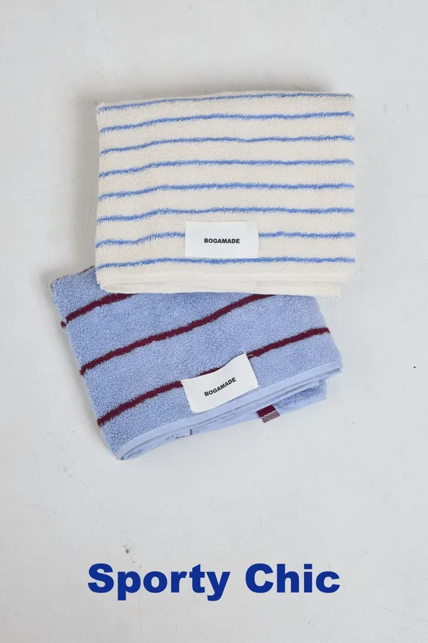 「BOGAMADE」超柔軟條紋品牌毛巾.白.藍