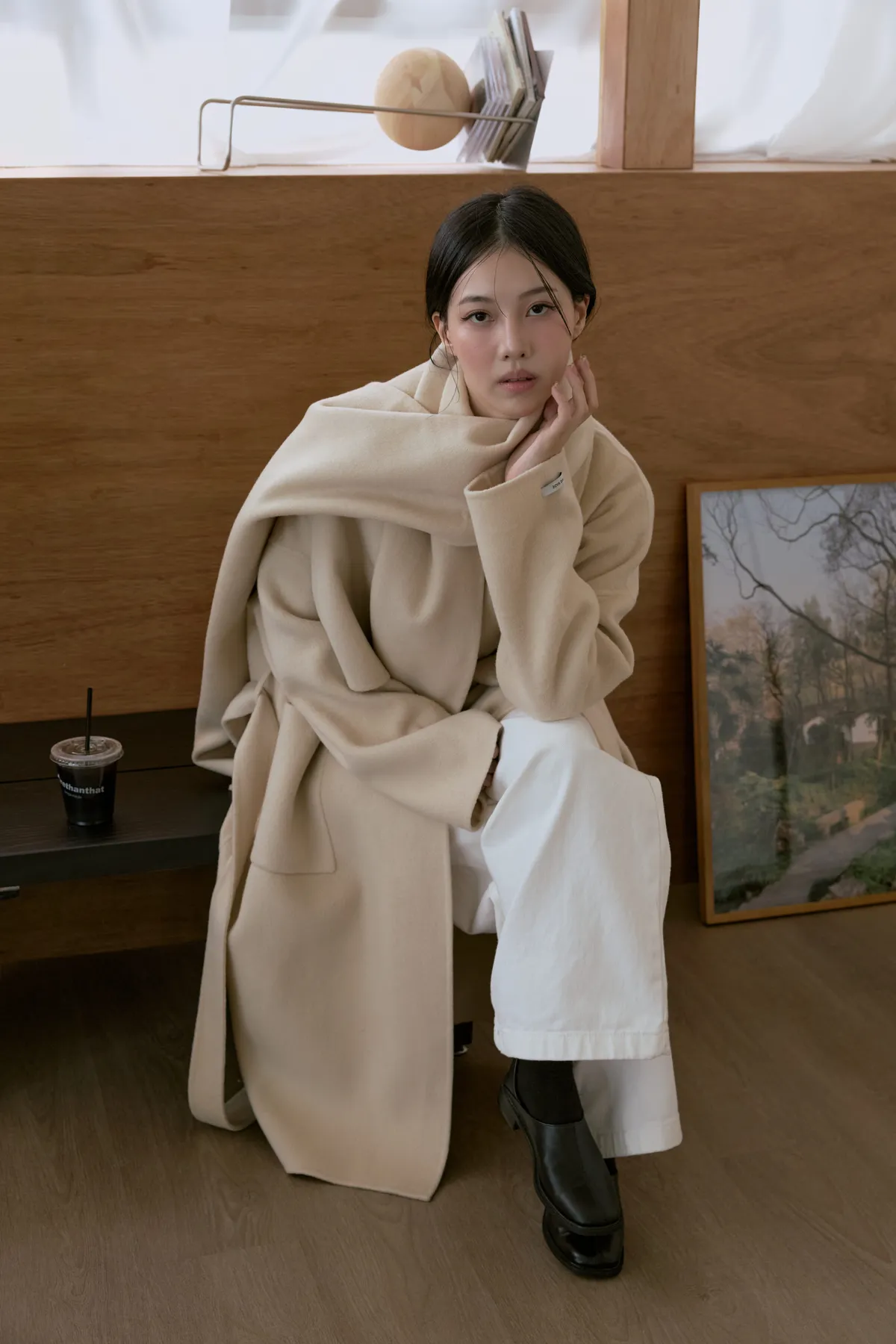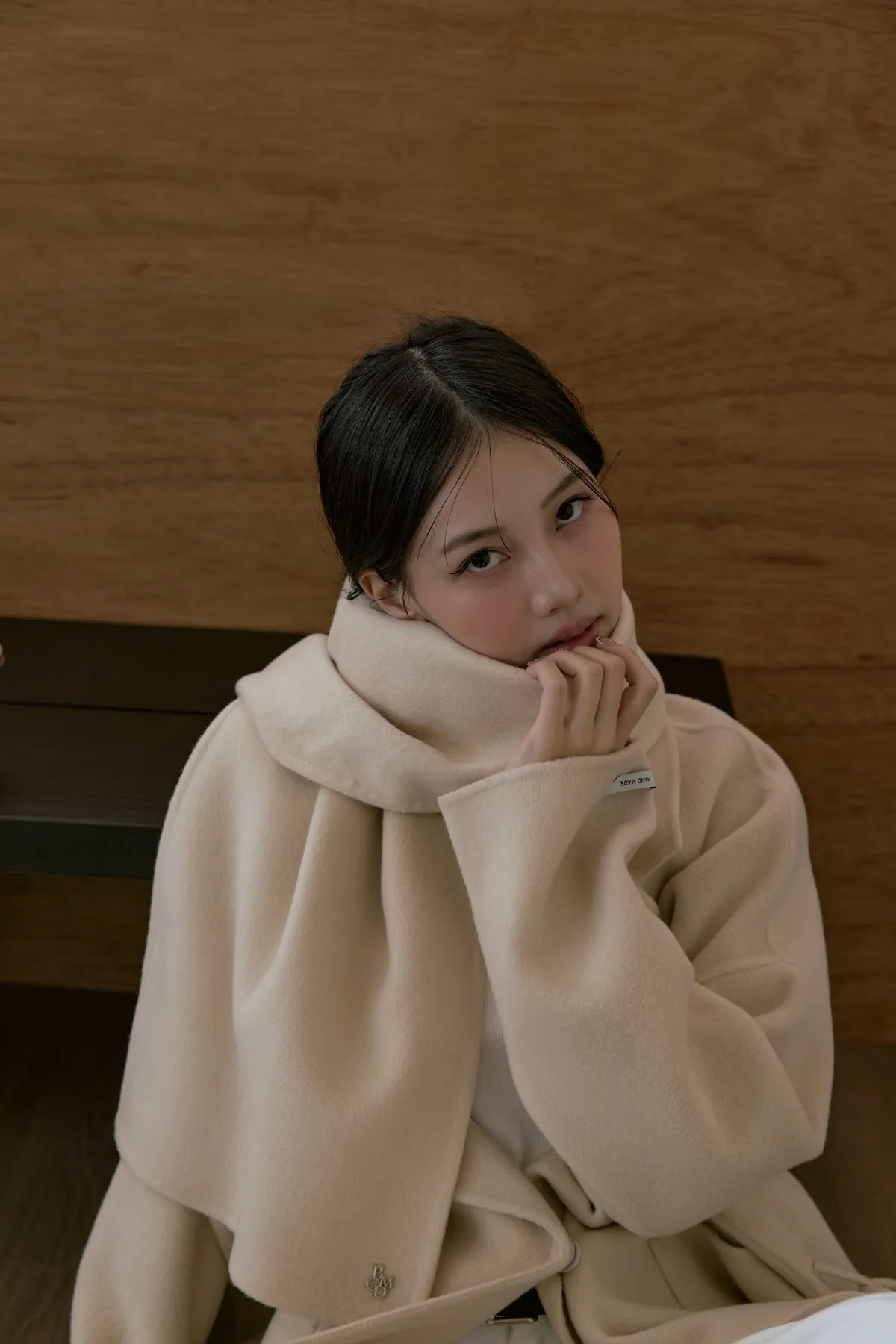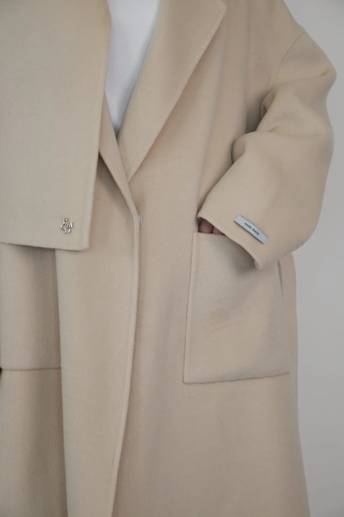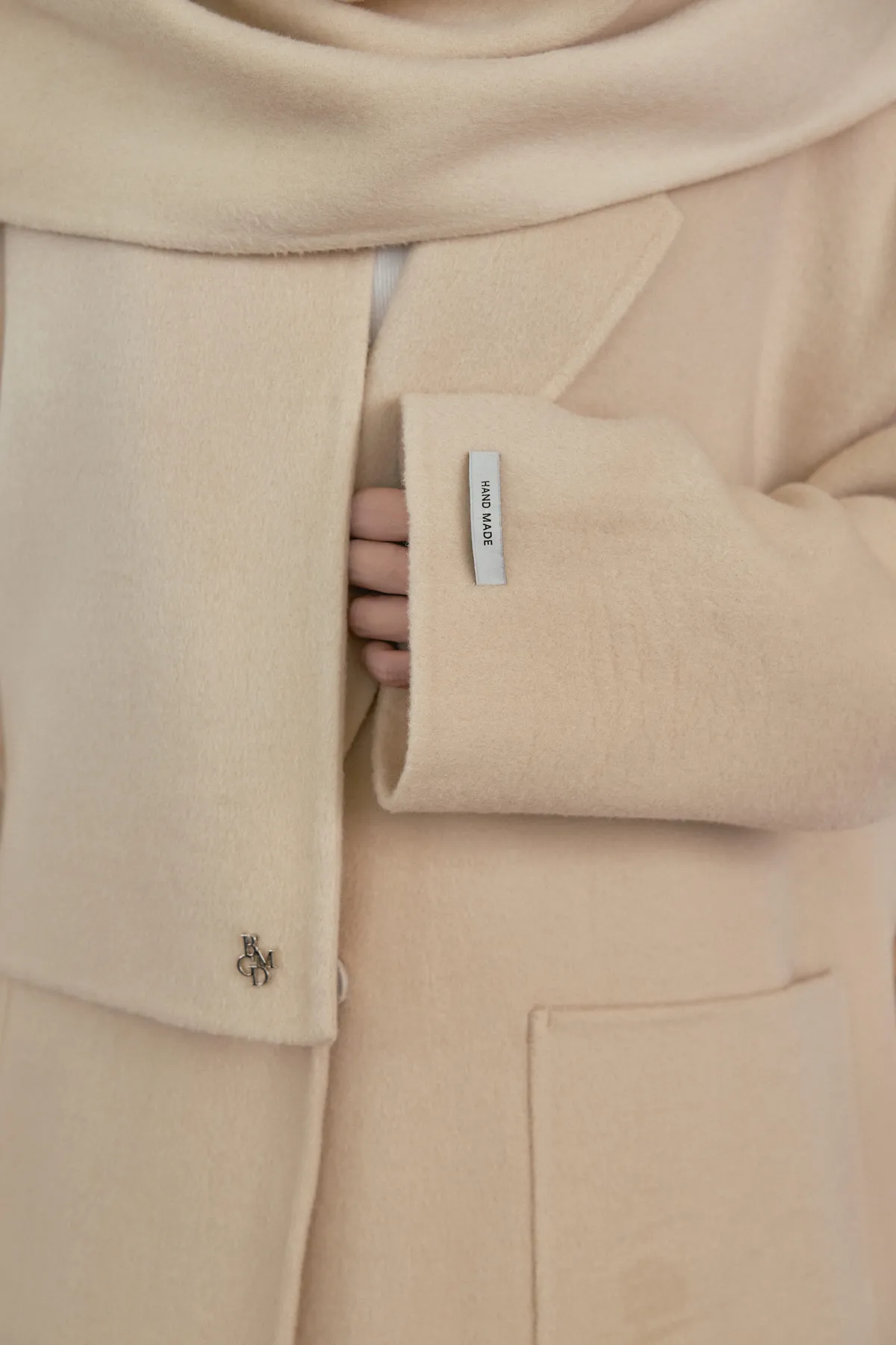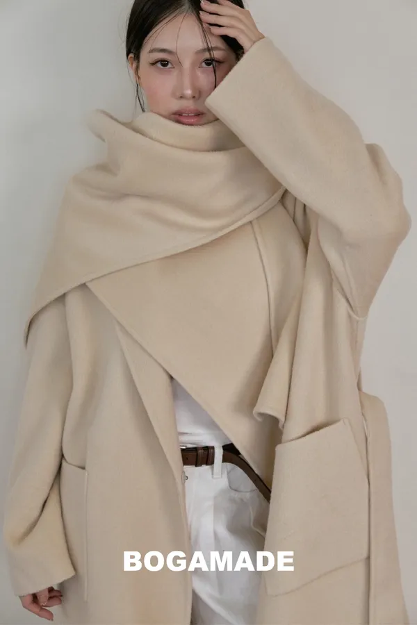 「BOGAMADE」100%手工羊毛圍巾長版大衣.米杏