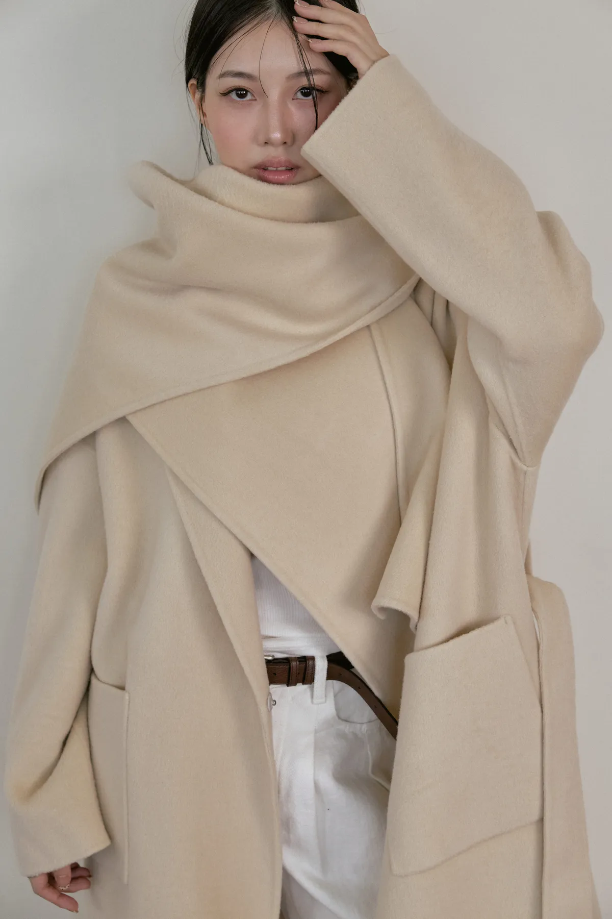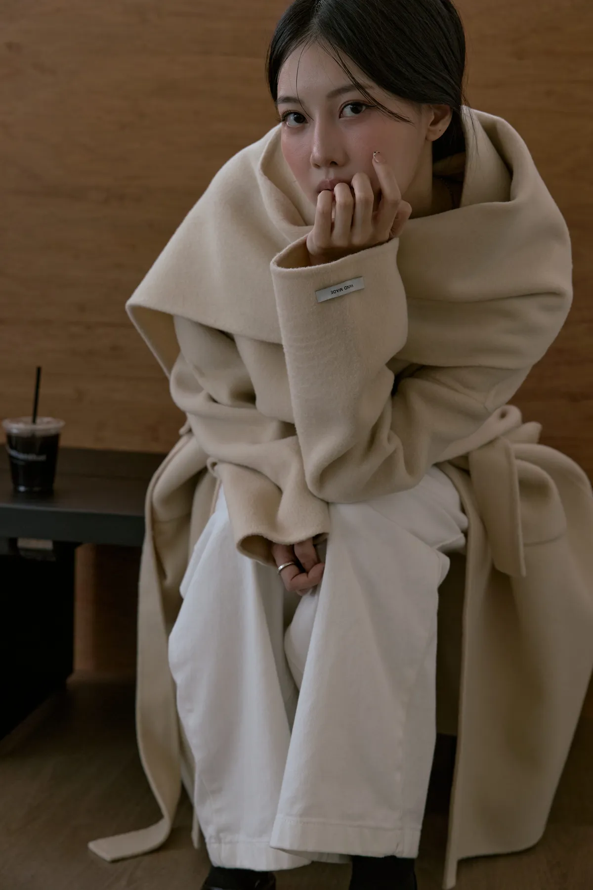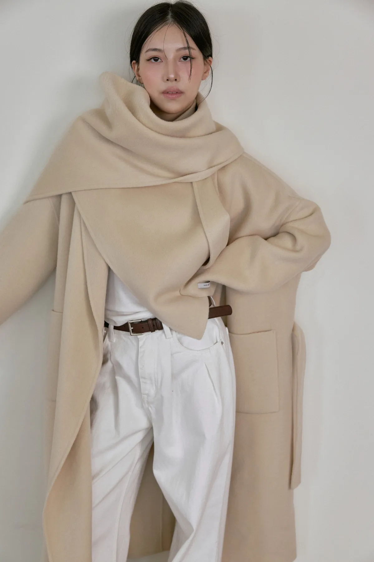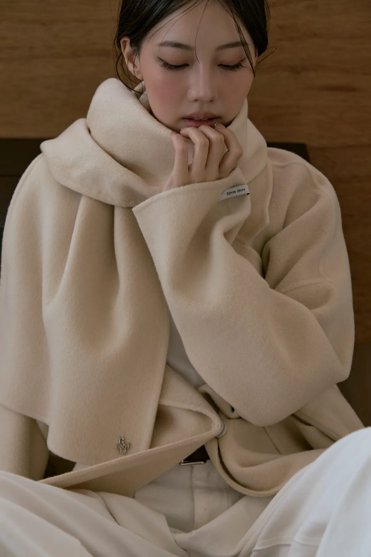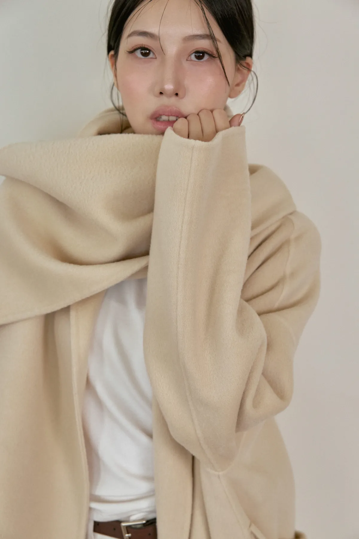 「BOGAMADE」100%手工羊毛圍巾長版大衣.米杏