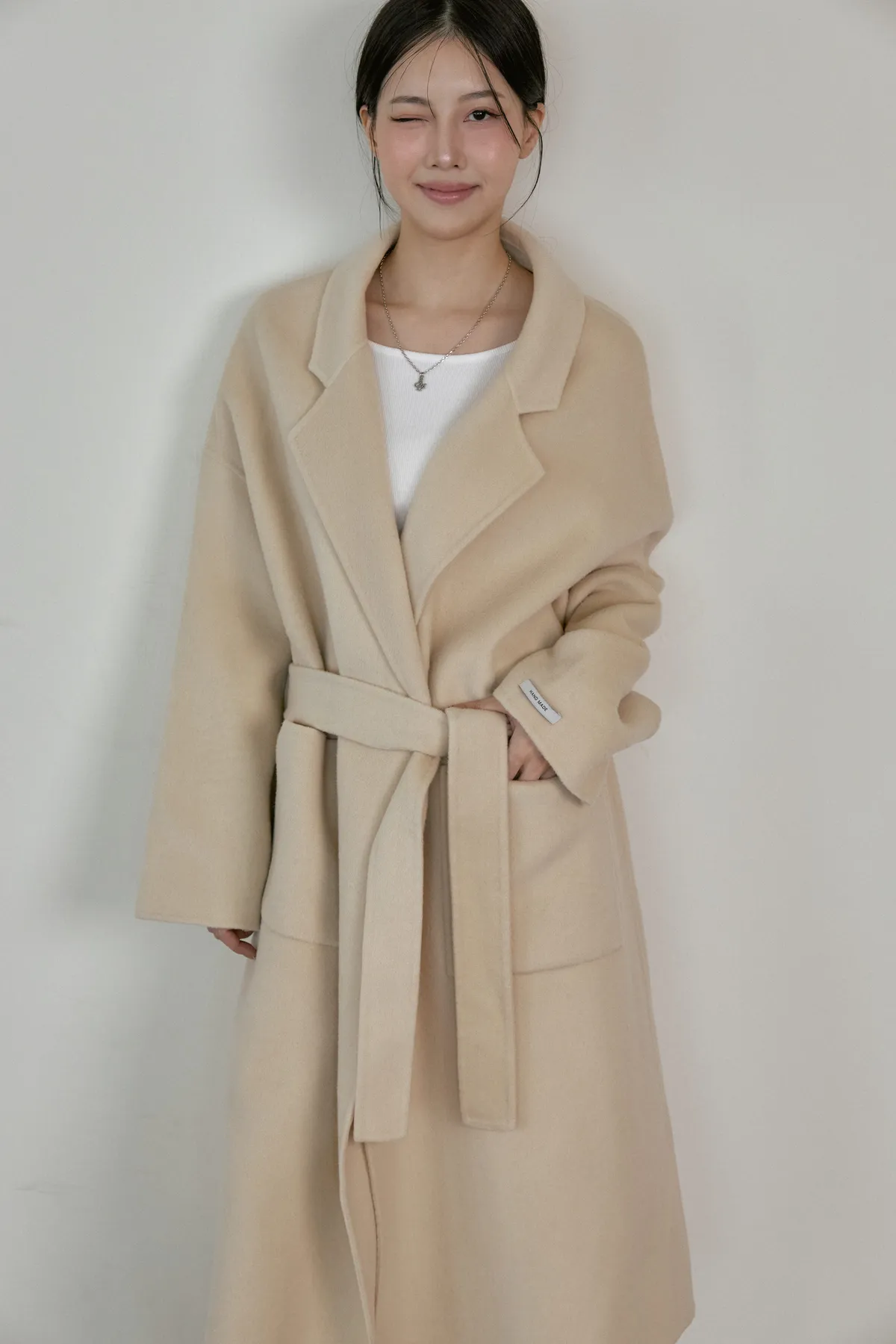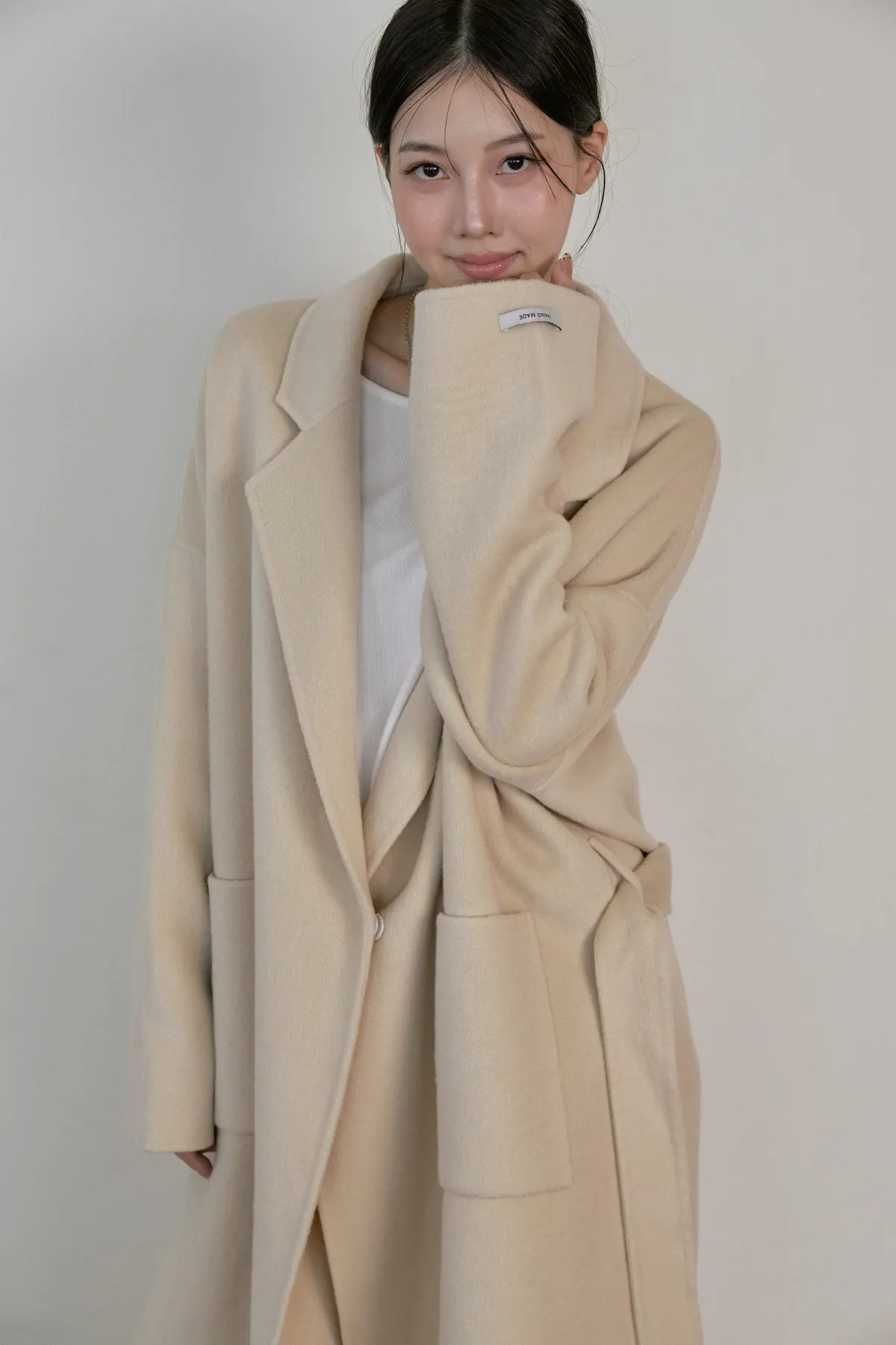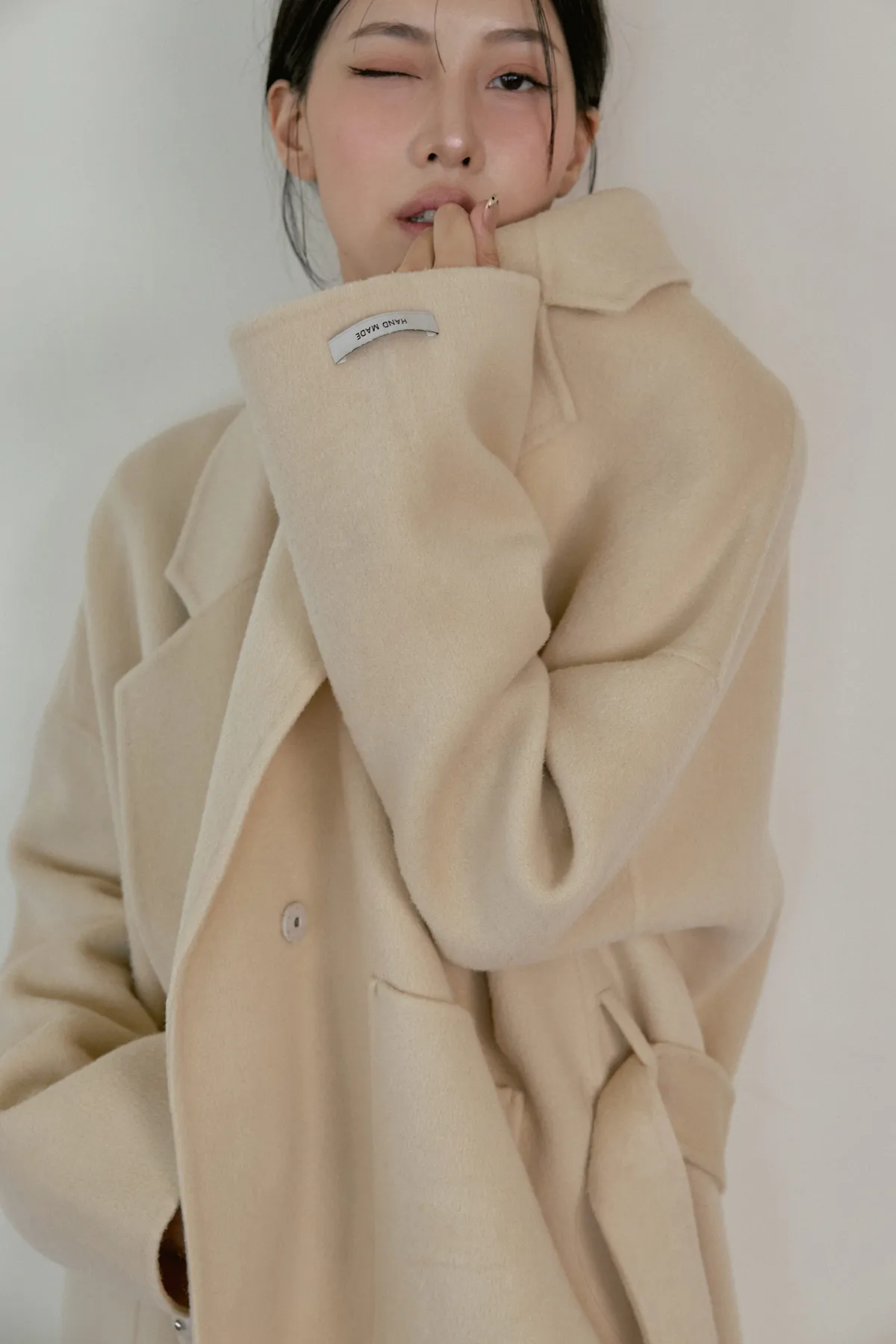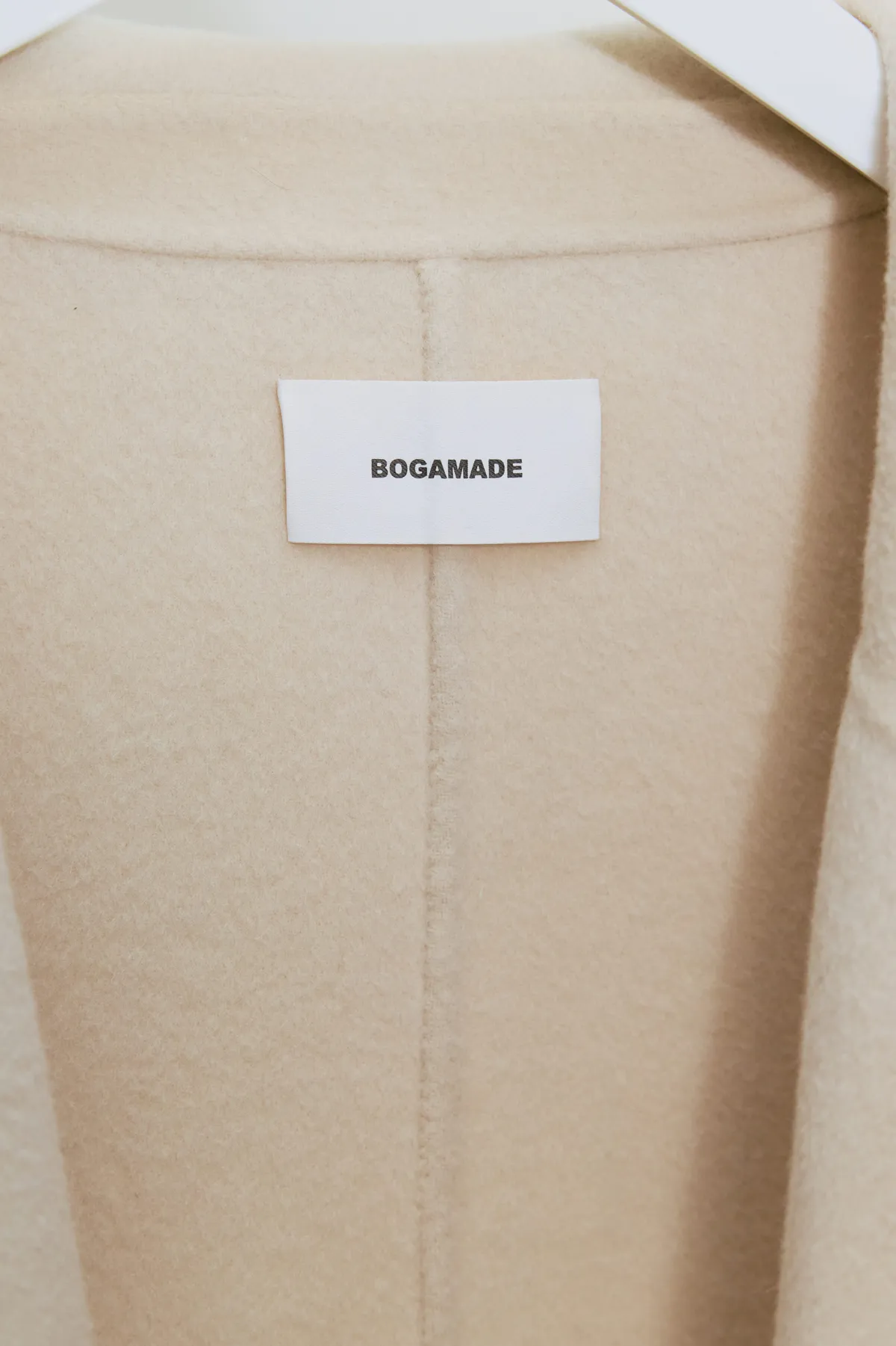 「BOGAMADE」100%手工羊毛圍巾長版大衣.米杏