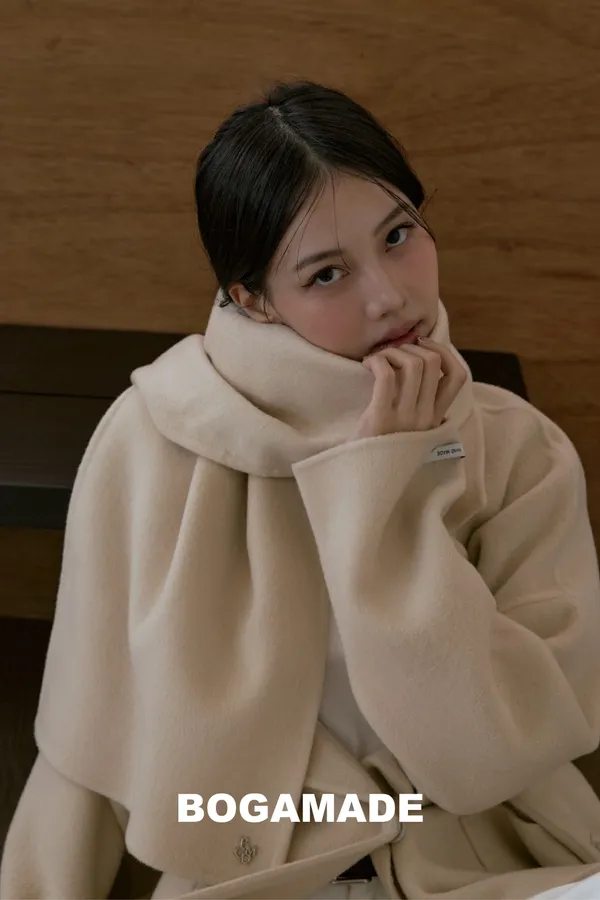 今年我們做得更俐落、更細緻。取消側邊開衩之後,整體線條更乾淨、也更有份量感同系列的加寬圍巾,可以繞在脖子上,也能攤開當披肩,在真正冷起來的日子,你會知道這塊布料的溫柔是值得依靠的。