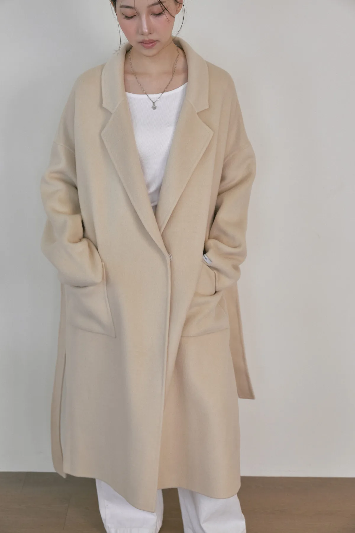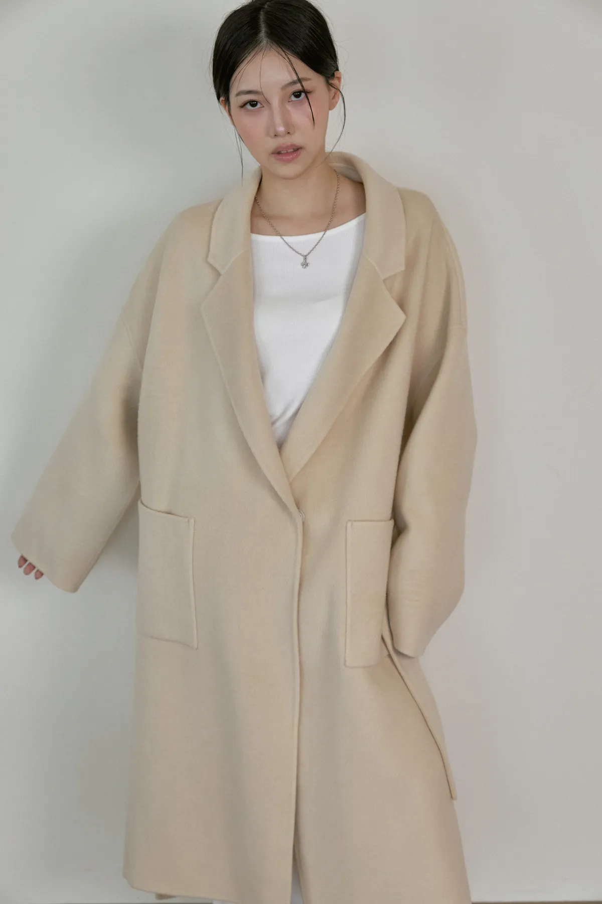 羊毛本身帶著自然挺度,穿起來不澎、不壓身,是那種一穿上就覺得「原來長版大衣也可以這麼俐落」的版型。