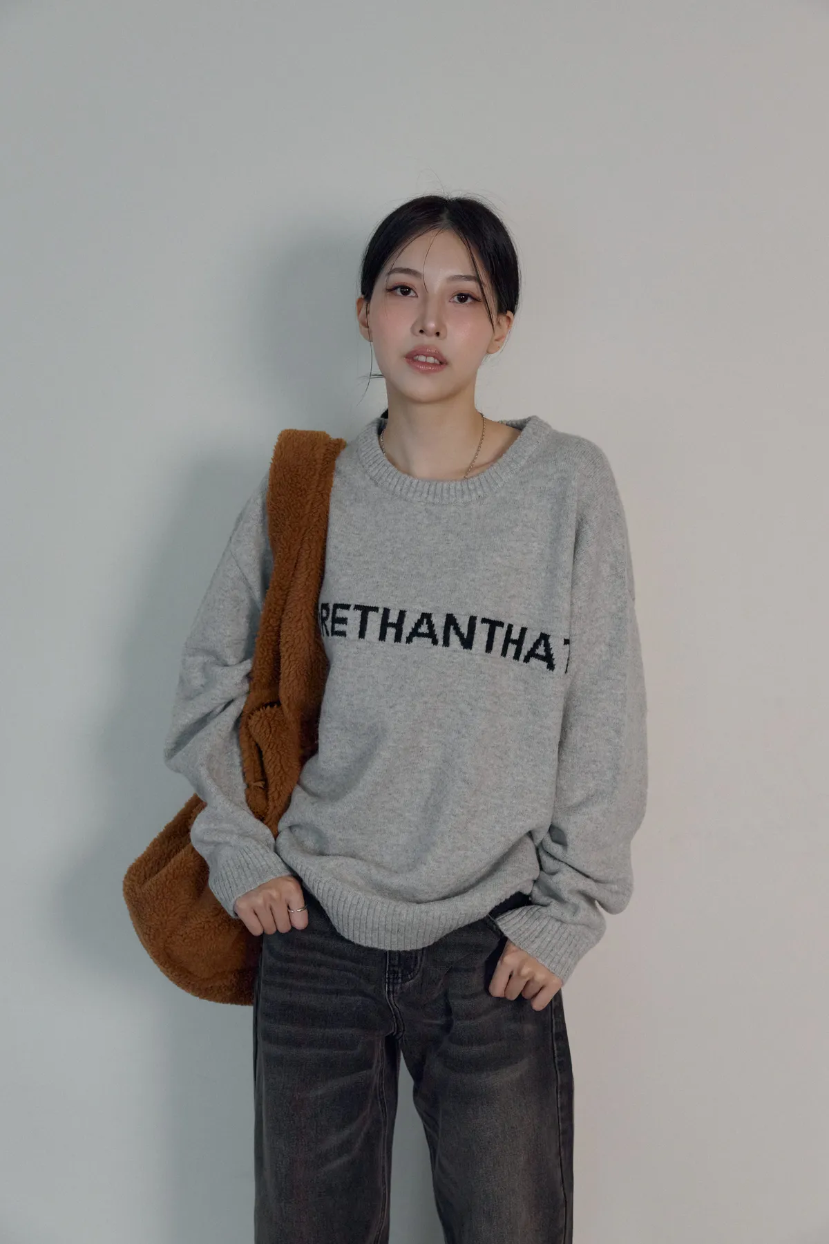 *窄肩女孩(寬鬆毛衣穿起來容易有像穿大人衣服的感覺),但意外的是明明oversize,穿起來卻一點寬大感都沒有。