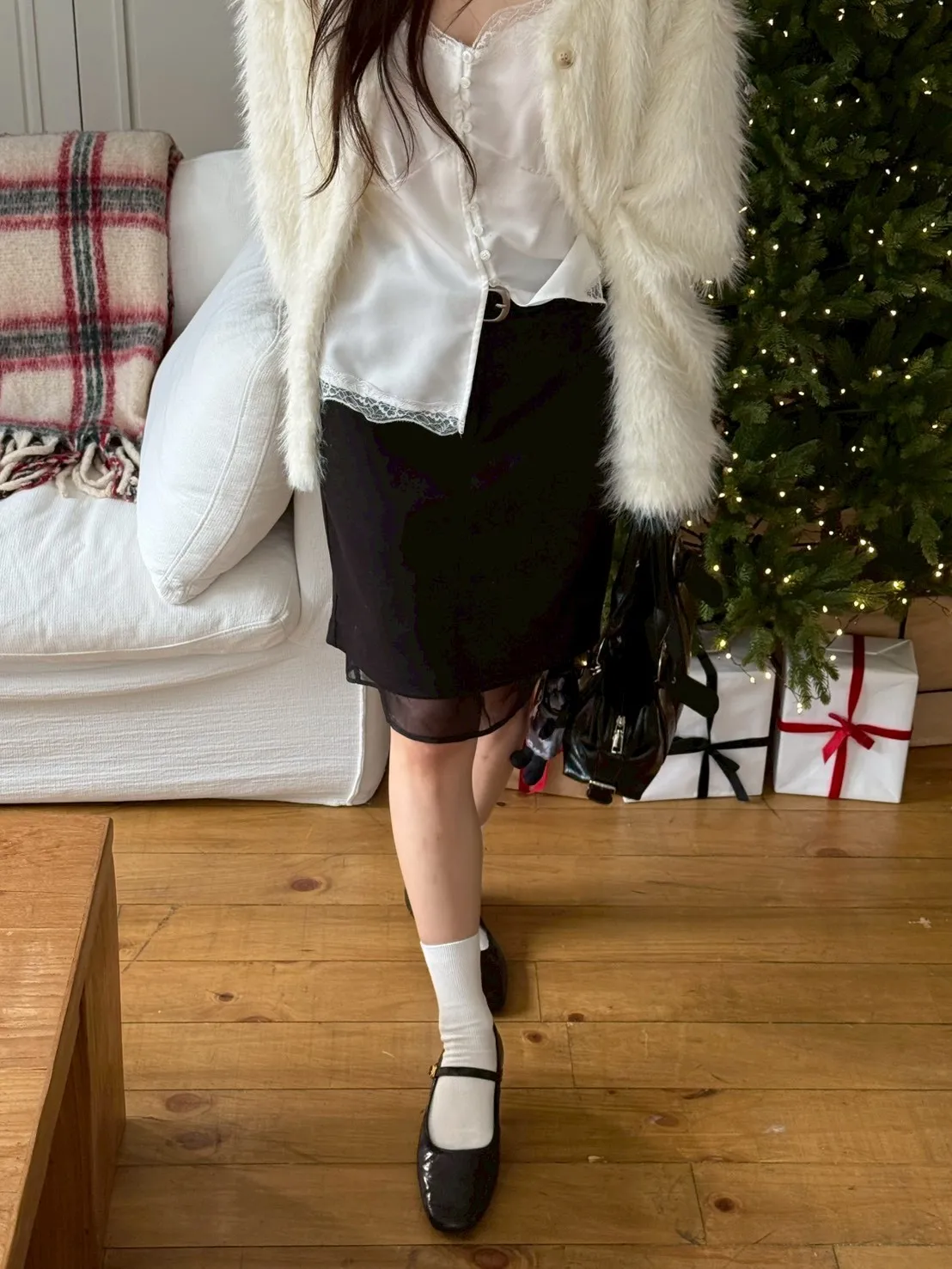 [韓國]成為韓女第一步!拼接西裝半身裙.黑