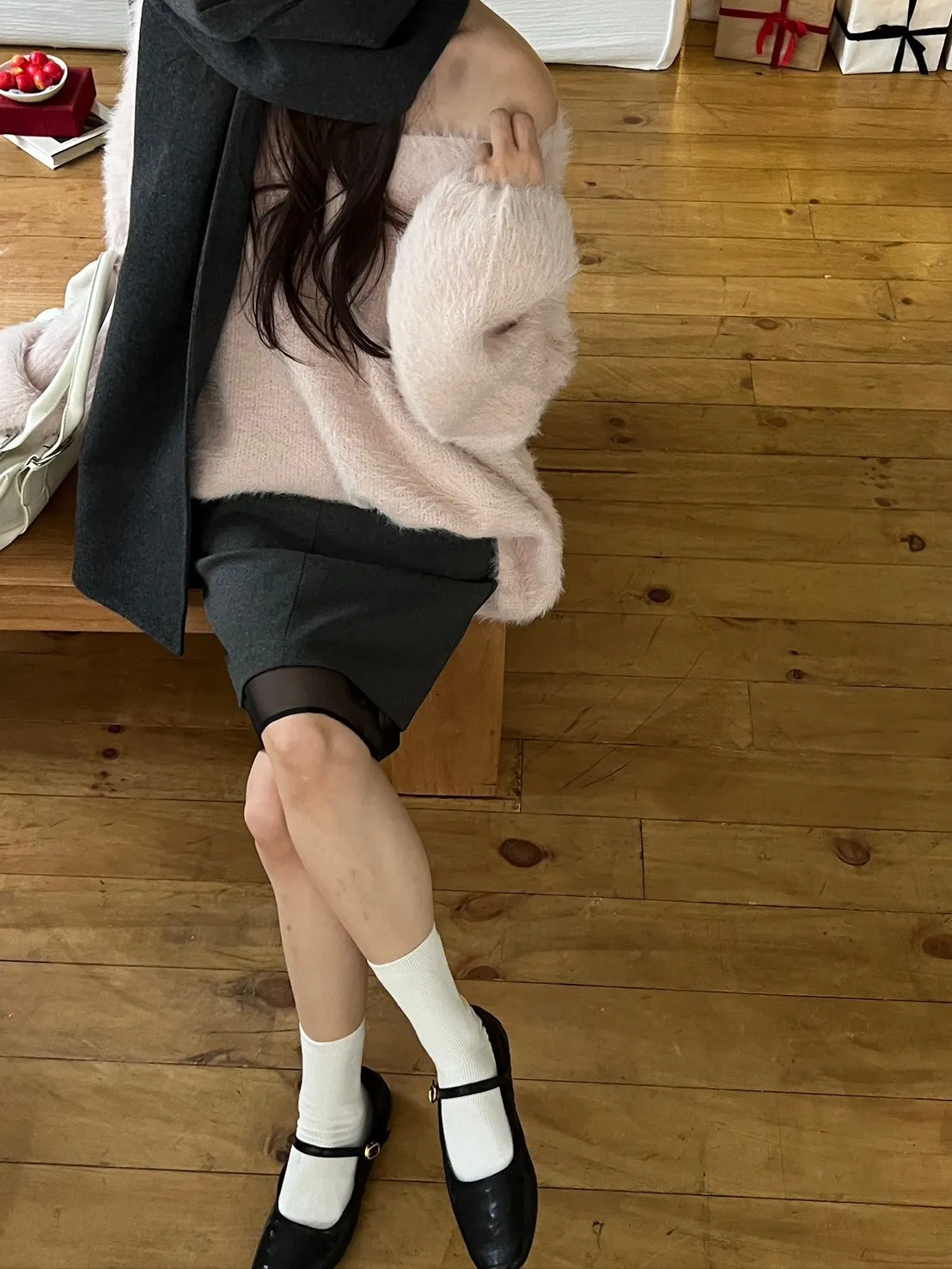 [韓國]成為韓女第一步!拼接西裝半身裙.灰