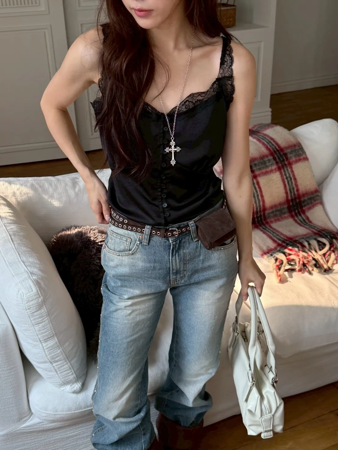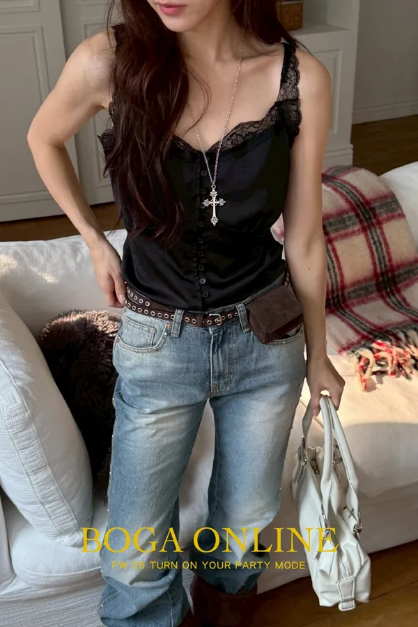 [韓國]不被定義的浪漫蕾絲背心.黑