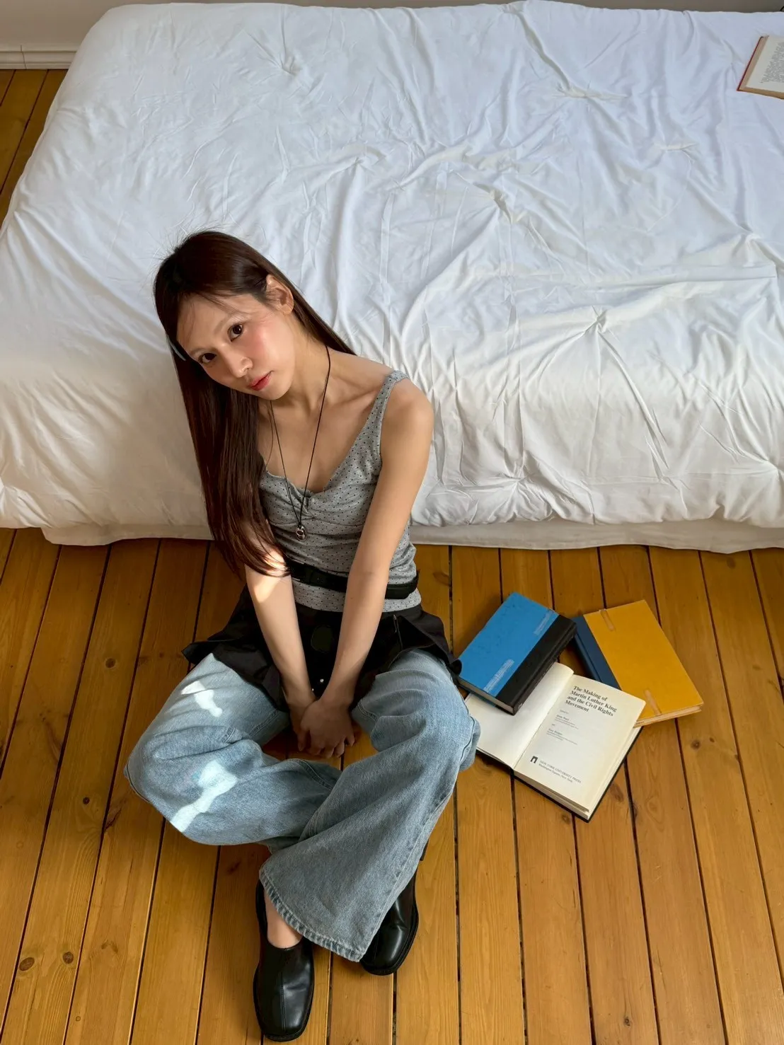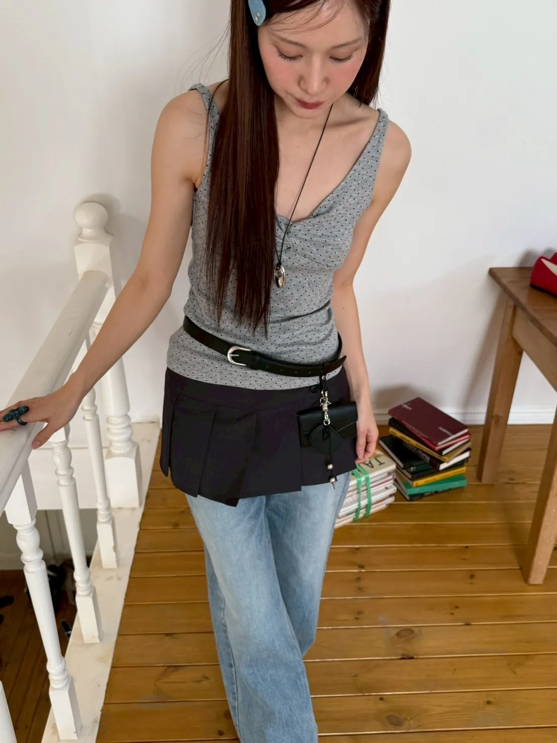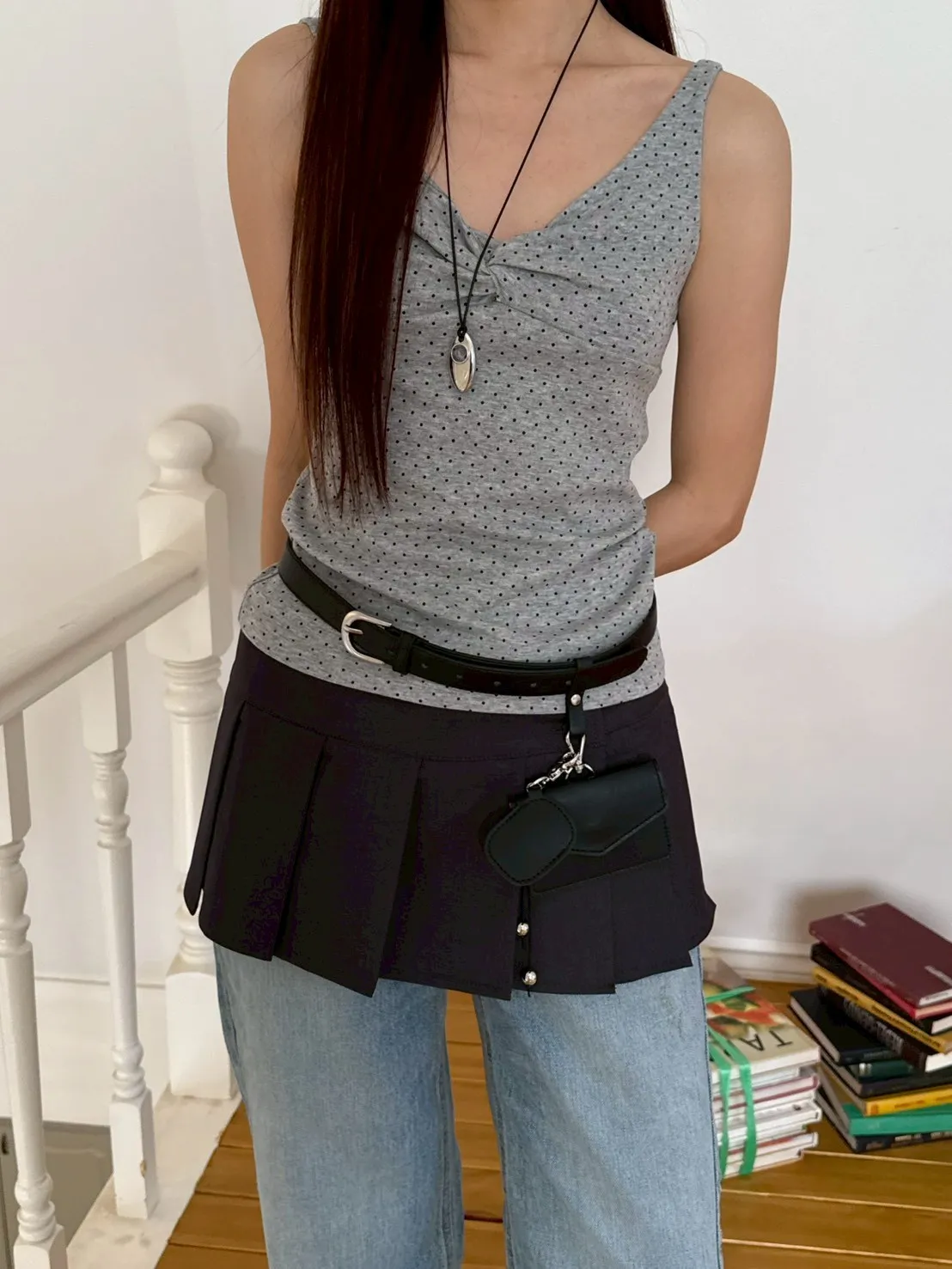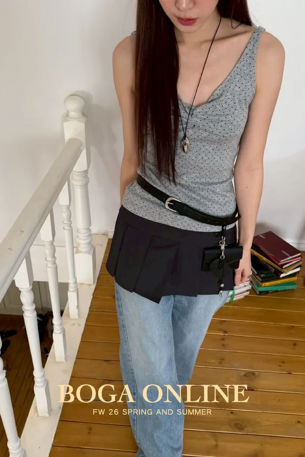 「韓國」春季大勢款!胸抓皺點點背心.灰
